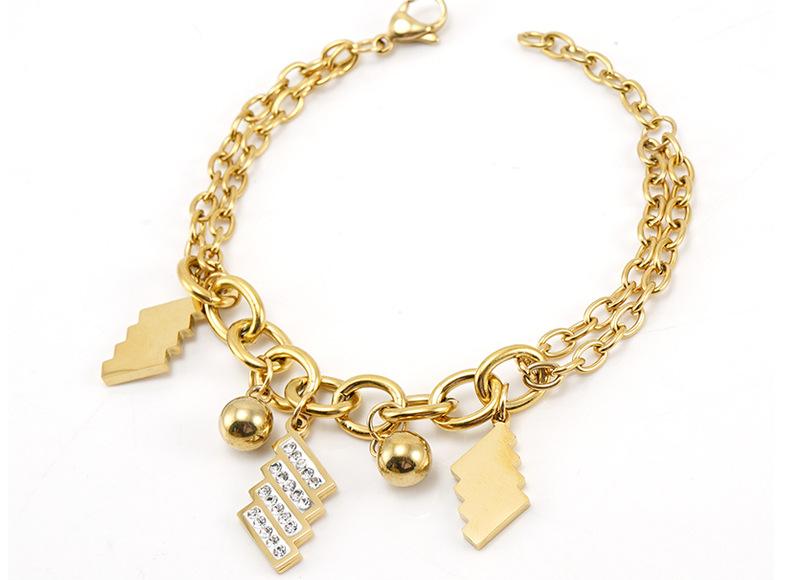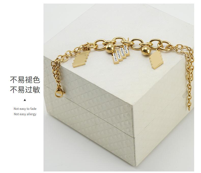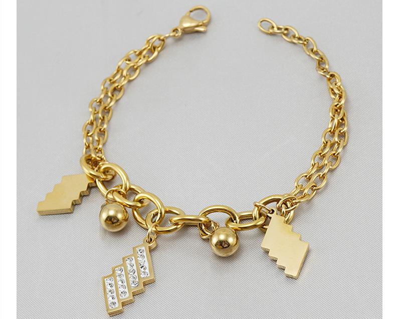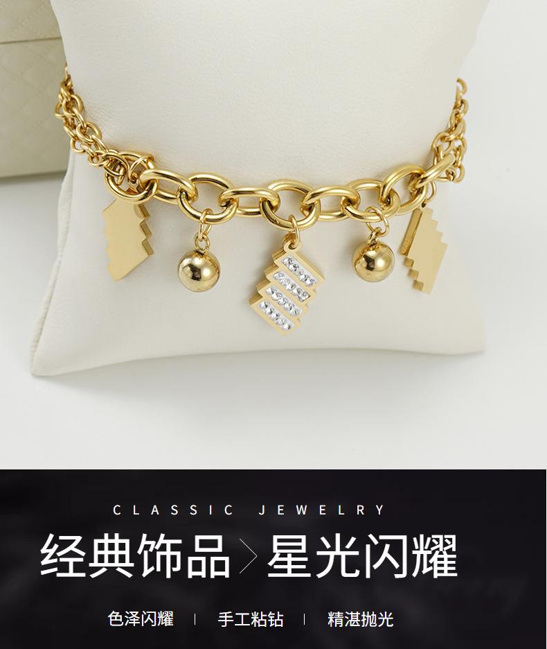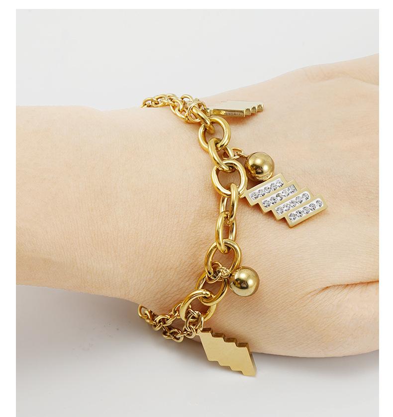 Pulsera de Moda para Mujer de Acero Inoxidable Geométrico Diamante Nuevo Pulsera de Acero al Titanio Dorado Europeo y Americano para Mujer Joyería Venta al por Mayor Cuentas