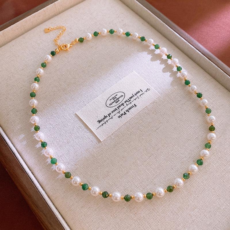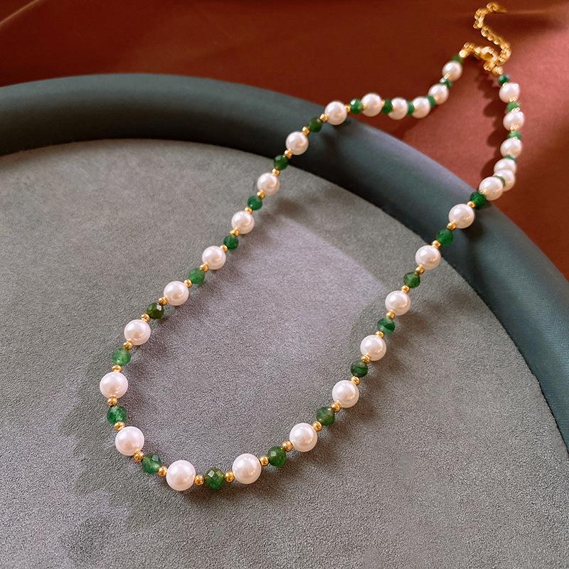 Collar de perlas con cuentas de piedra natural, estilo vintage, ligero, de lujo, de alta gama, con cadena de clavícula, joyería de temperamento combinable, venta al por mayor para mujer