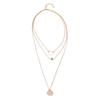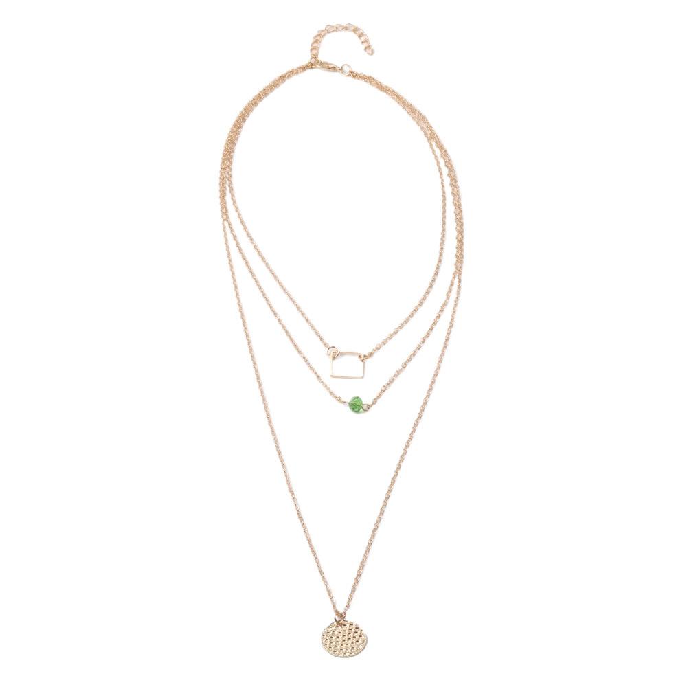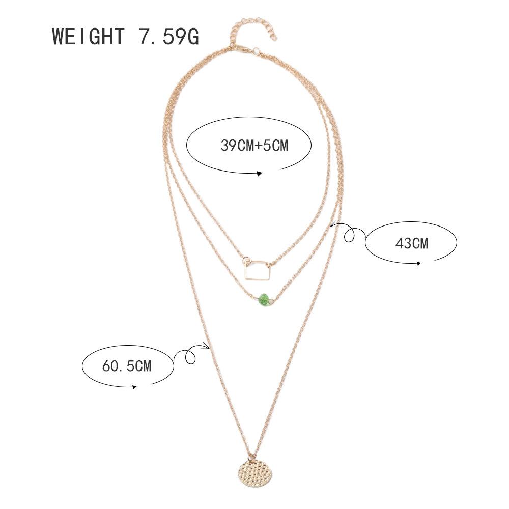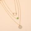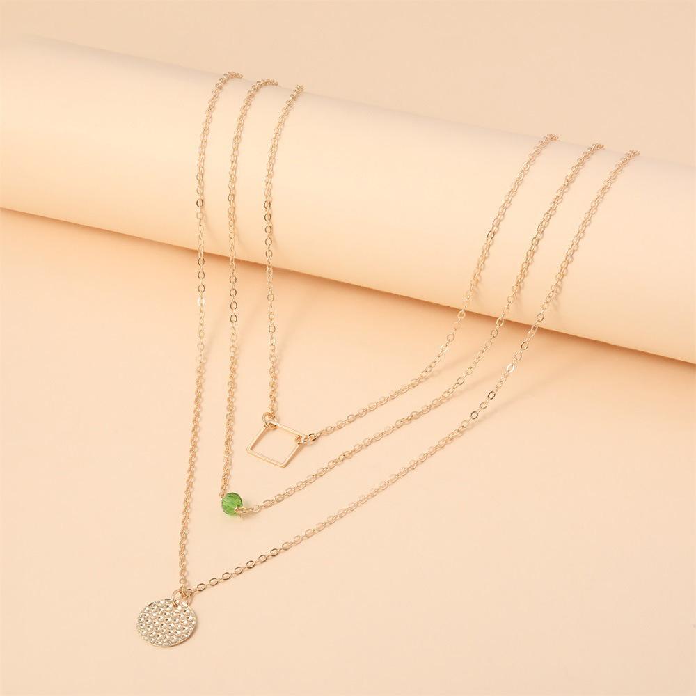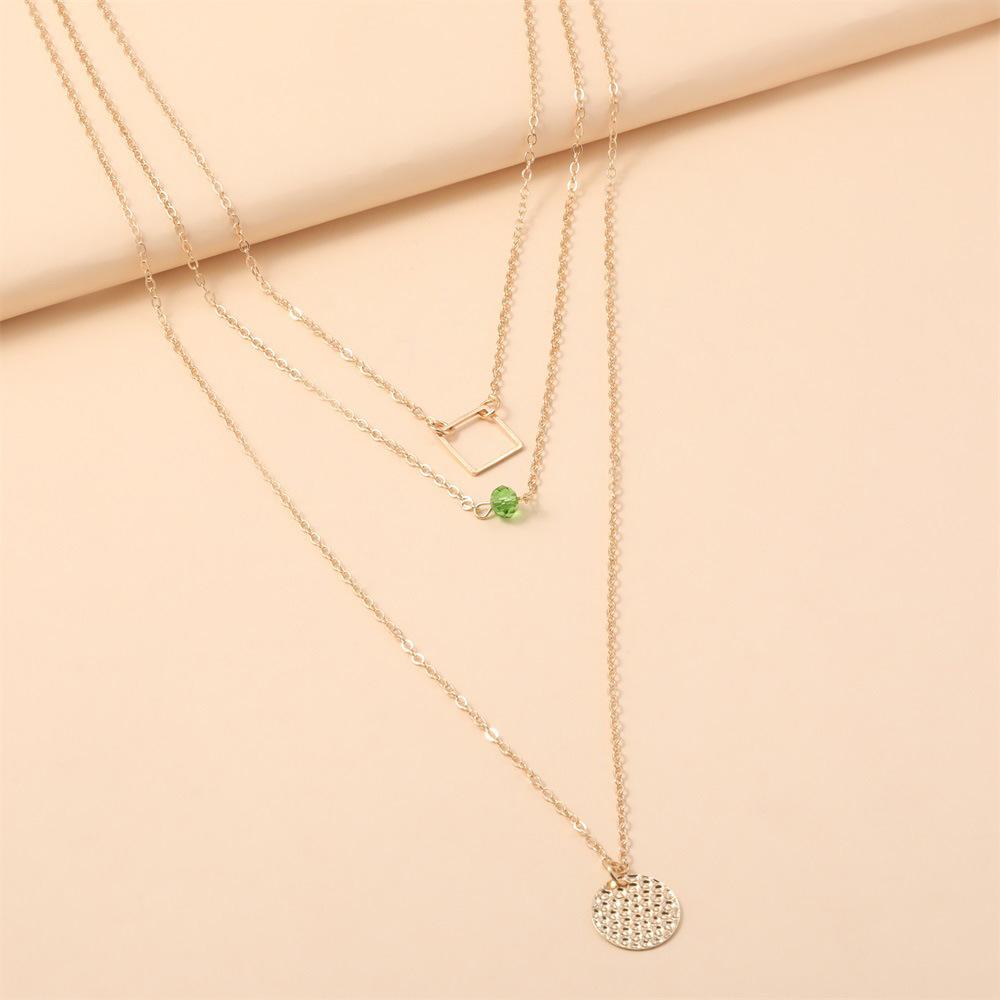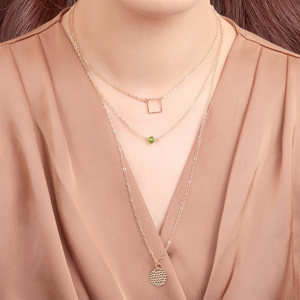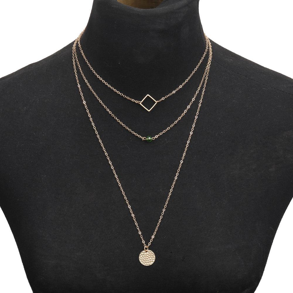 Collar con personalidad más vendida de Europa y Estados Unidos, collar de aleación de tres capas redondo y cuadrado con diamantes verdes a la moda, venta directa de fábrica