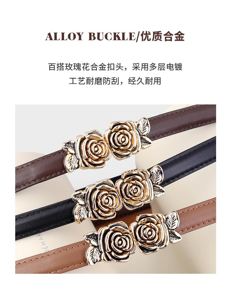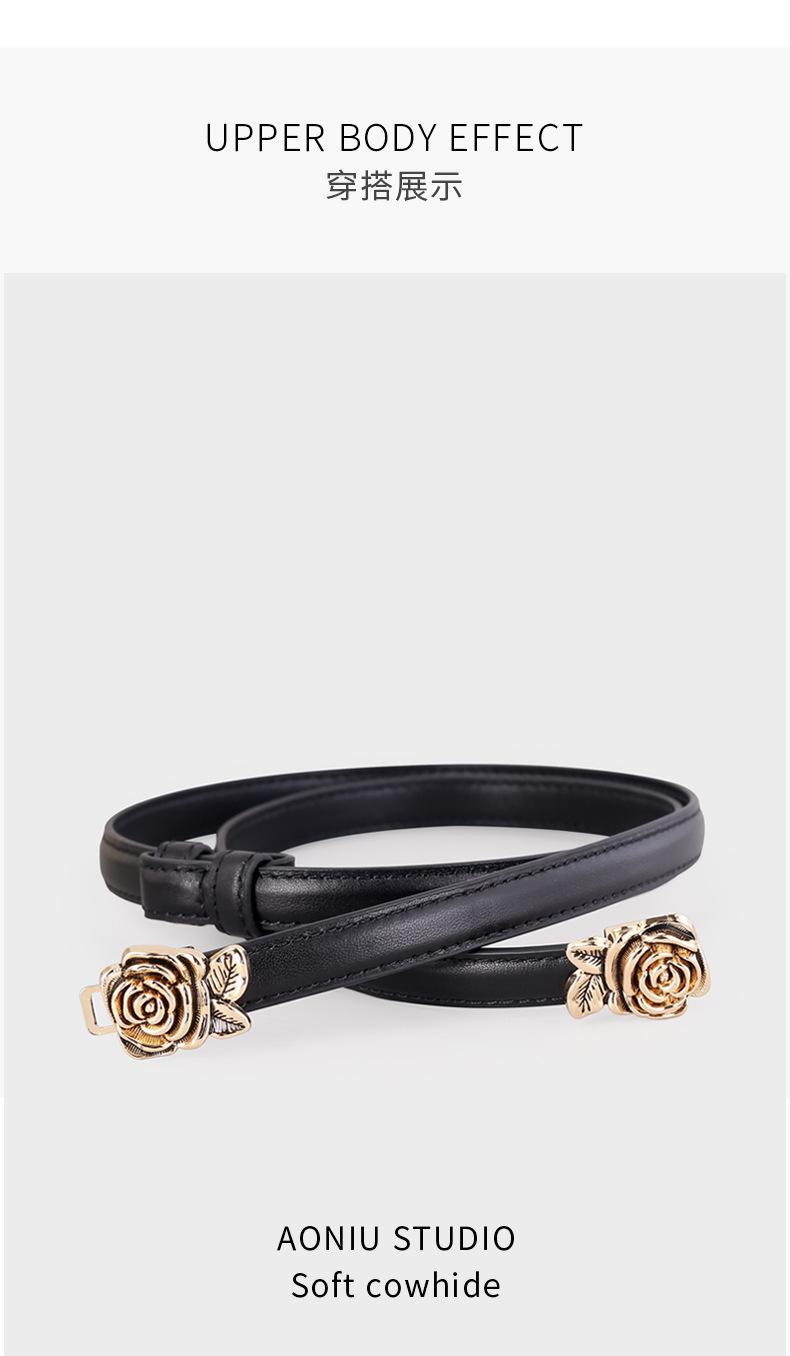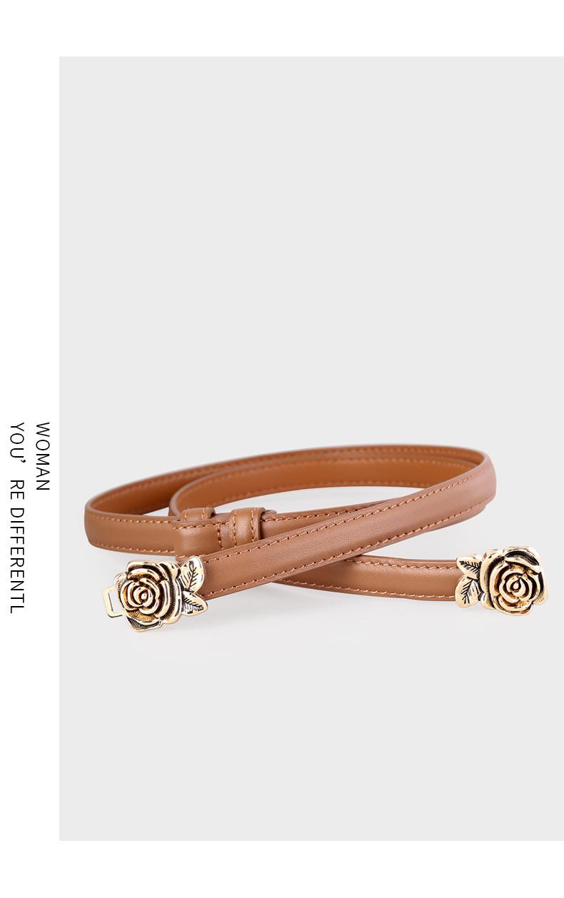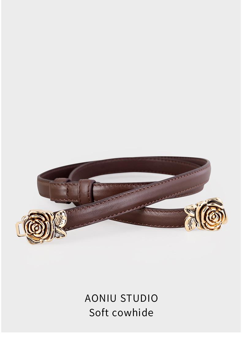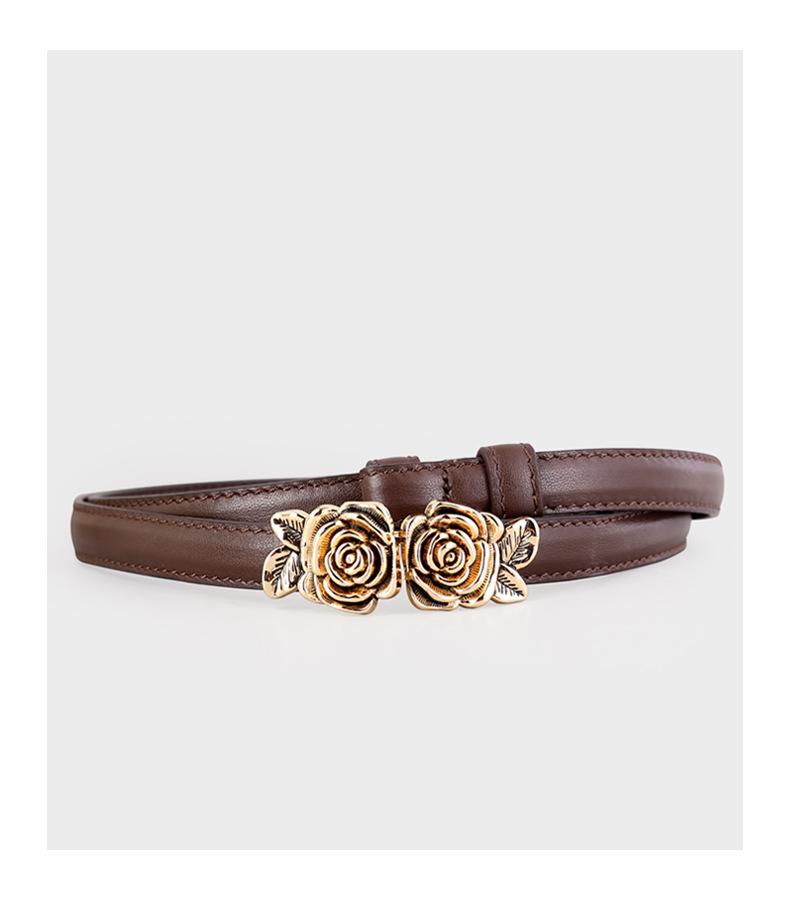 Cinturón de cuero de alta calidad para mujer, estilo retro francés, ajustable con hebilla de rosa, para cintura de vestido, en stock