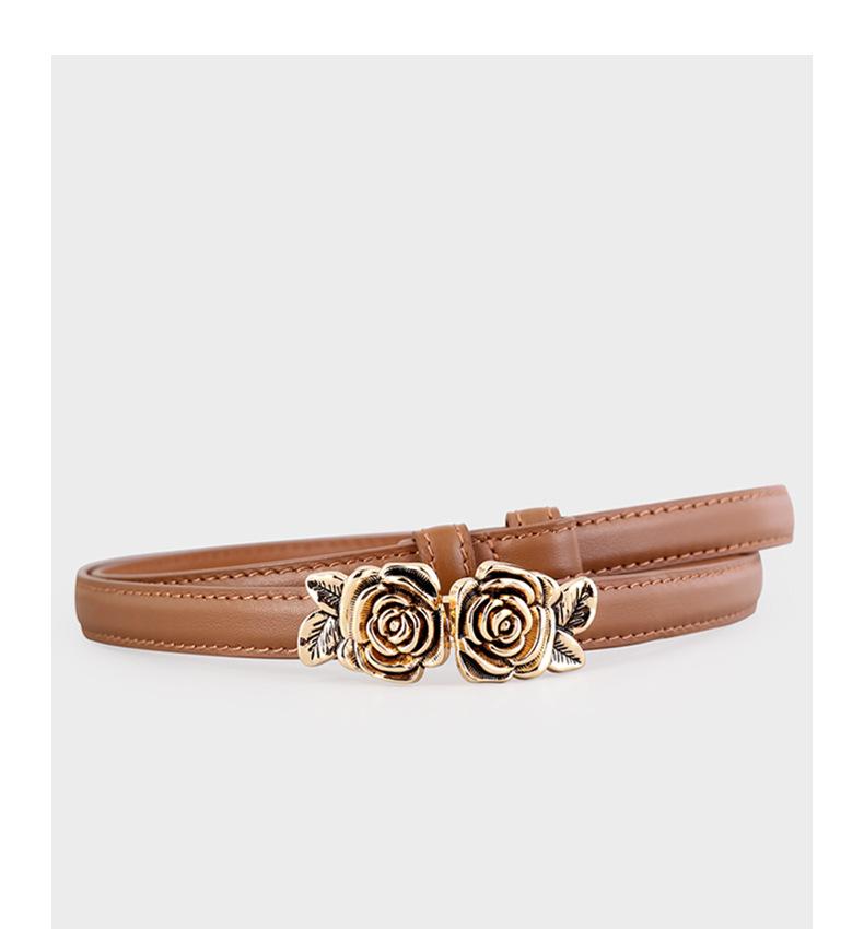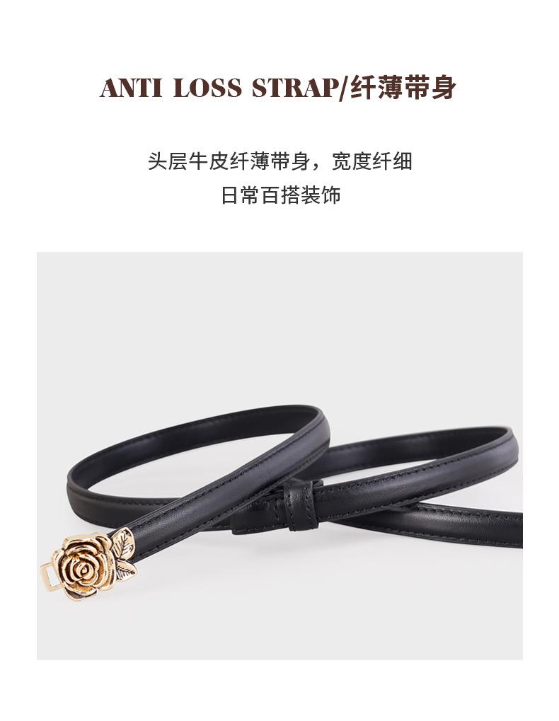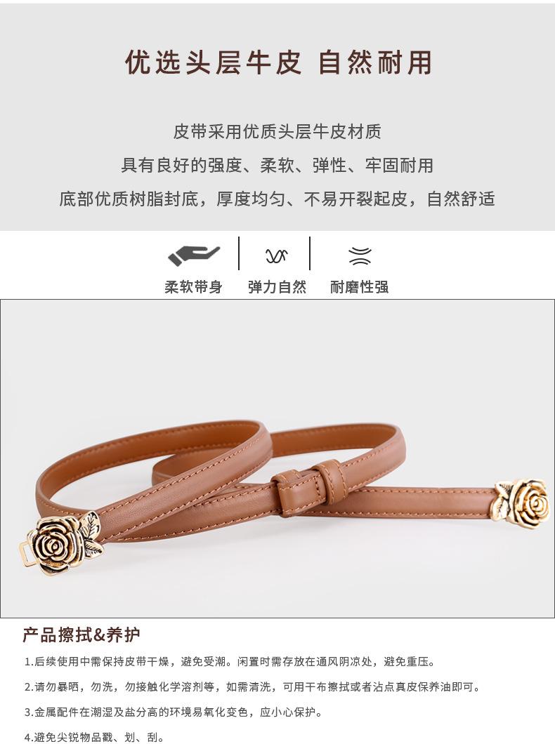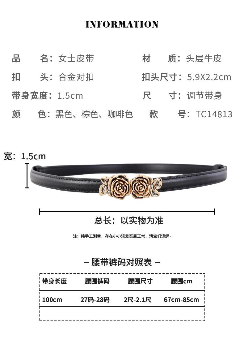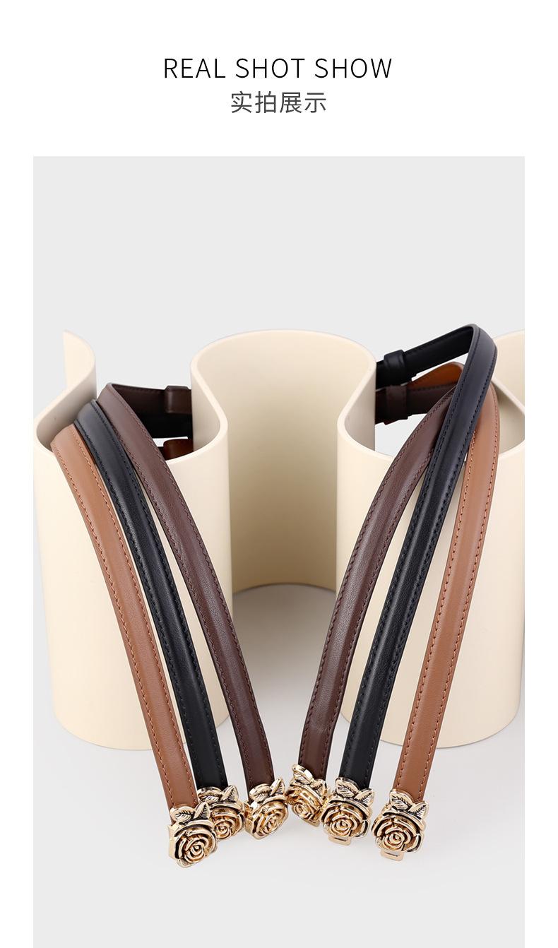 Cinturón de cuero de alta calidad para mujer, estilo retro francés, ajustable con hebilla de rosa, para cintura de vestido, en stock