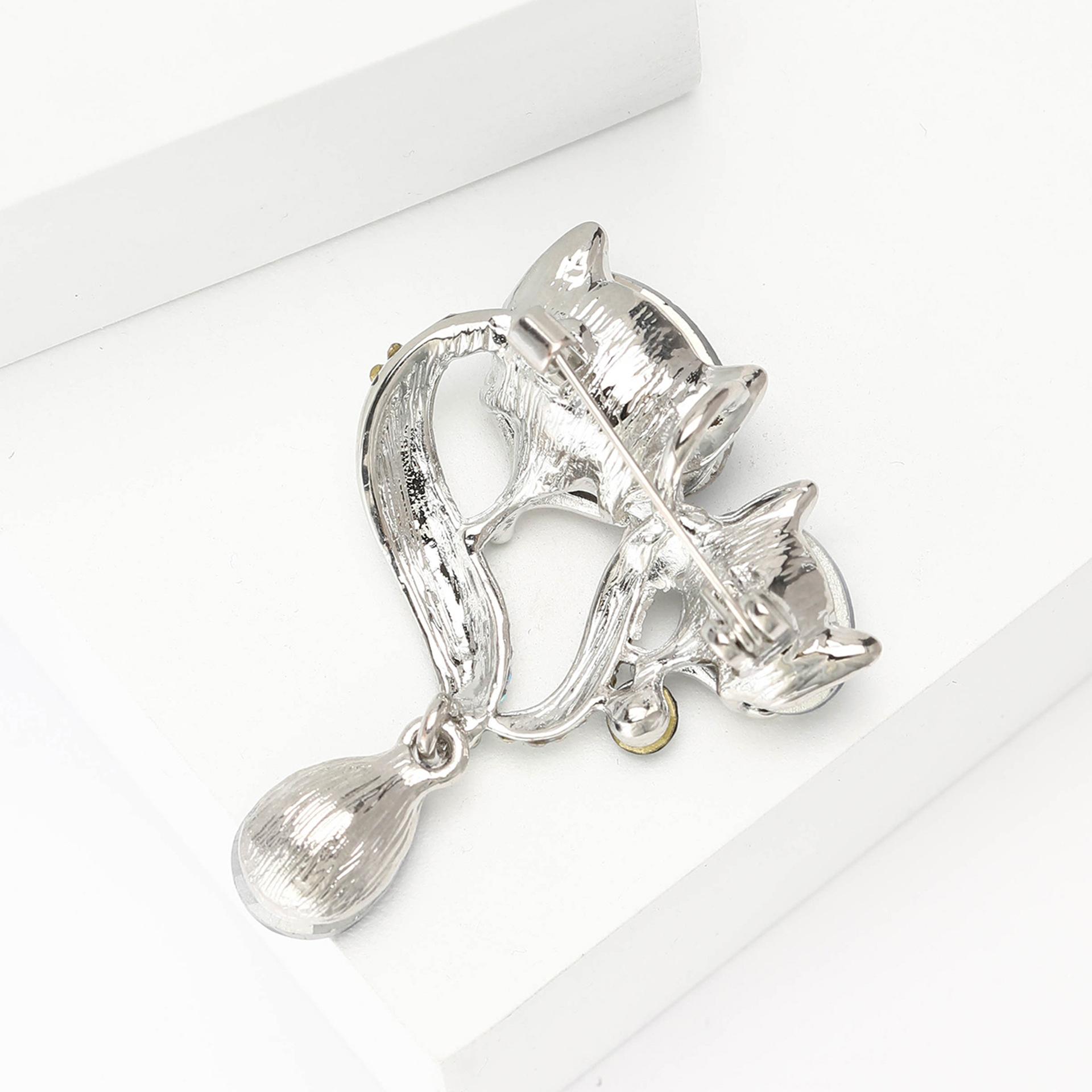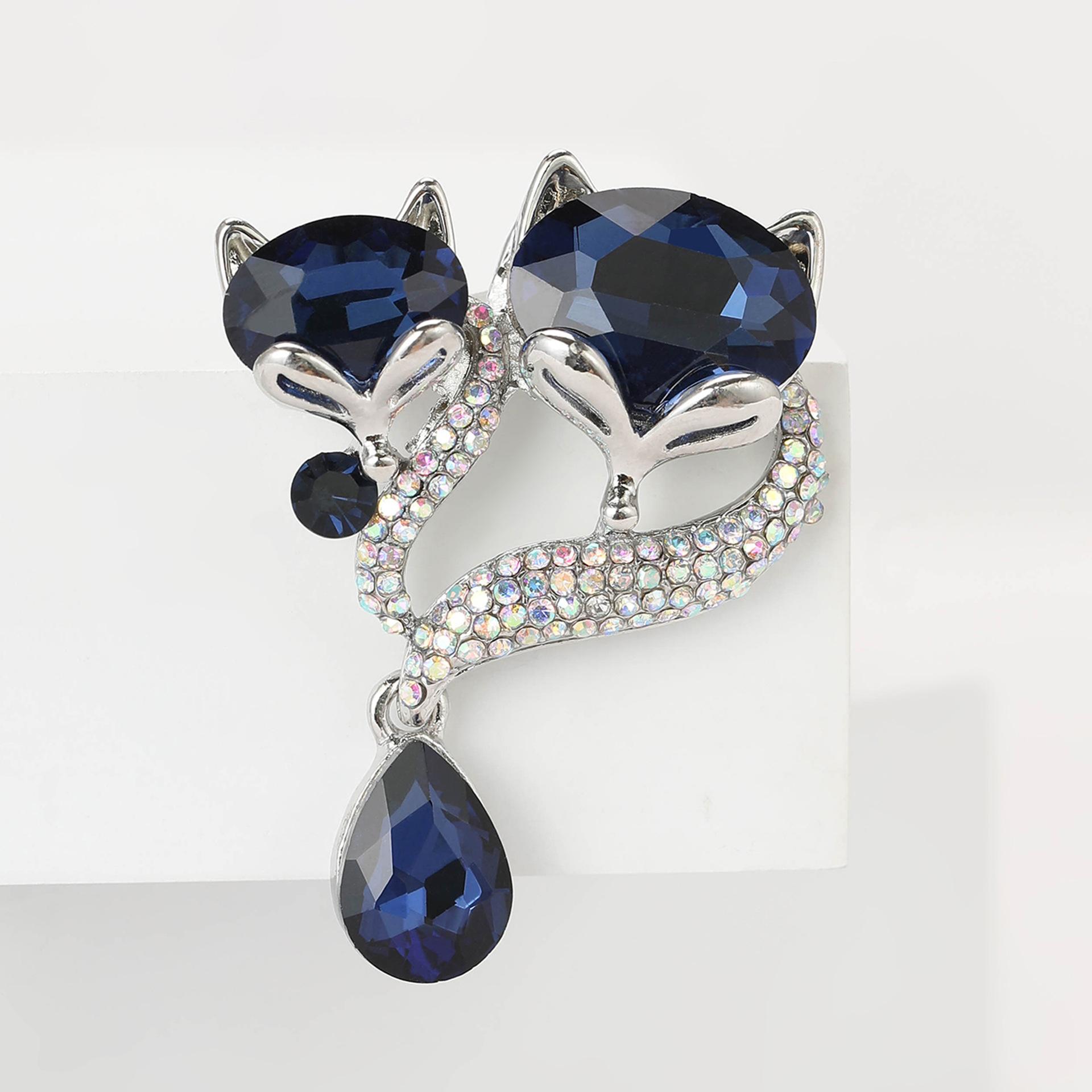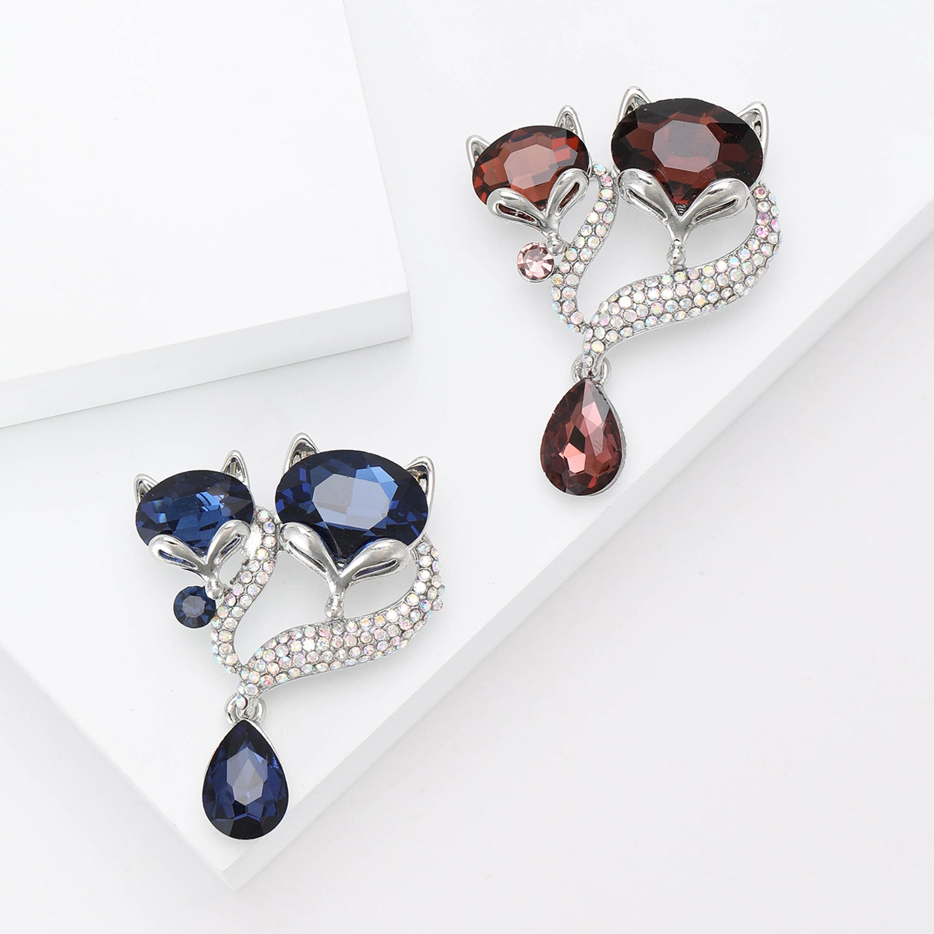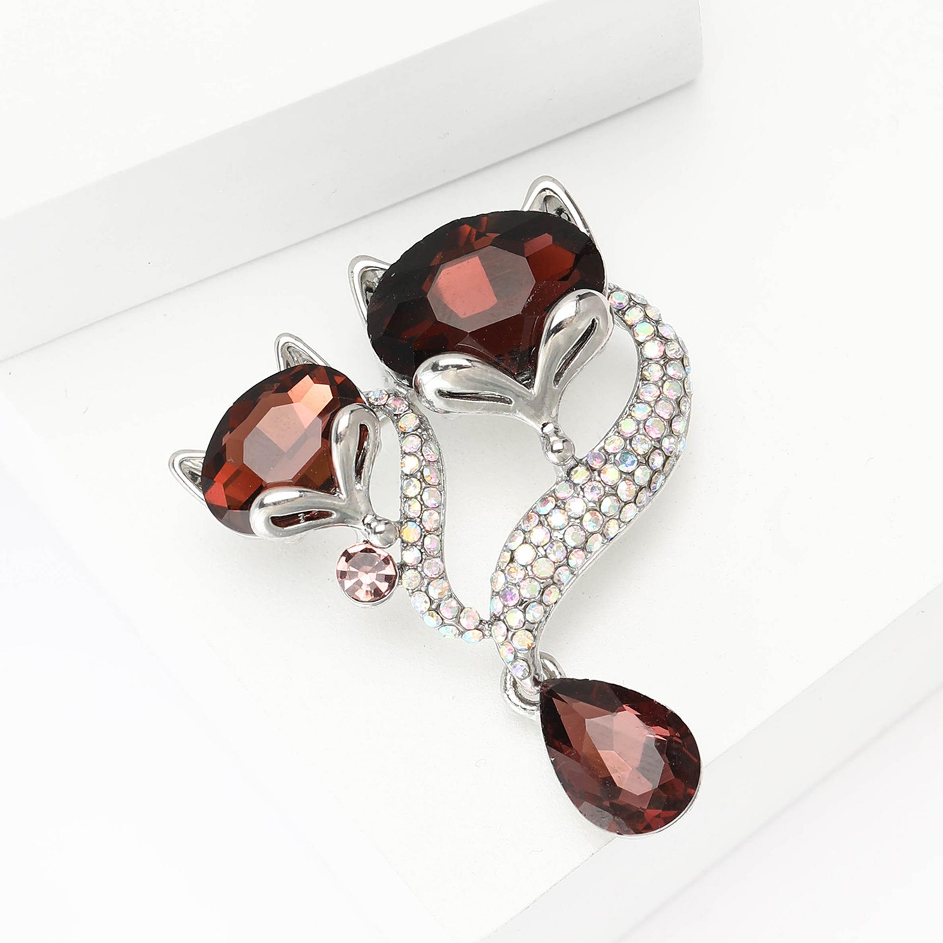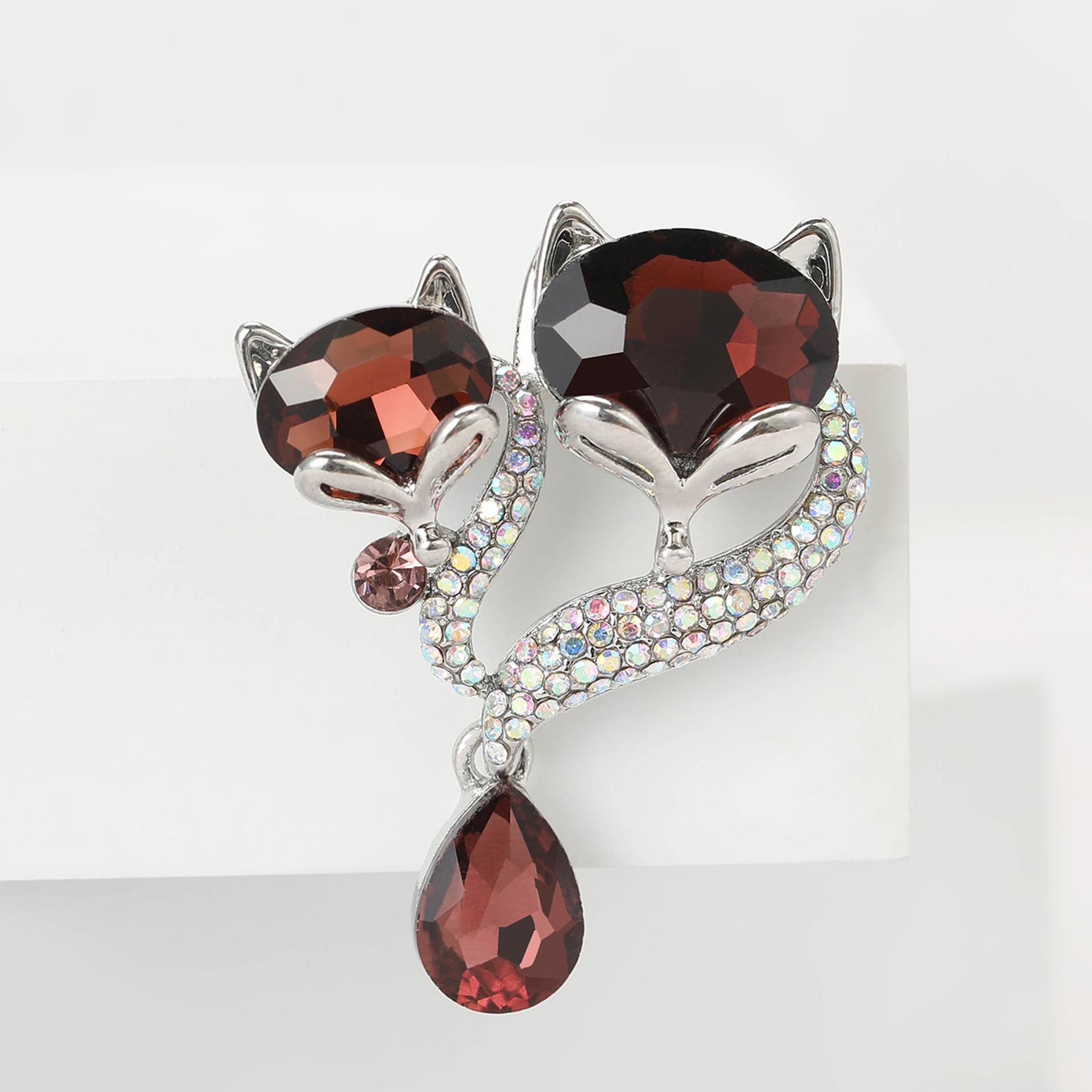 Broche de zorro con colgante de diamantes de imitación de aleación que combina con todo, estilo coreano, bonito temperamento, para mujer, ramillete, joyería