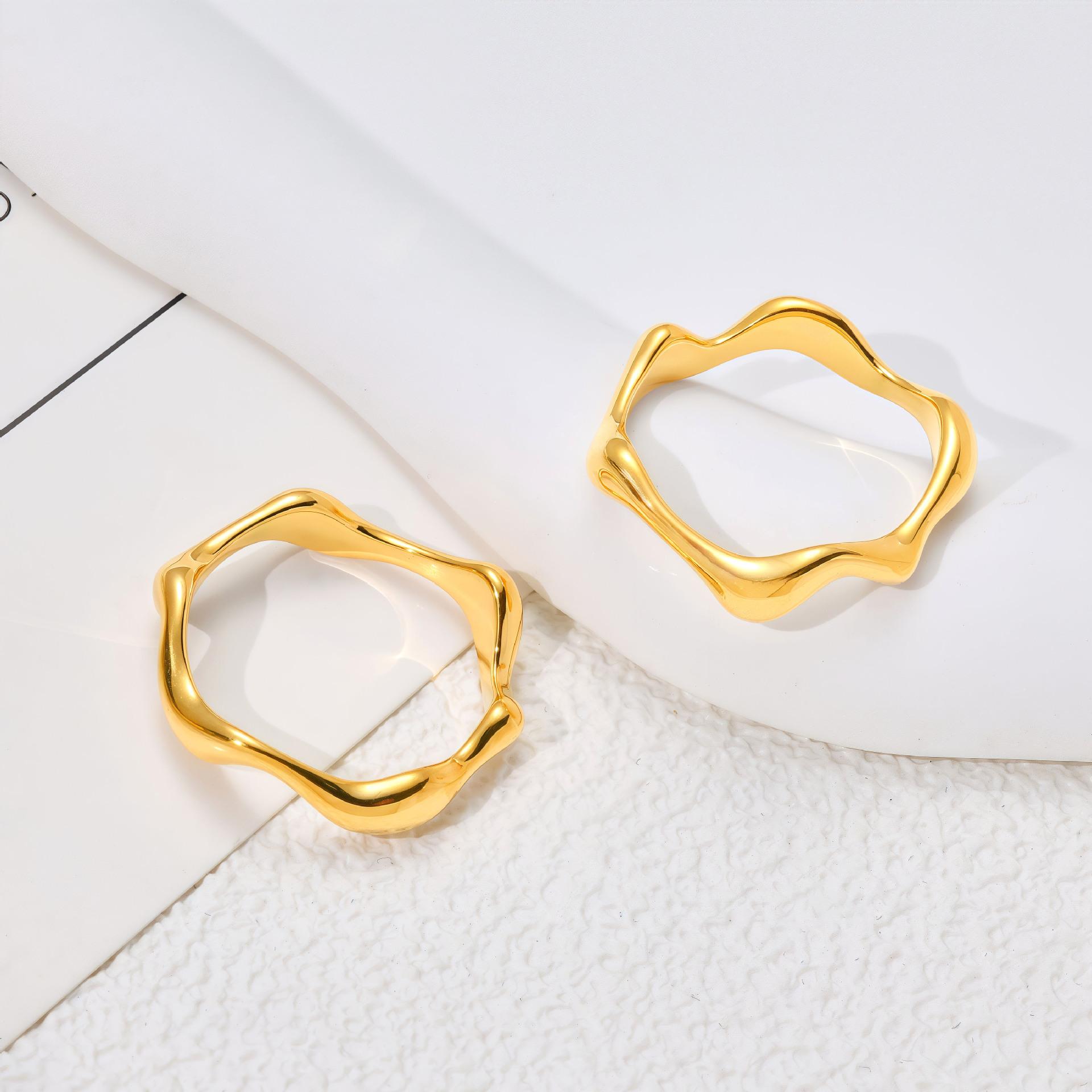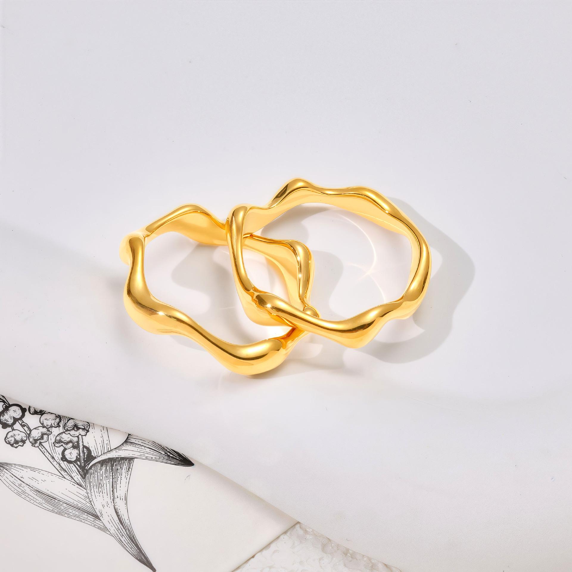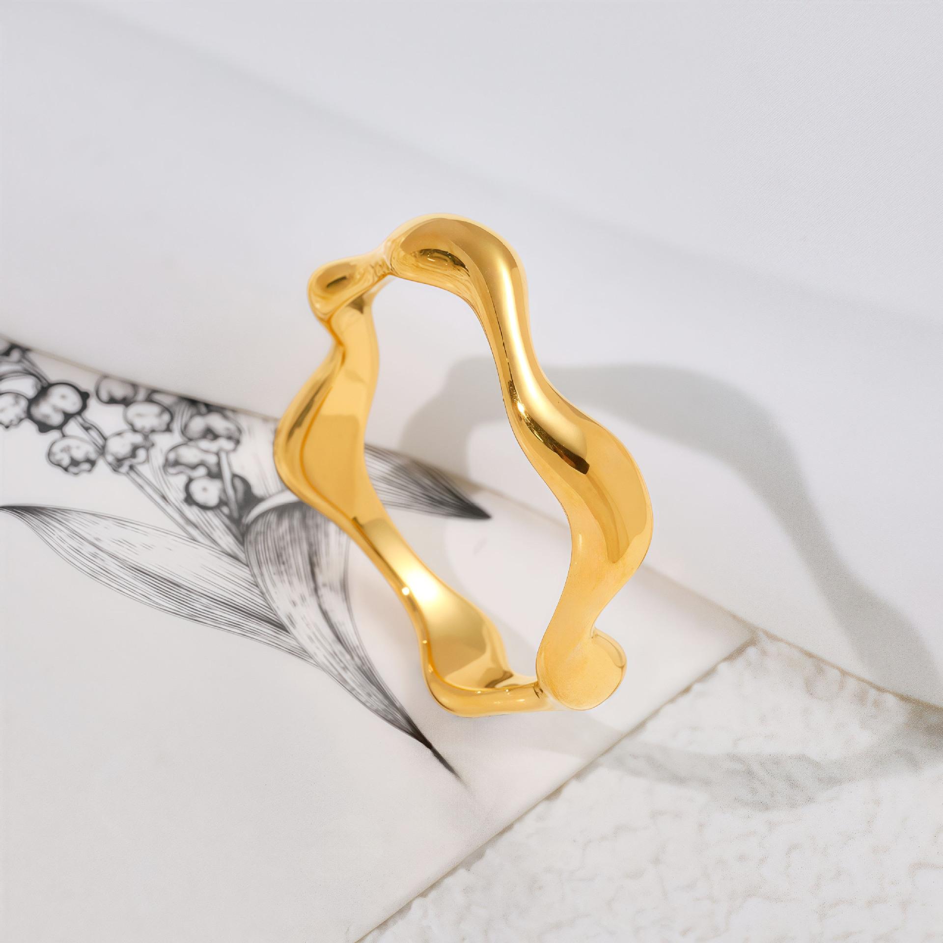 Anillo de Onda de Diseño Vintage Japonés y Coreano Ins Anillo de Acero de Titanio Simple Personalizado de Moda para Mujer Sin Caer Venta al por Mayor Combinación con Todo