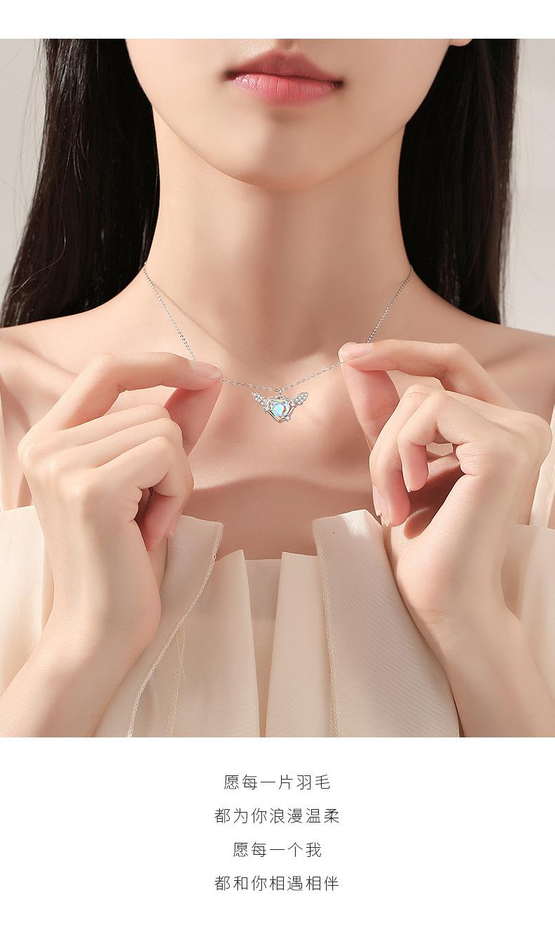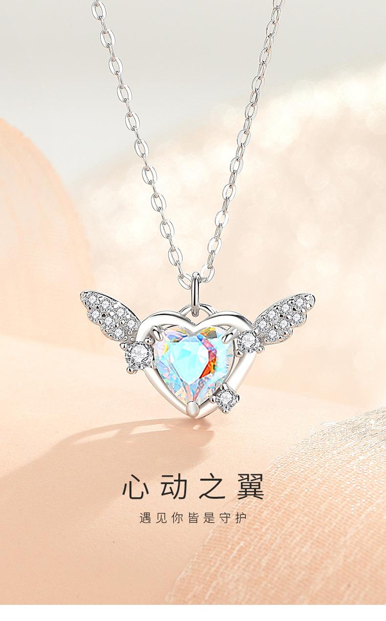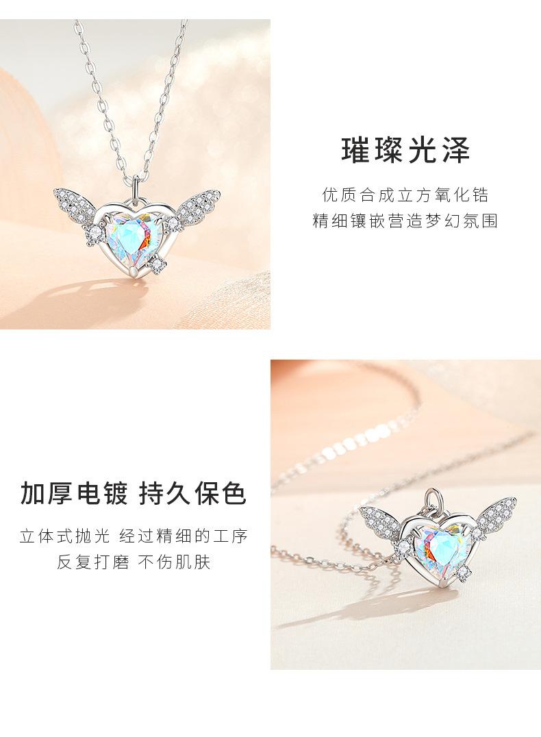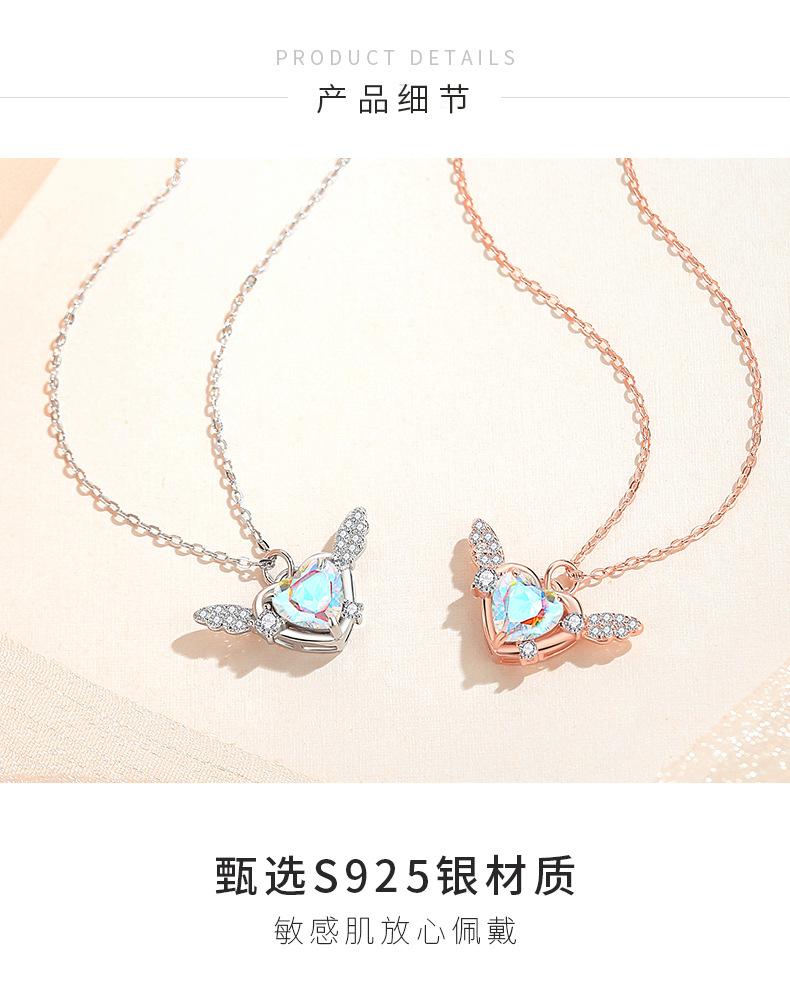 Collar original de plata de ley 925 con forma de corazón de Cupido, diseño de nicho para mujer, cadena de clavícula con colgante de alas de amor de circonita.