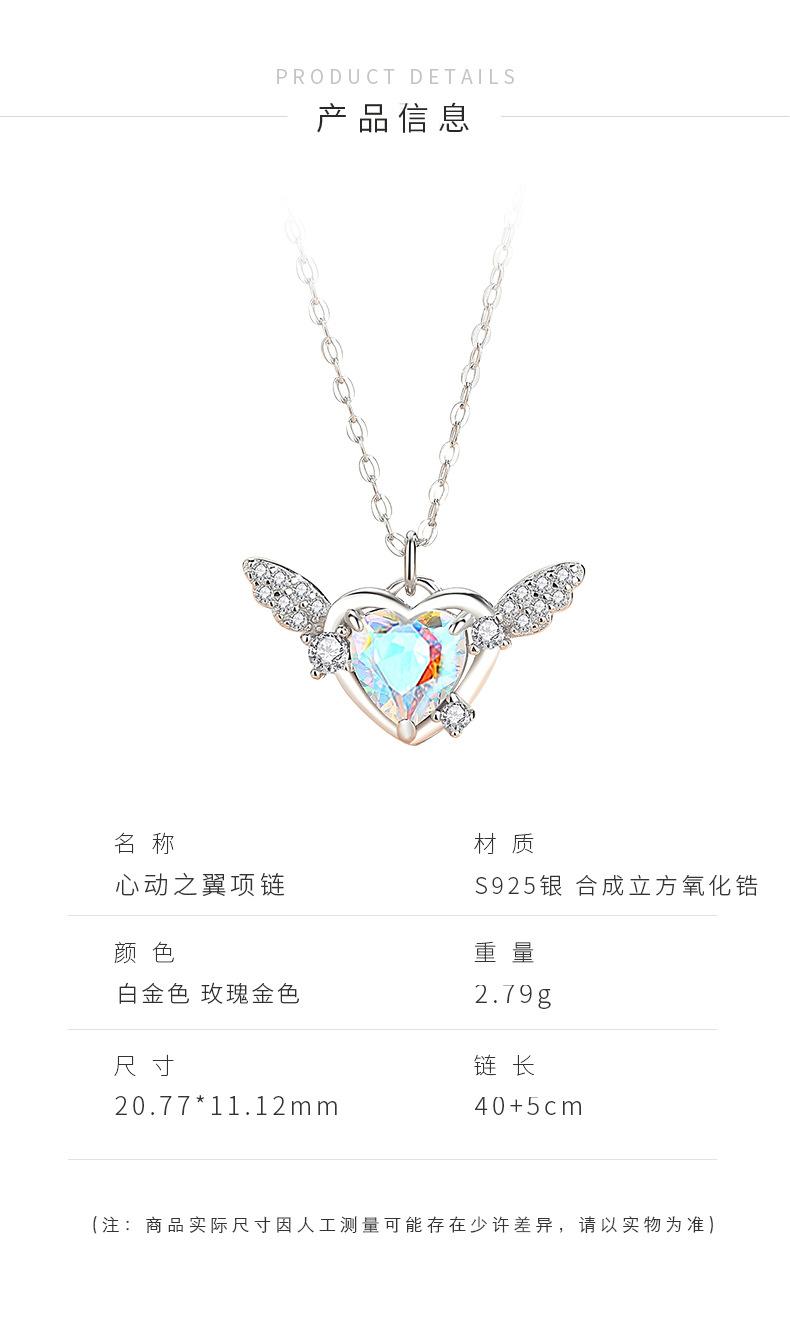 Heart wing necklace White Gold, Heart wing necklace rose gold