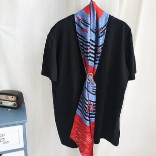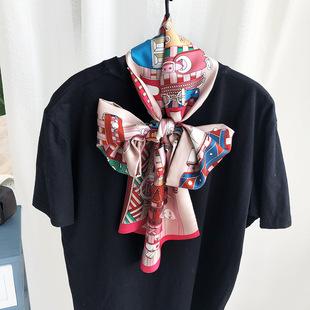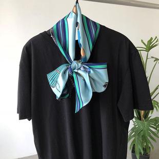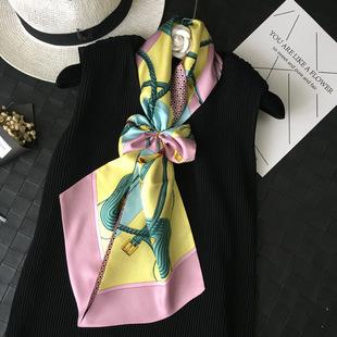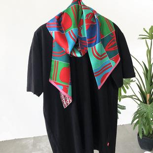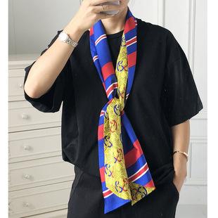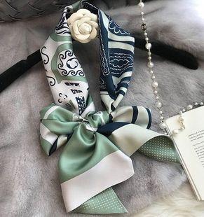 Bufanda de seda de primavera y verano versión ancha multifuncional de doble cara bufanda pequeña larga para mujer versátil moda bufanda pequeña bufanda de seda para mujer twilly
