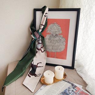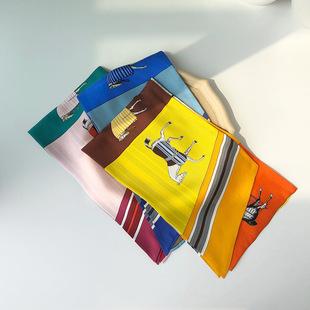 Bufanda de seda con estampado de caballos galopando, estilo nuevo de otoño e invierno de grandes marcas europeas y americanas, bufanda decorativa de doble cara con cinta grande