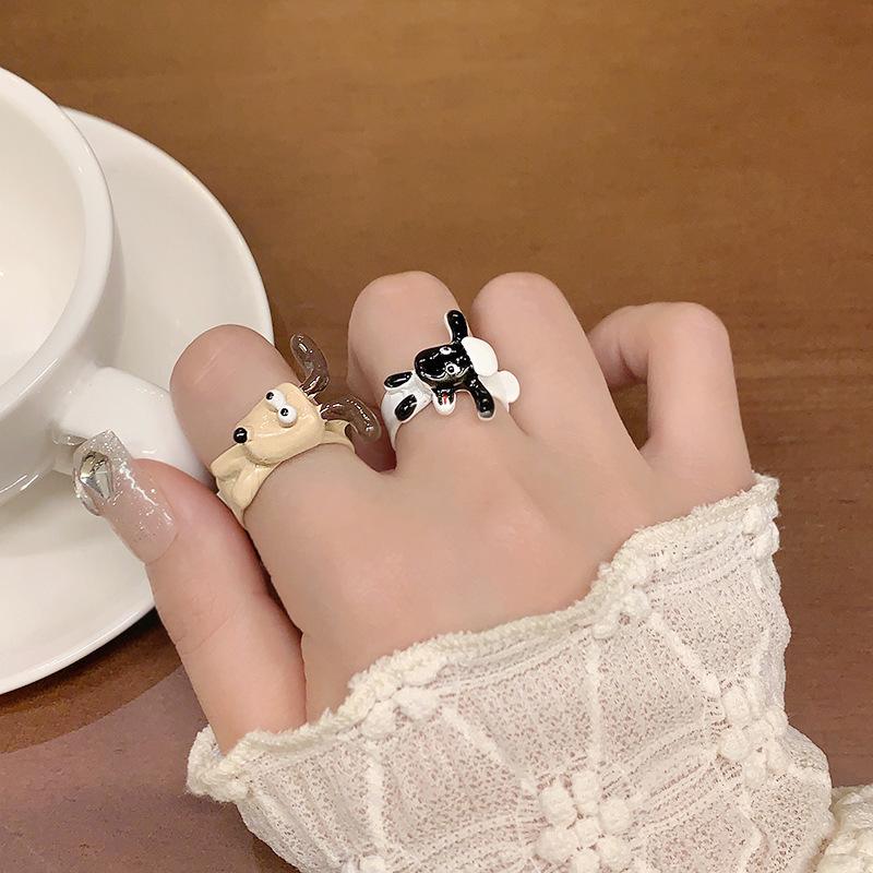 ¡Hermosa explosión! Anillo abierto con diseño de oveja y cachorro, divertido y bonito, para mujer, con dibujos animados, para niños.