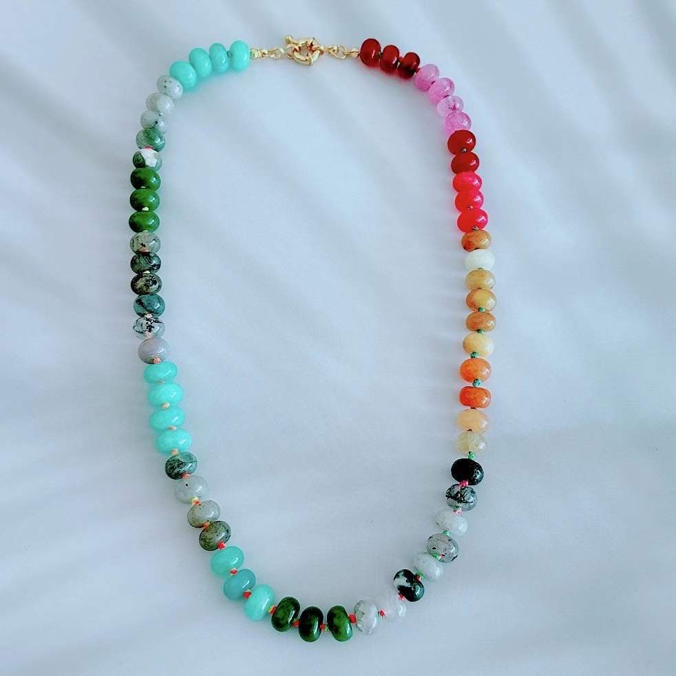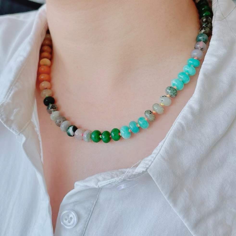 Collar Europeo y Americano Colorido de Piedra Natural Hecho a Mano con Cuentas Collar de Diseño Nicho de Lujo Ligero Elegante Cadena de Clavícula de Alta Gama para Mujeres
