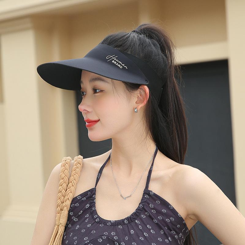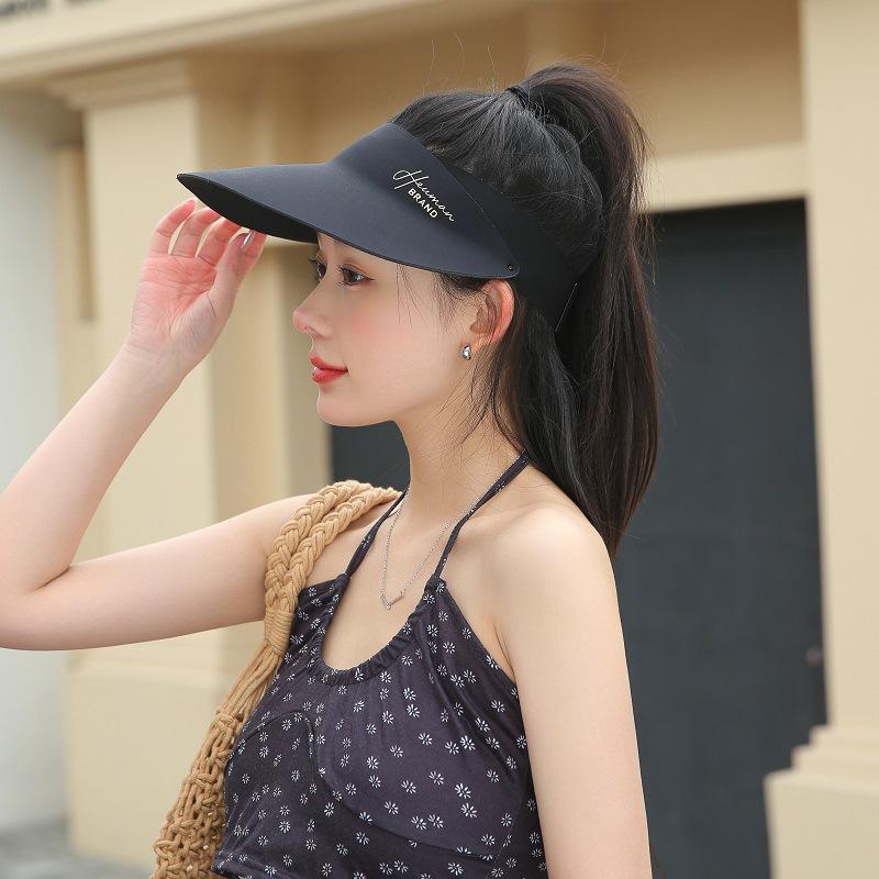 Sombrero de sol de verano para mujer, sombrero de copa vacío plegable de viaje, sombrero de sol de estilo coreano, sombrero de sol integrado de moda