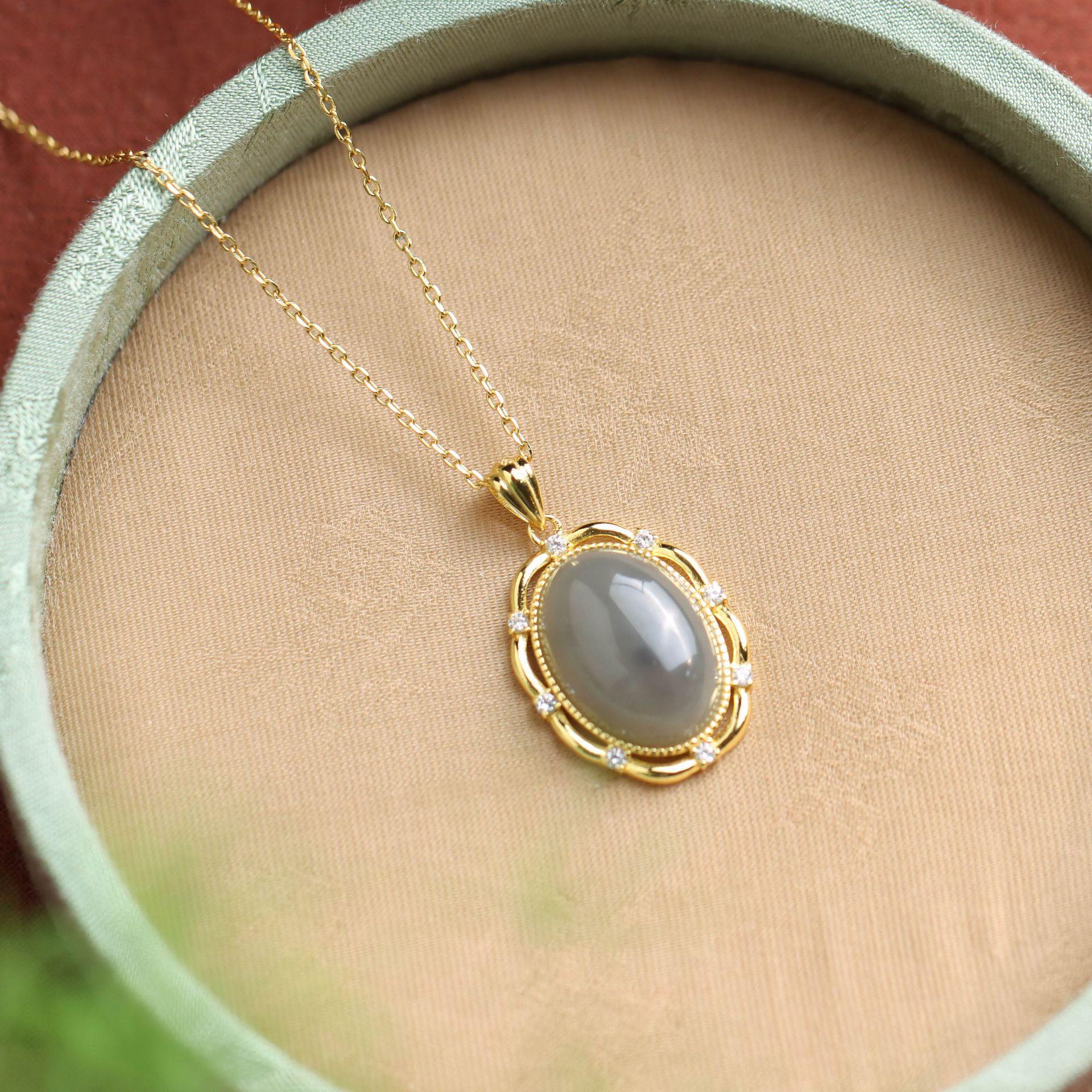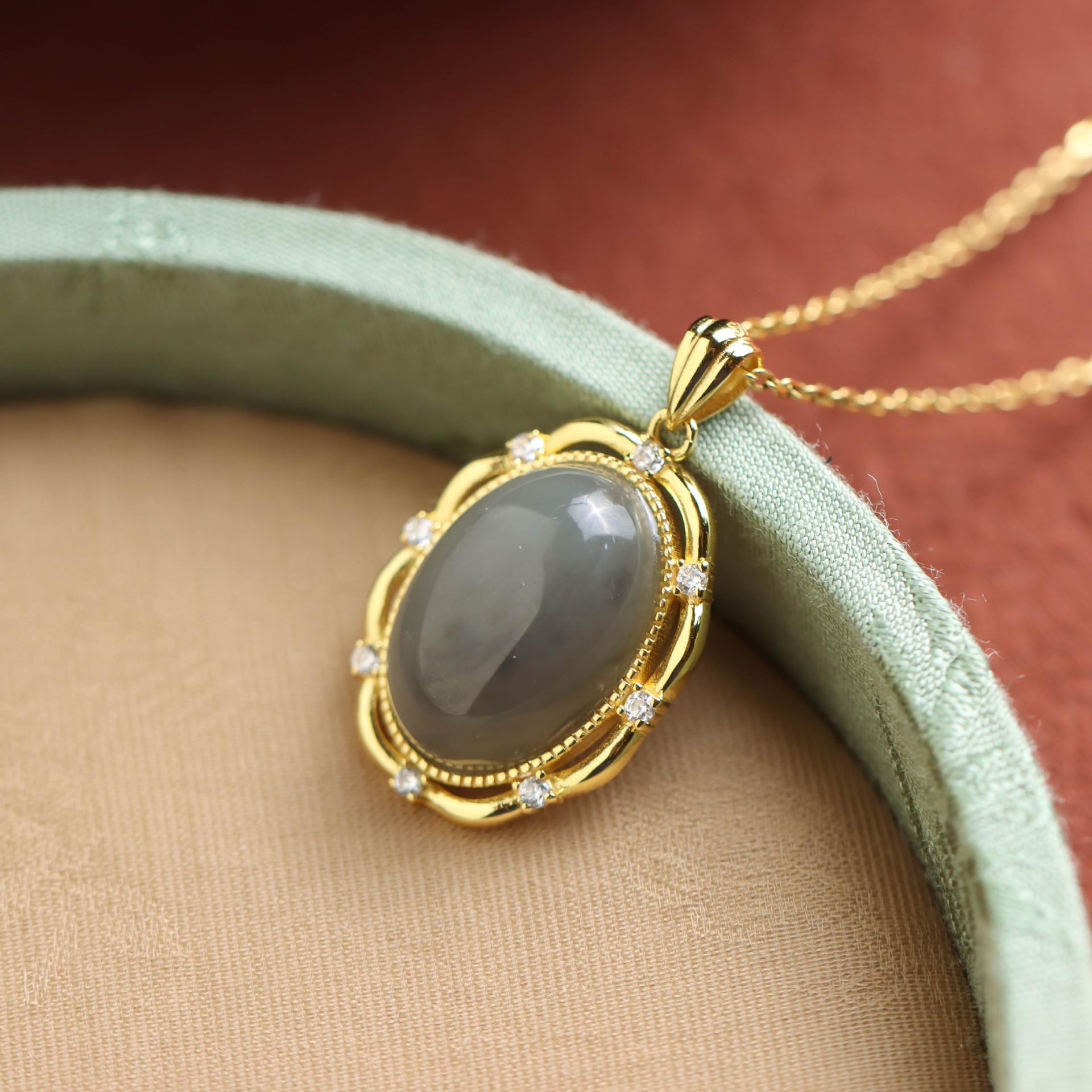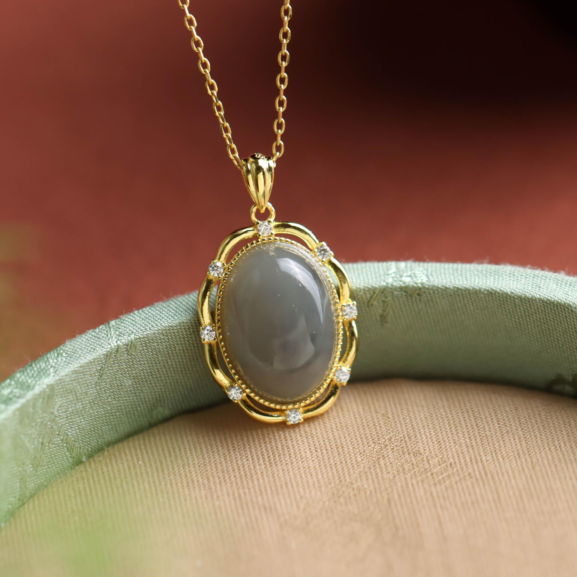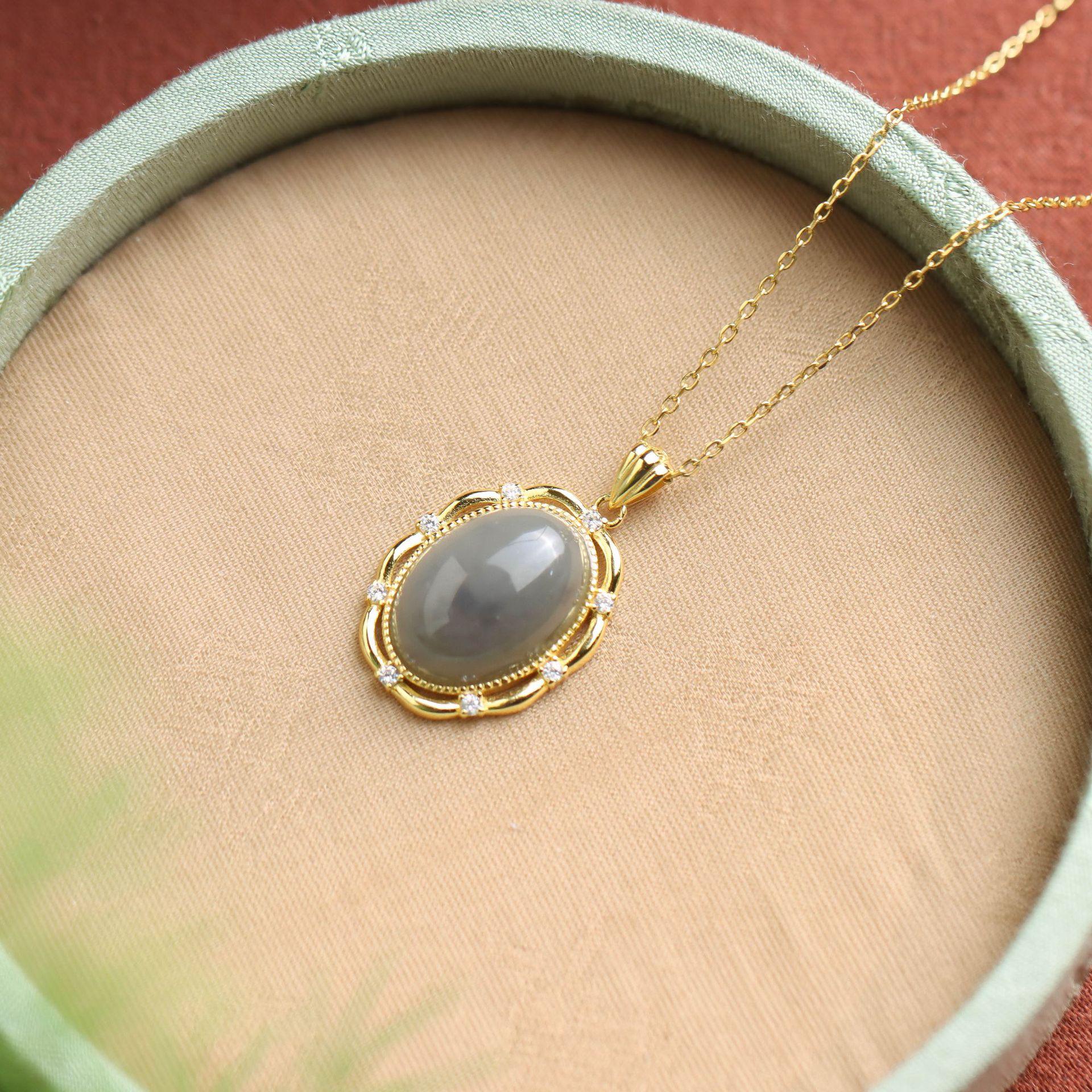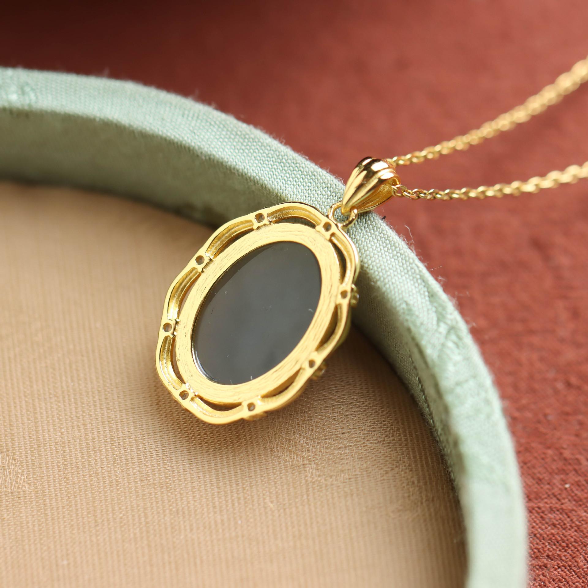 Colgante de mujer de estilo nacional Xirui S925 con incrustaciones de jade hetiano natural, color morado ahumado y chapado en oro, con cara de huevo de jade.