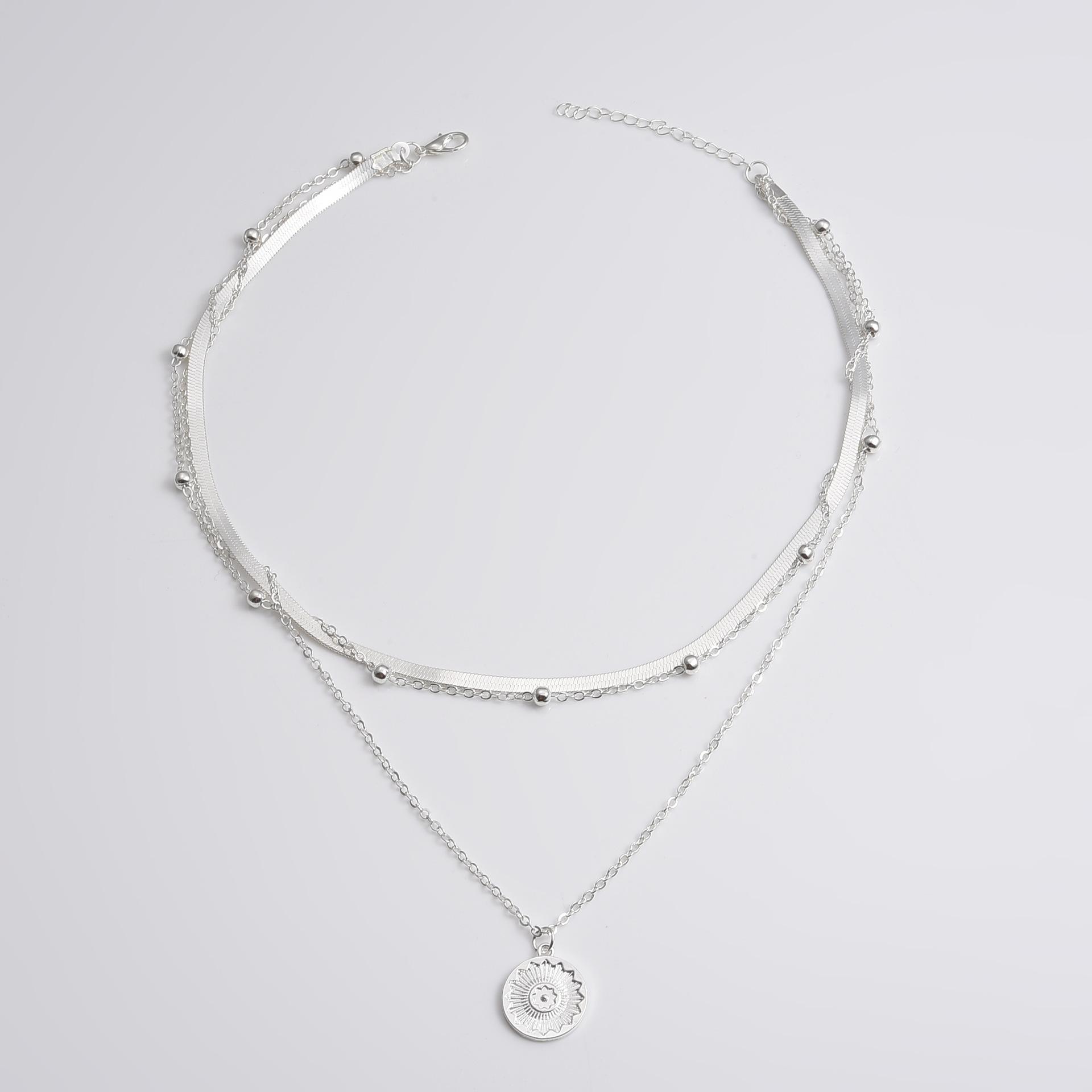 Collar de Loto Dorado de Aleación Simple Transfronterizo Europeo y Americano Joyería Colgante Multicapa Accesorios Cadena Collar de Cadena