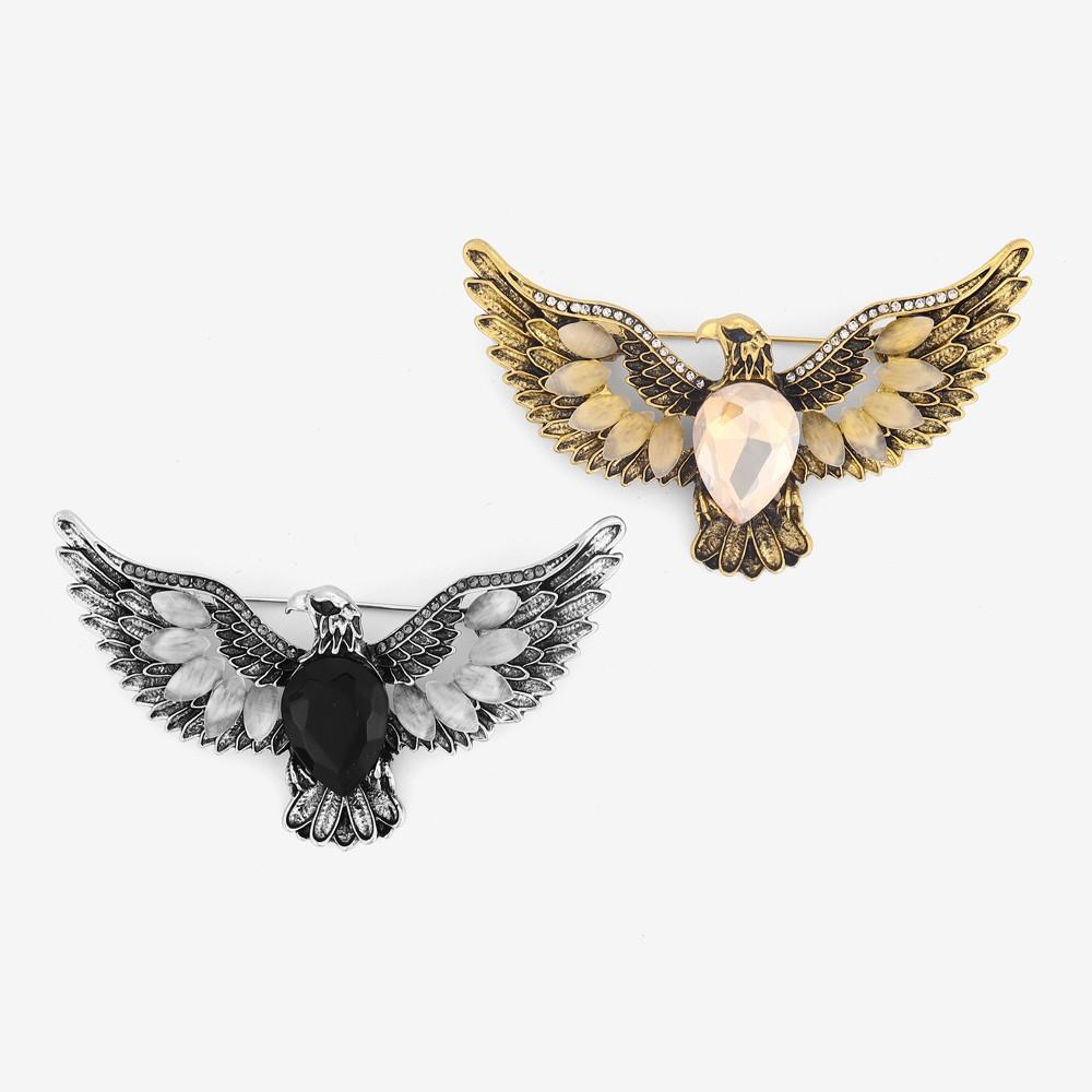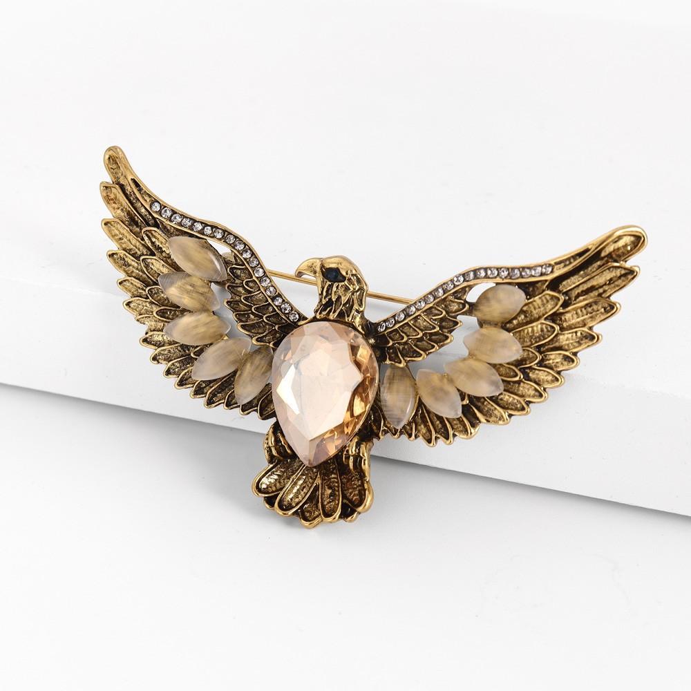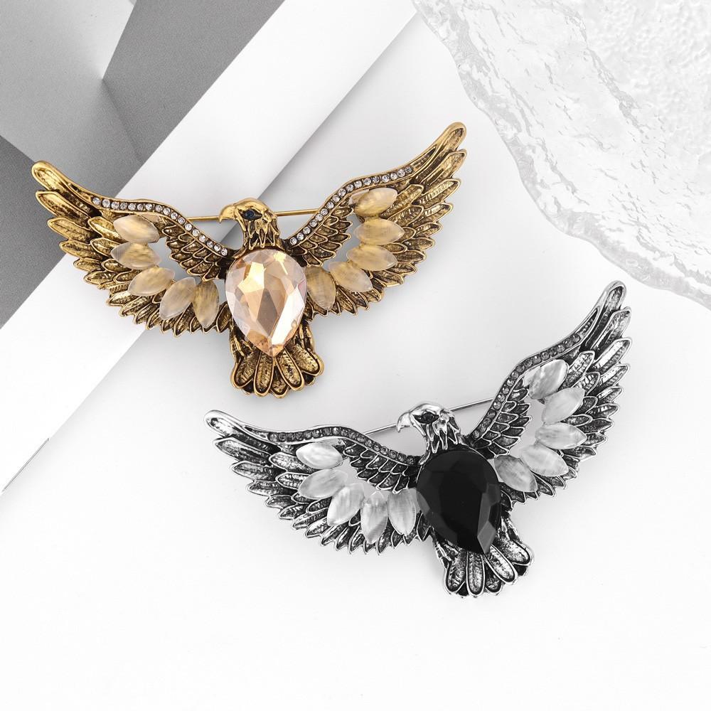 Broche personalizado retro con alas de águila de ópalo creativo europeo y americano, broche de animal, accesorio de ropa, broche