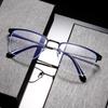 Gafas de miopía de media montura para hombres y mujeres en ciencia e ingeniería, protección de luz azul retro, elegantes, de negocios, protección para los ojos con luz plana, montura de alambre ultraligera para cejas