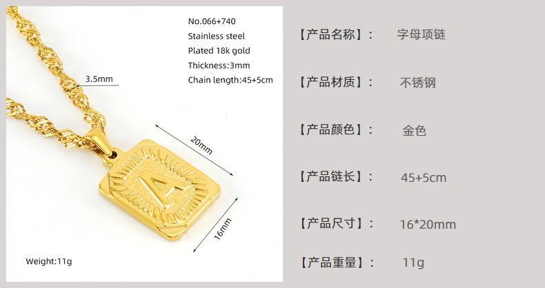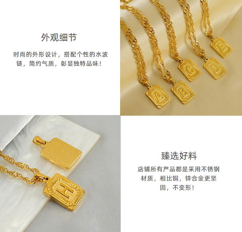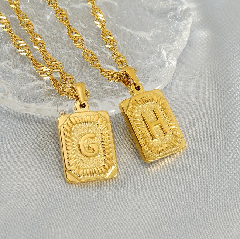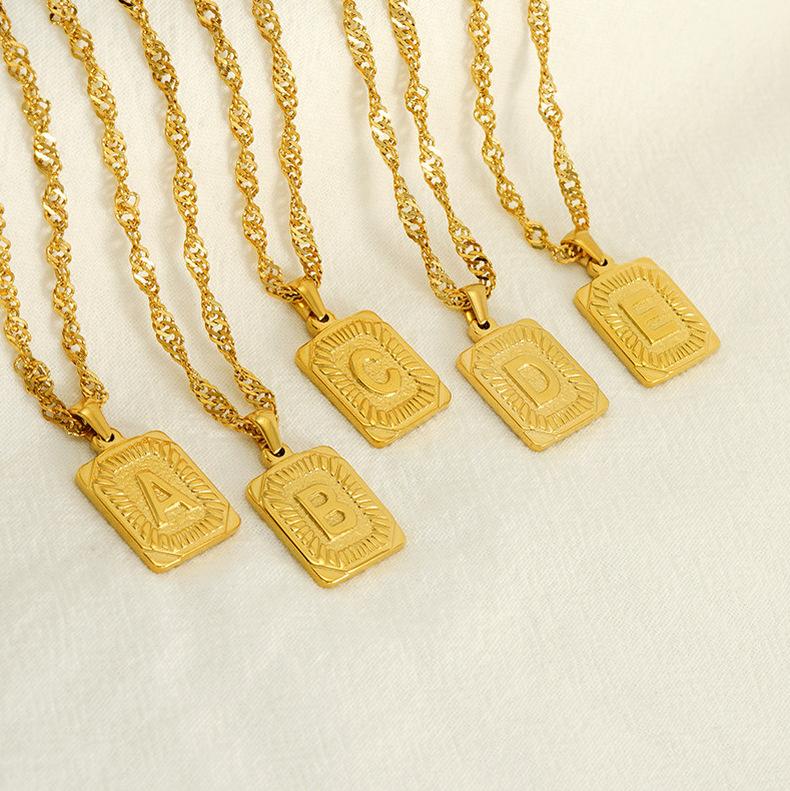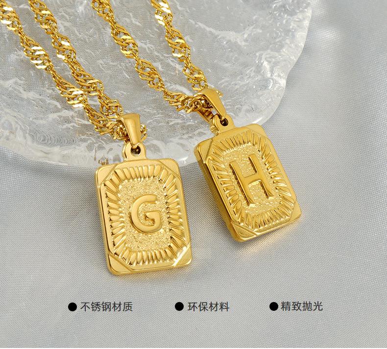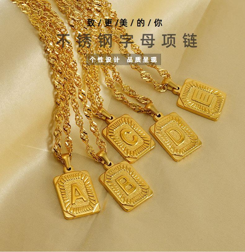 Colgante de letra cuadrada de acero inoxidable de 18 quilates para hombre, collar con letras en inglés, joyería al por mayor, venta transfronteriza de Amazon