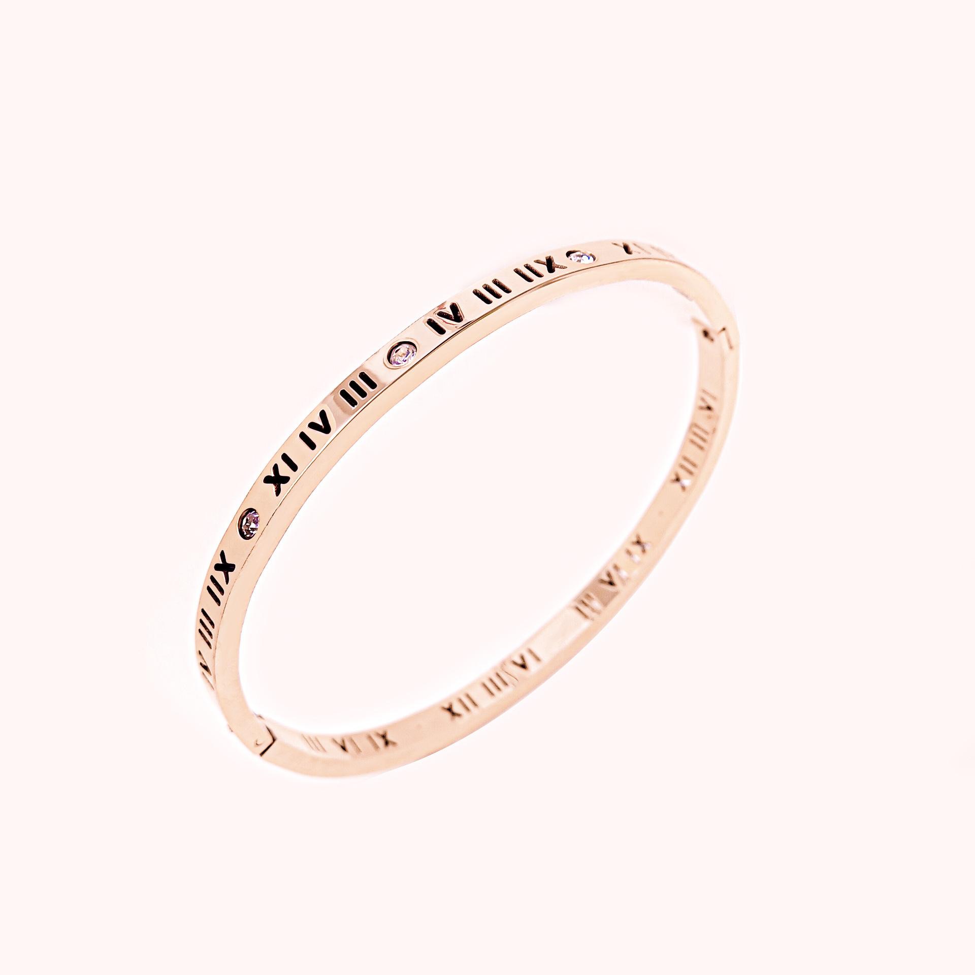 Roman numeral steel bracelet, Roman numeral gold bracelet, Roman numeral rose gold bracelet