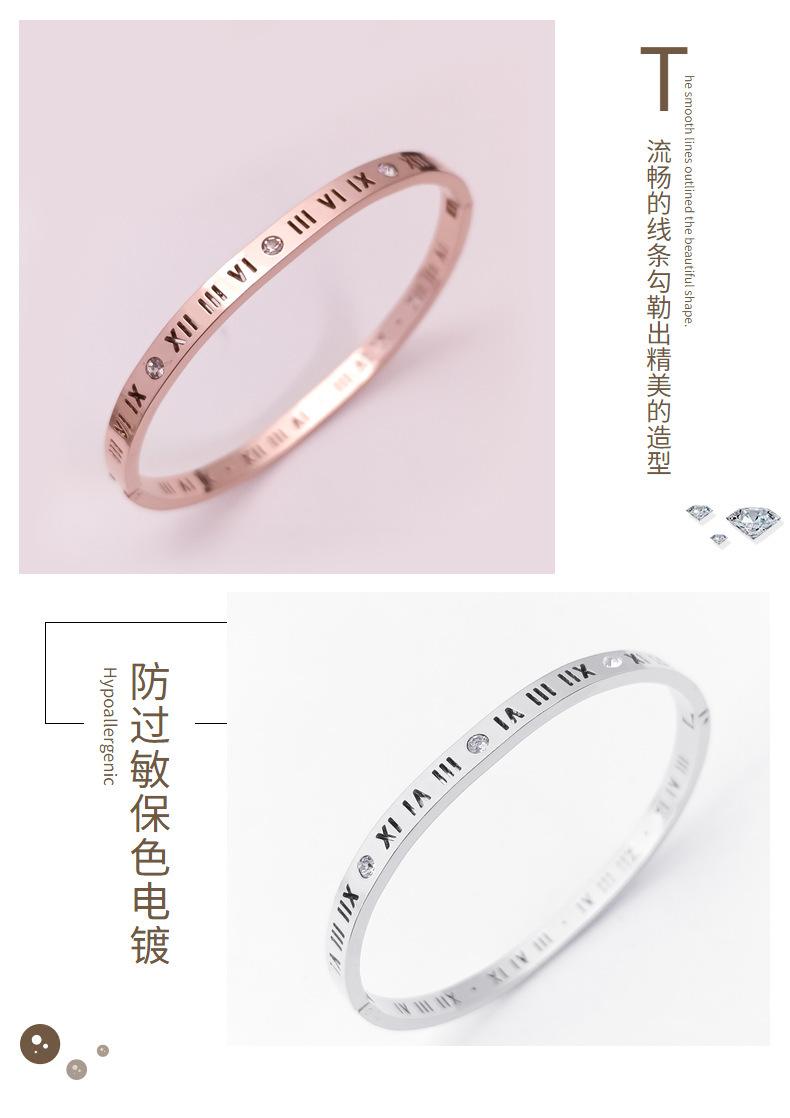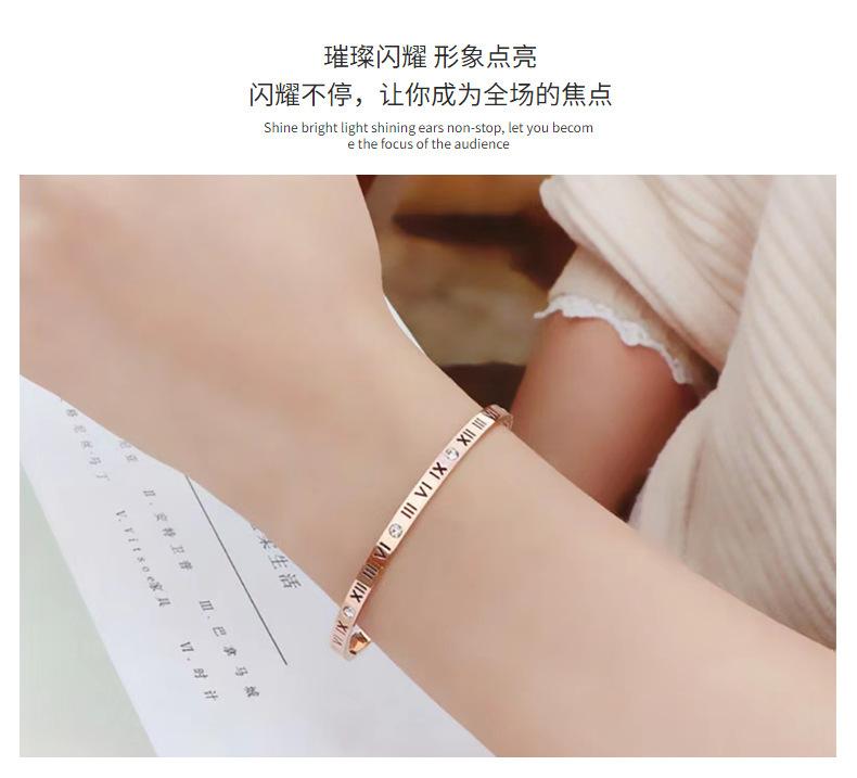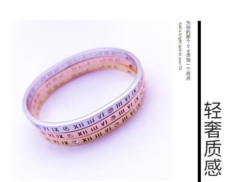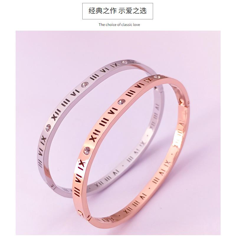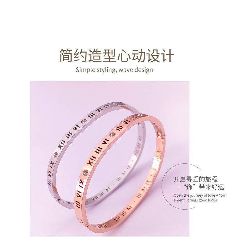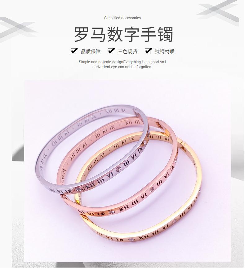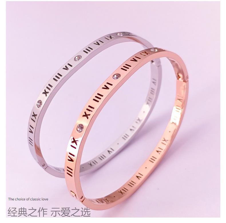 Pulsera romana de venta caliente transfronteriza Pulsera de moda para mujer de acero inoxidable que no se desvanece oro rosa acero titanio