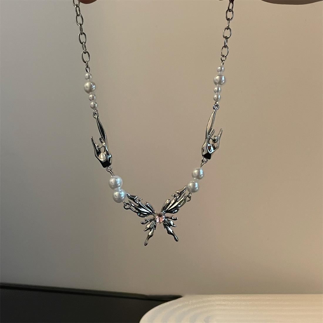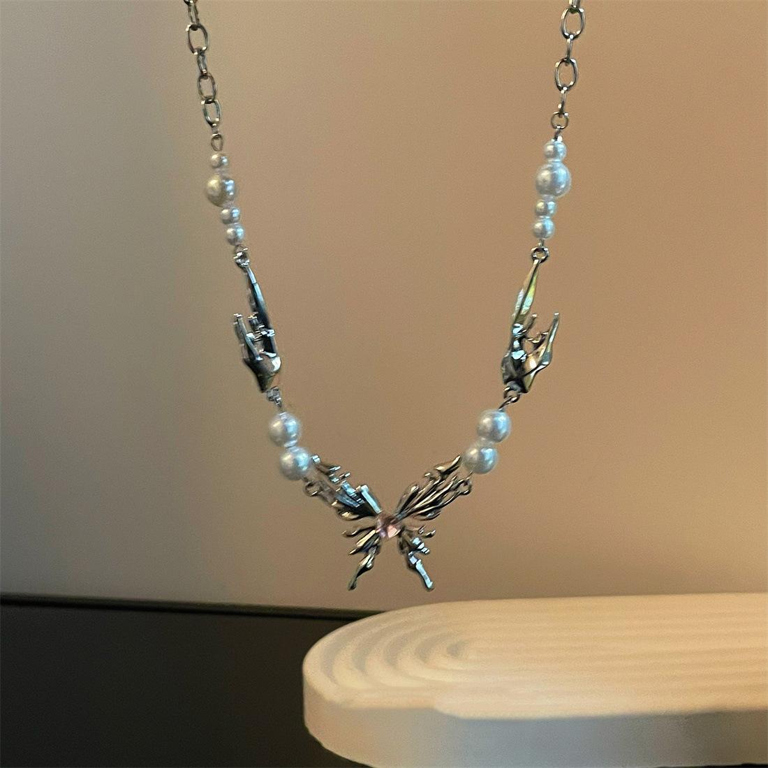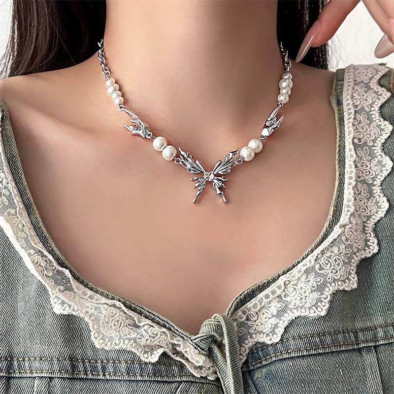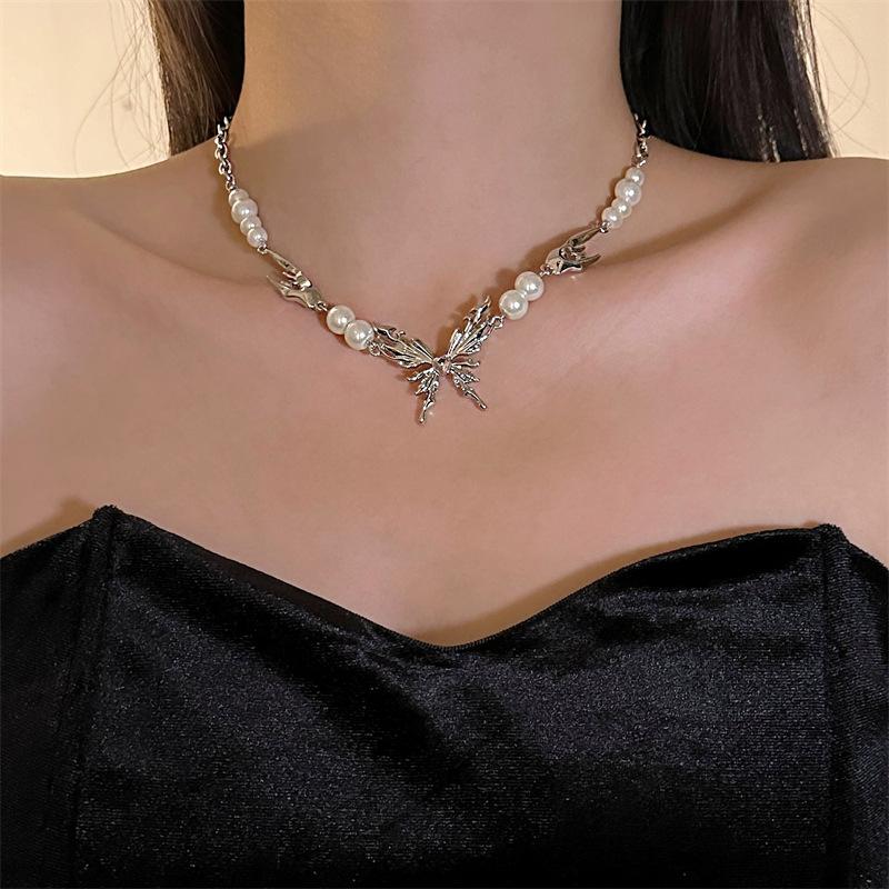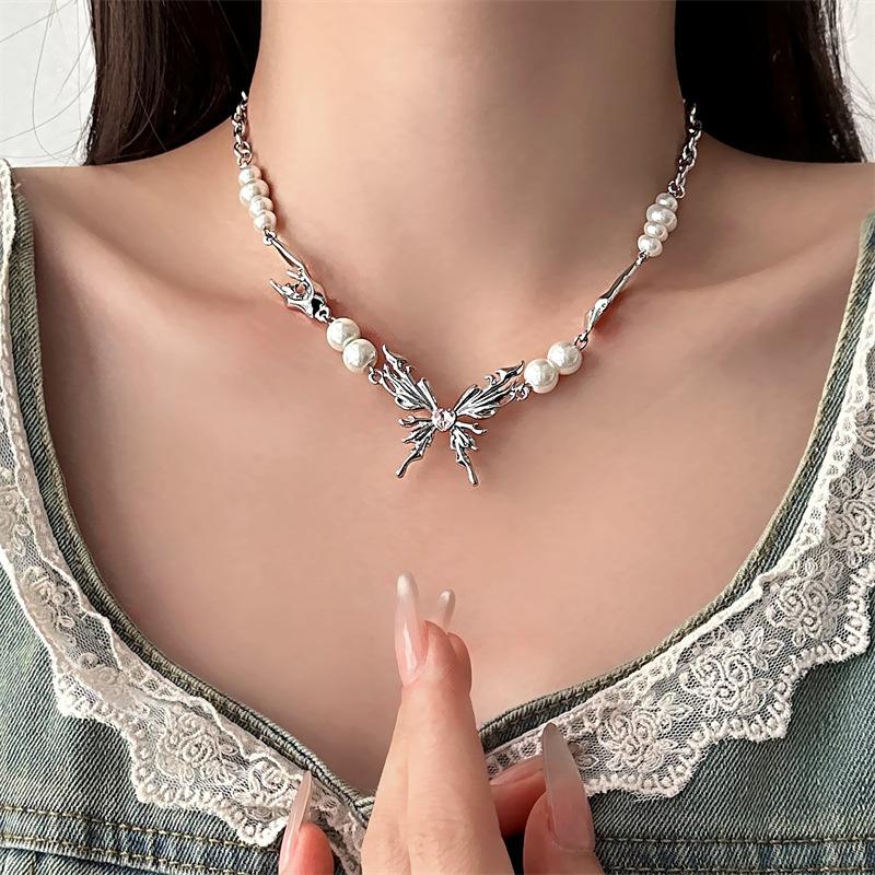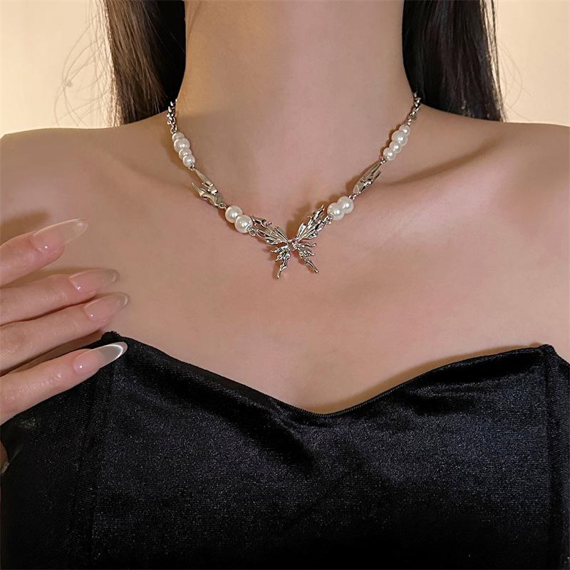 Collar Nuevo Estilo Ins 2024 Mariposa Puntada de Perla Cadena Clavicular Hip Hop Diseño Nicho Sentido Avanzado Accesorios