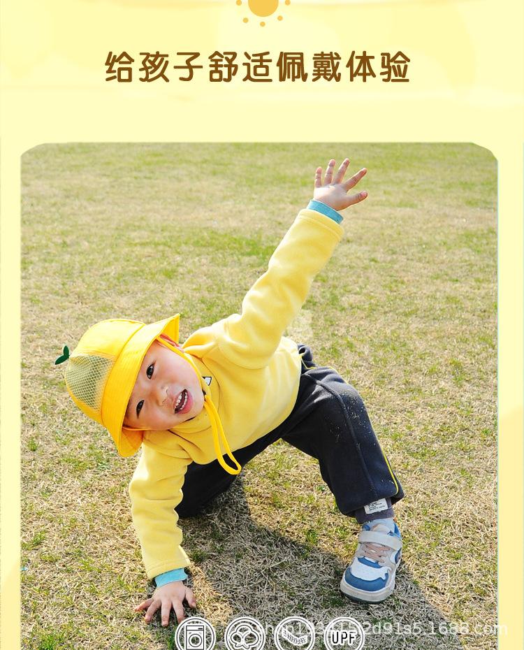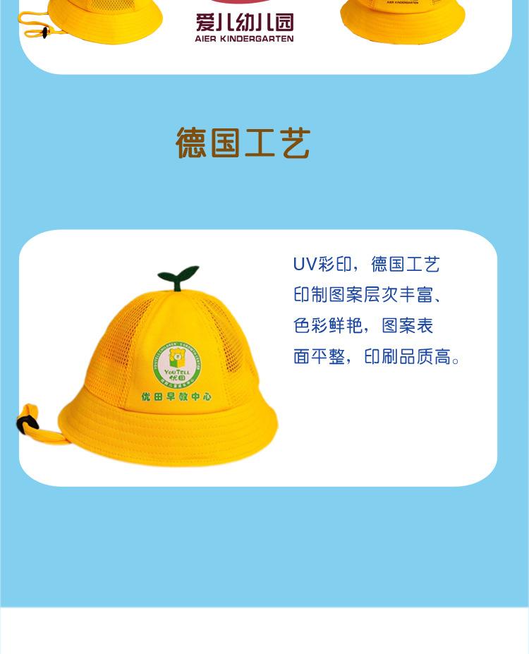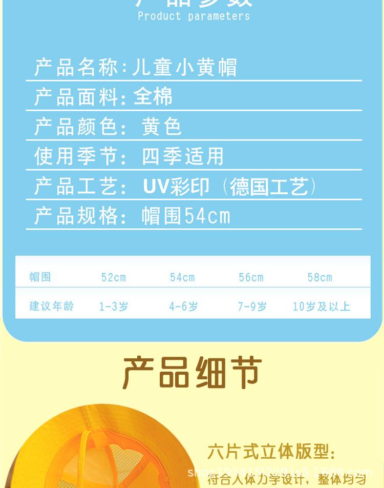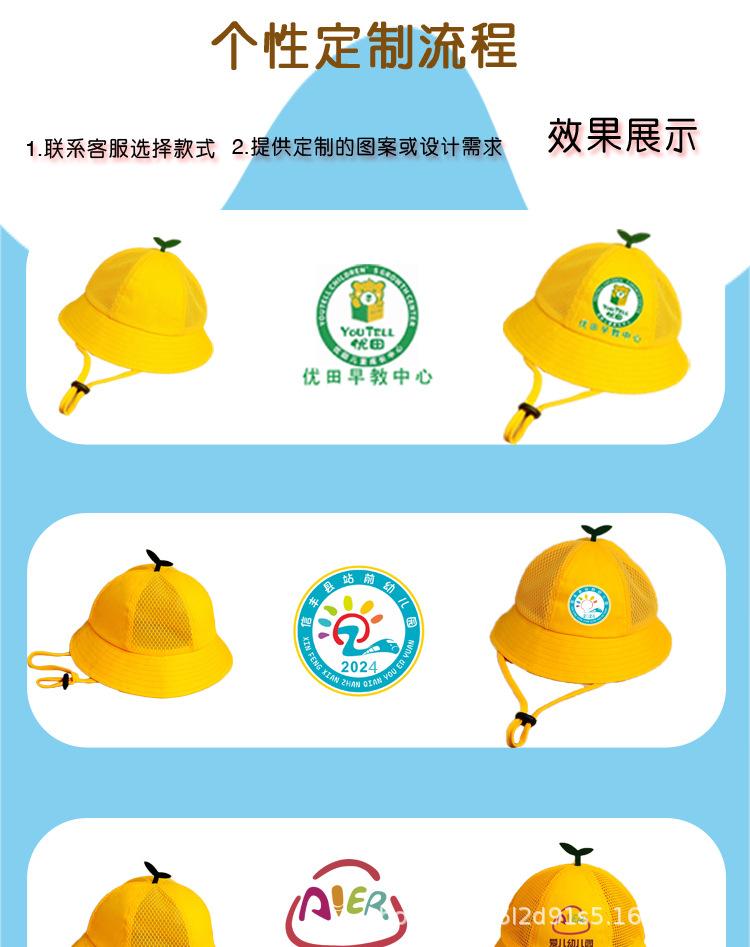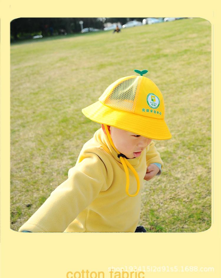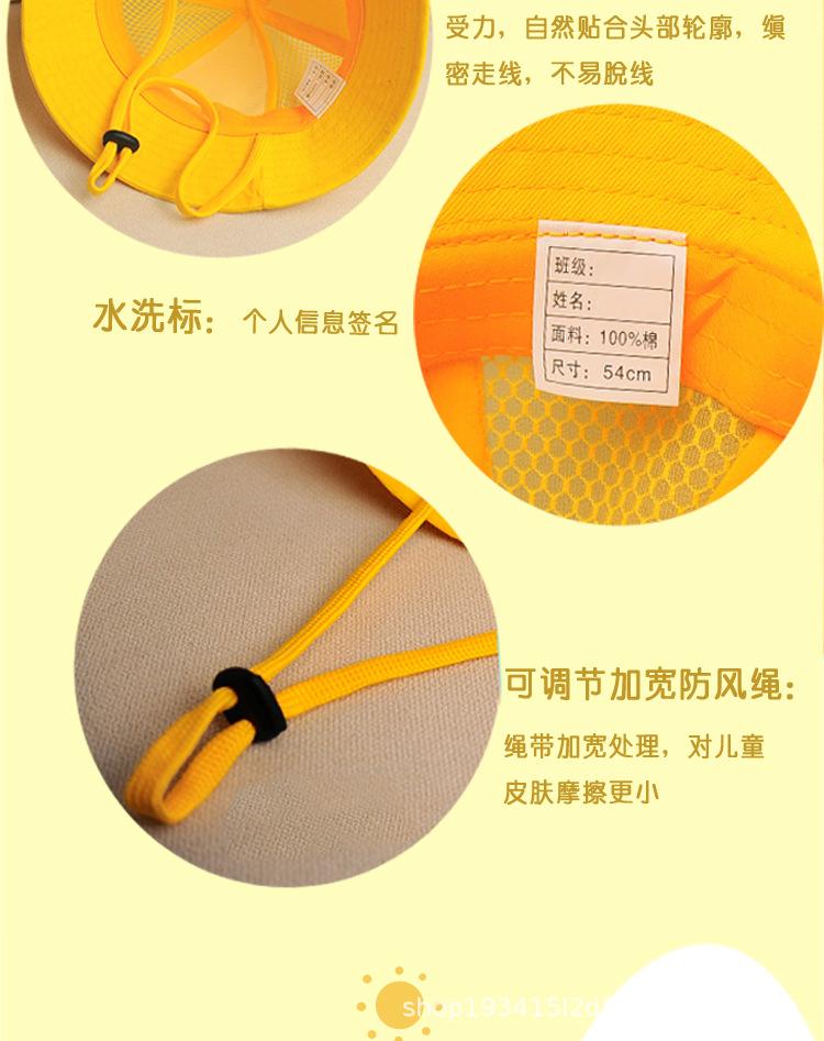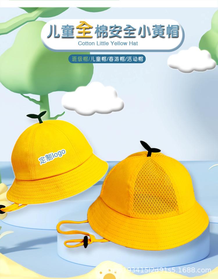 Sombrero amarillo pequeño para jardín de infantes, sombrero de pescador con logotipo impreso, sombrero de algodón con protección solar, sombrero de seguridad para escuela primaria.