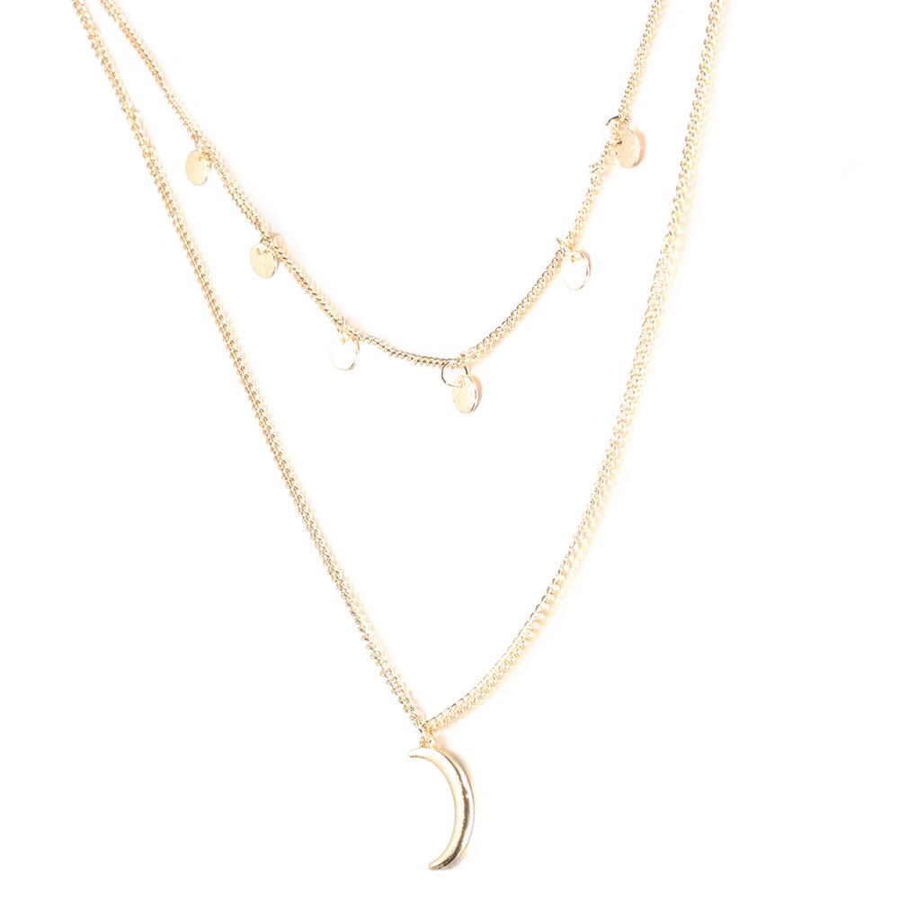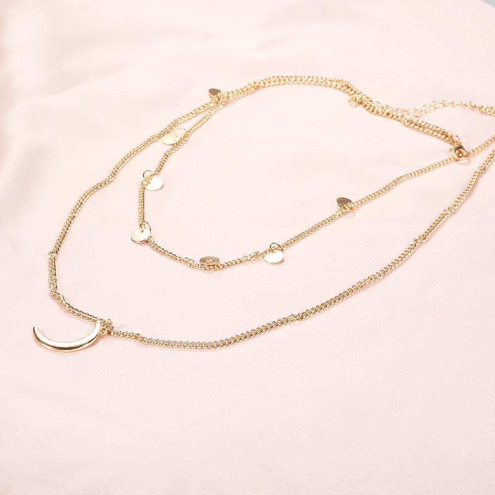 Collar de cadena de clavícula de doble capa con disco lunar y personalidad sencilla transfronteriza de nueva moda europea y americana para mujer