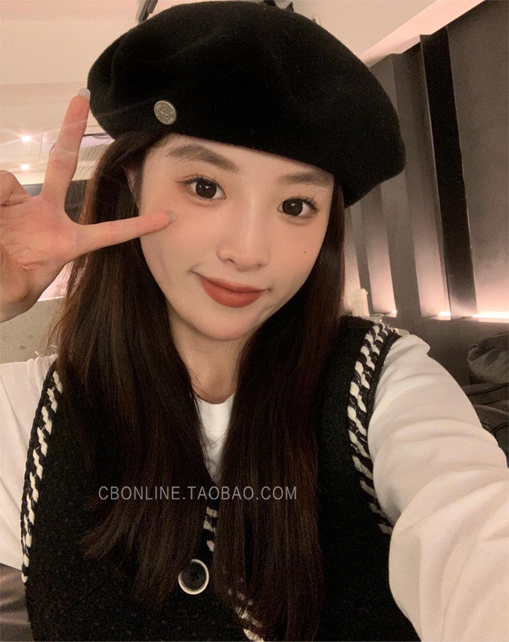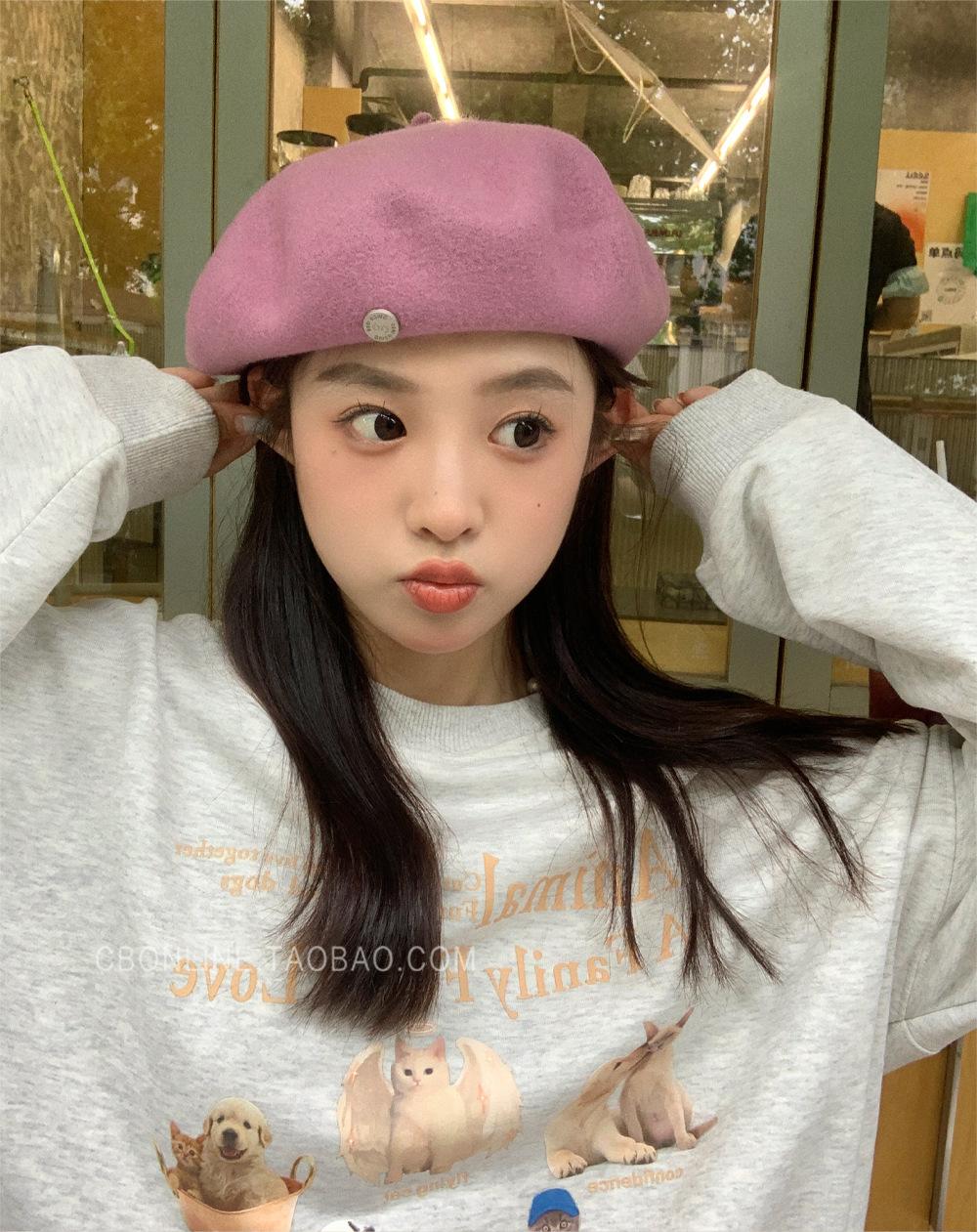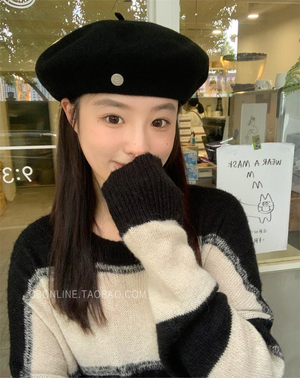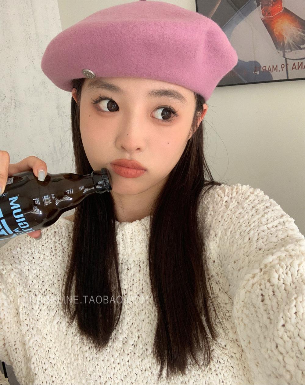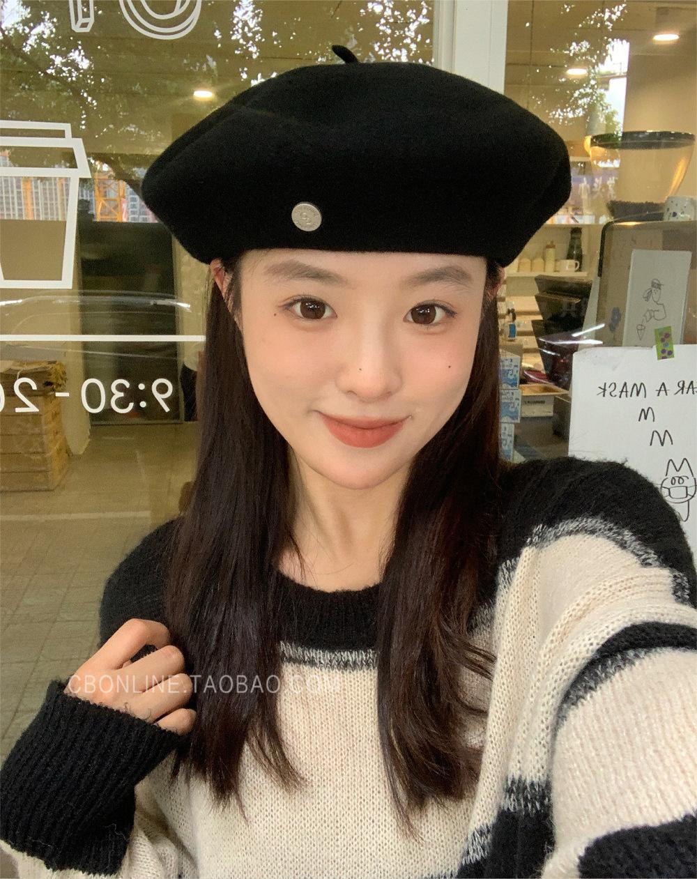Sombrero Boina de Lana para Mujer Otoño e Invierno Gorra de Pintor Vintage para Mujer Que Afina el Rostro Pequeño Elegante Moda Gorro de Brote Moderno