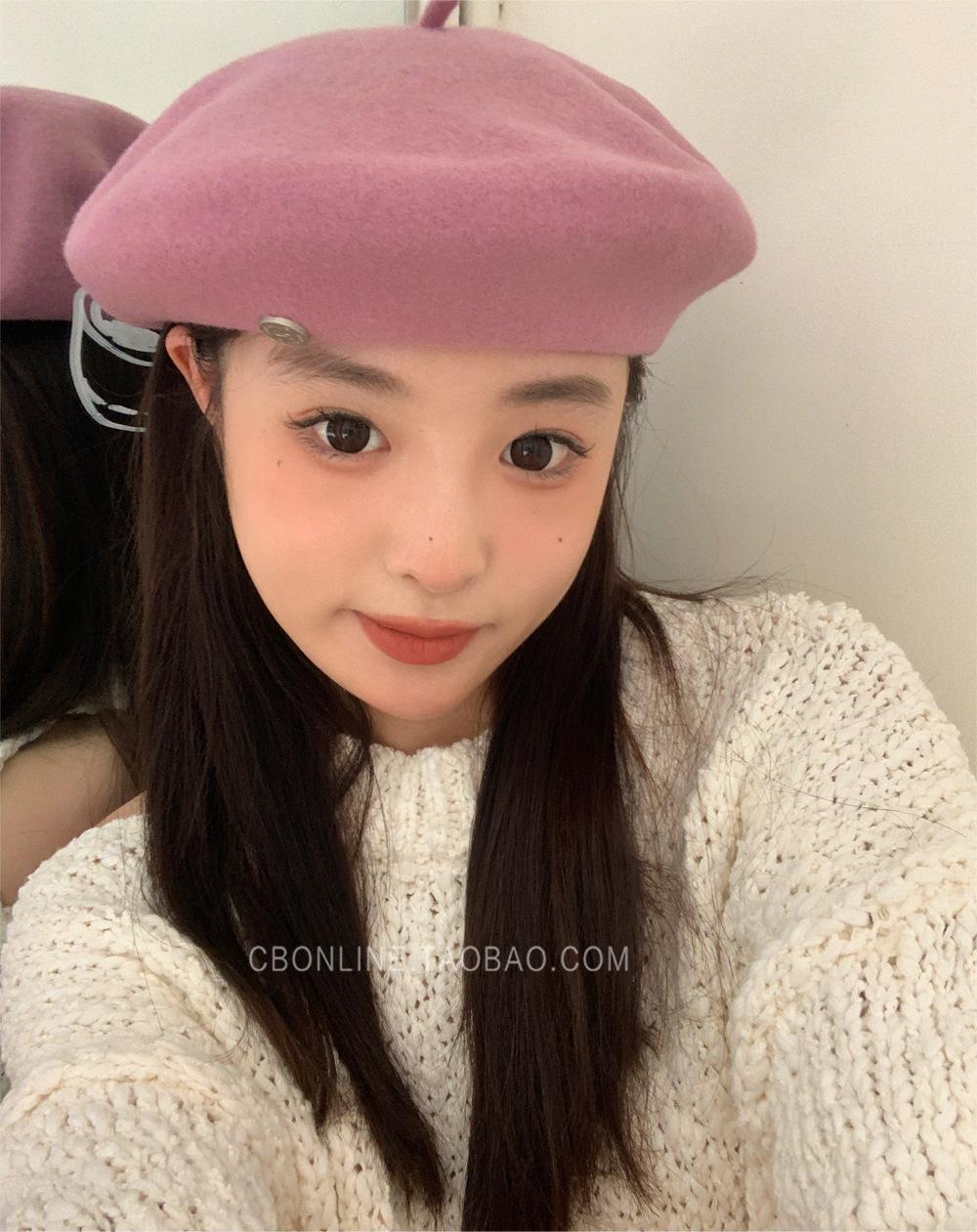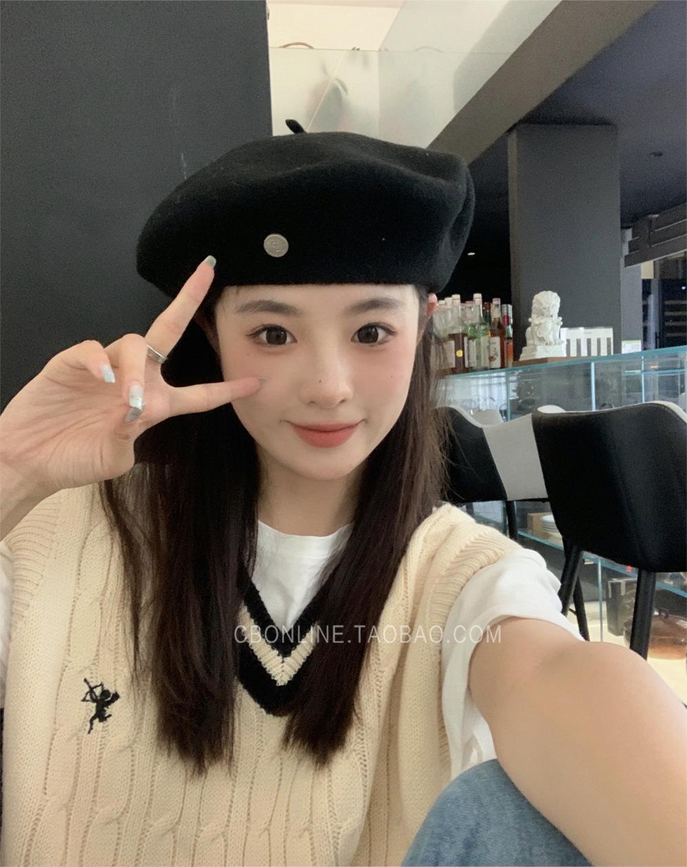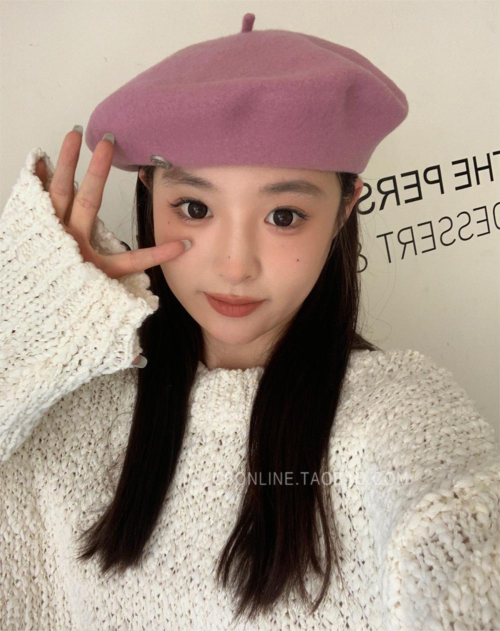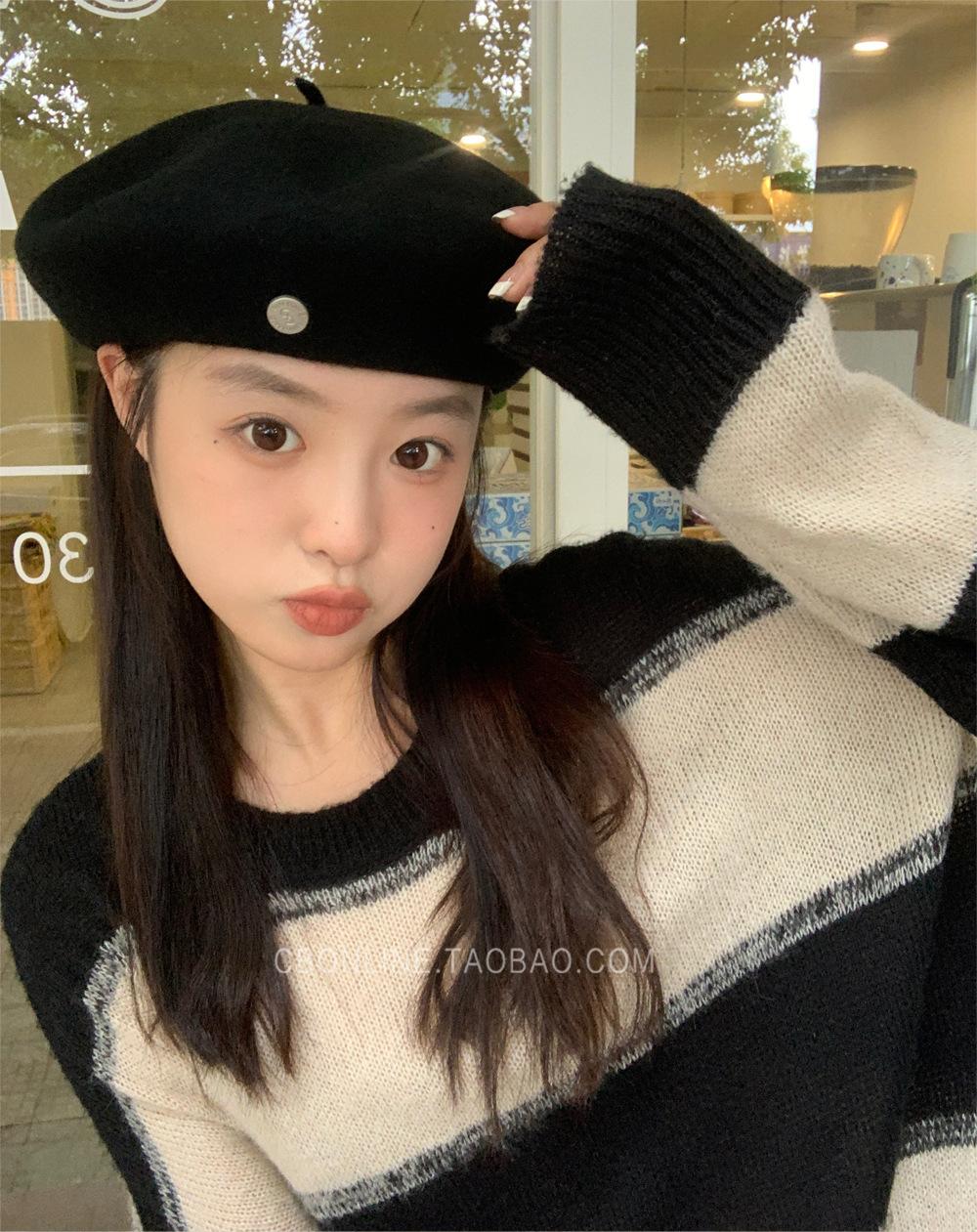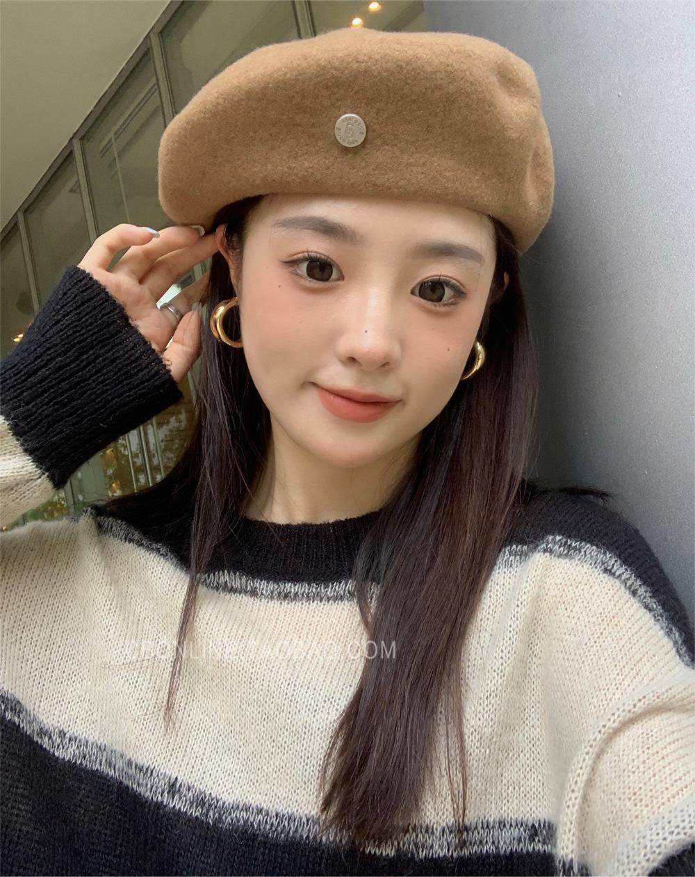 Sombrero Boina de Lana para Mujer Otoño e Invierno Gorra de Pintor Vintage para Mujer Que Afina el Rostro Pequeño Elegante Moda Gorro de Brote Moderno