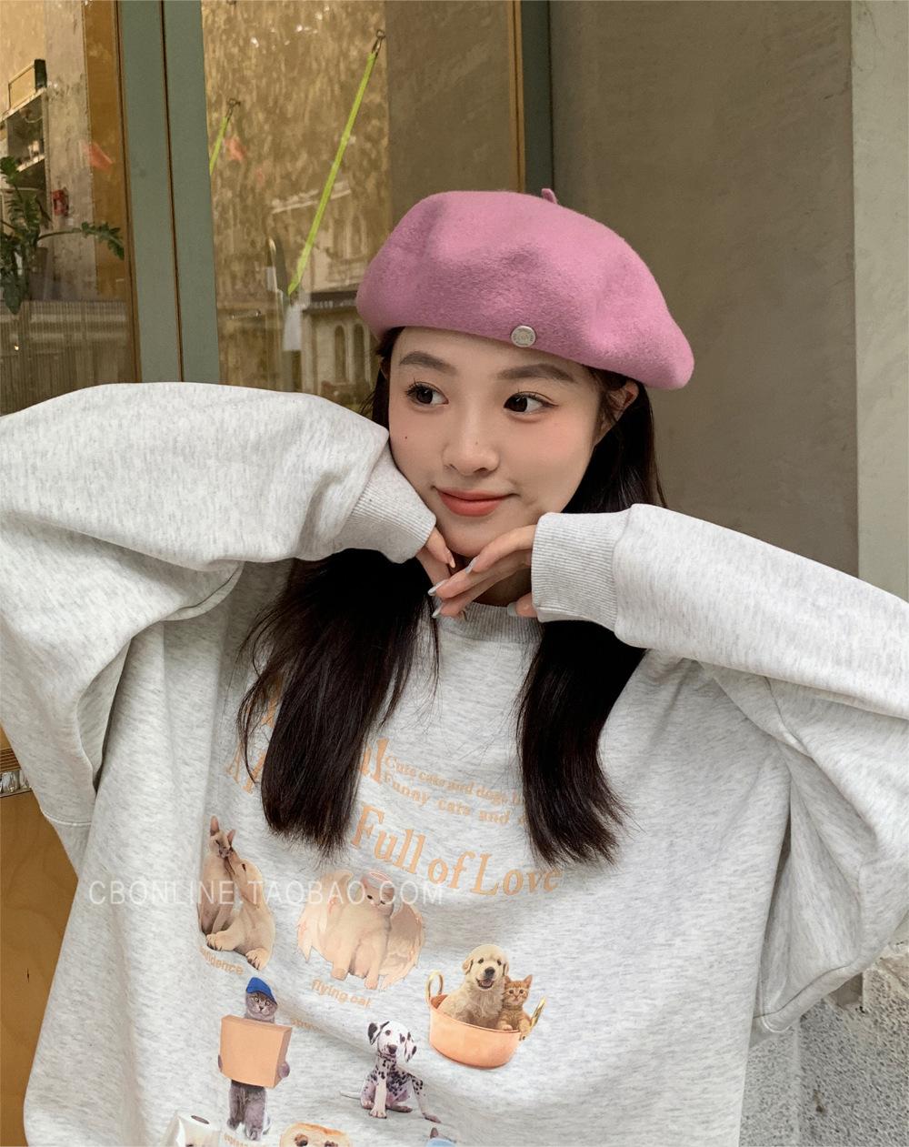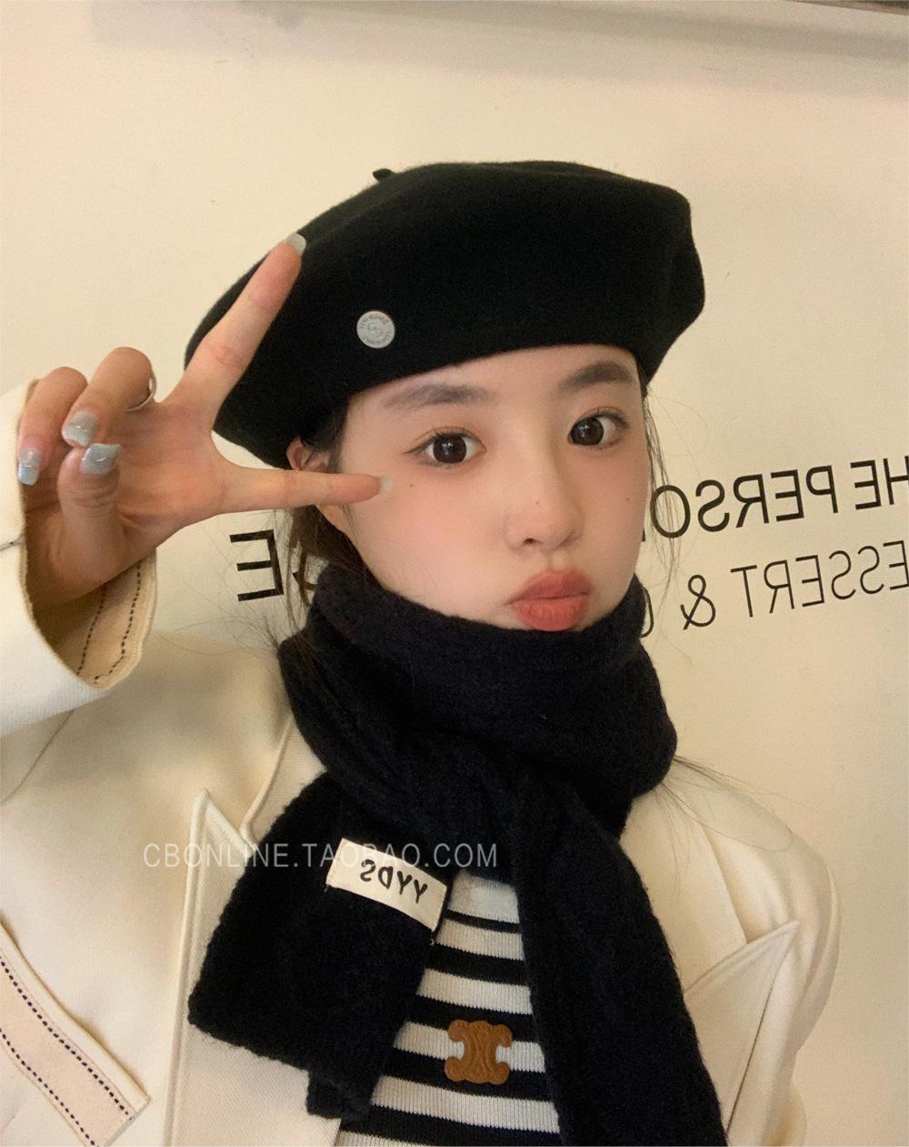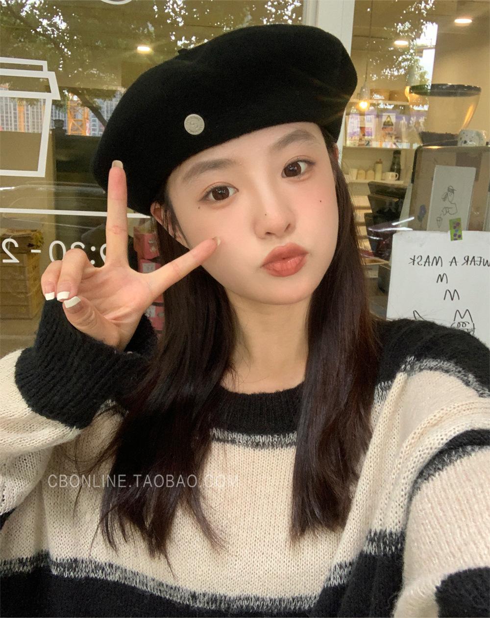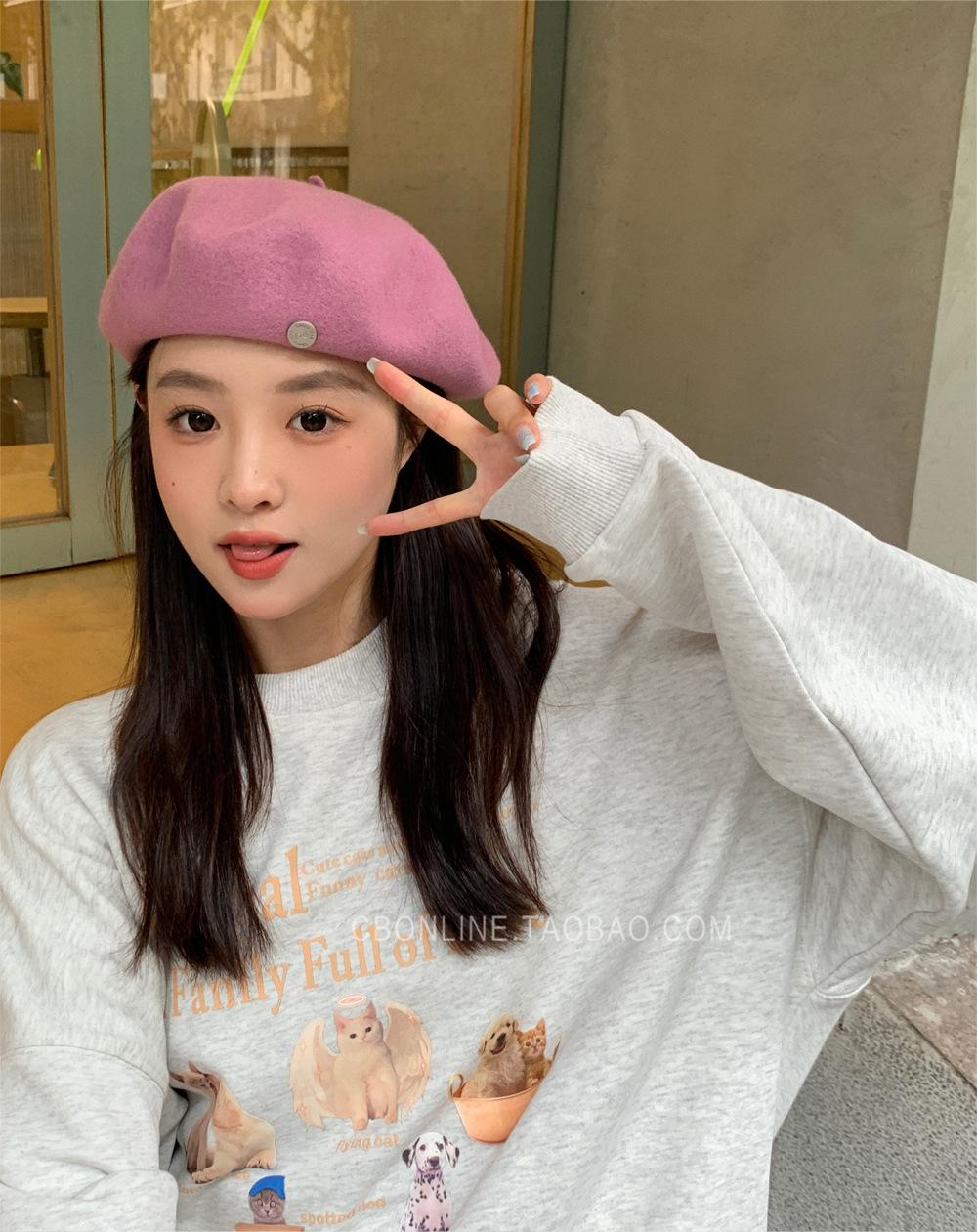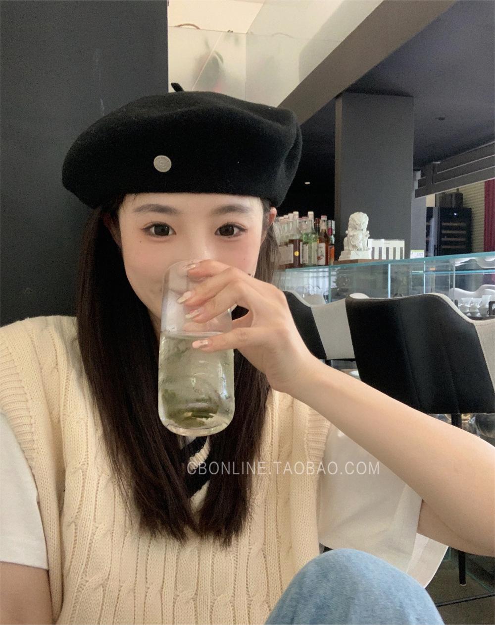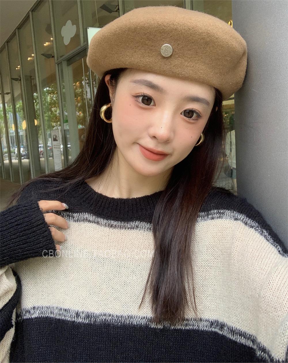 Sombrero Boina de Lana para Mujer Otoño e Invierno Gorra de Pintor Vintage para Mujer Que Afina el Rostro Pequeño Elegante Moda Gorro de Brote Moderno