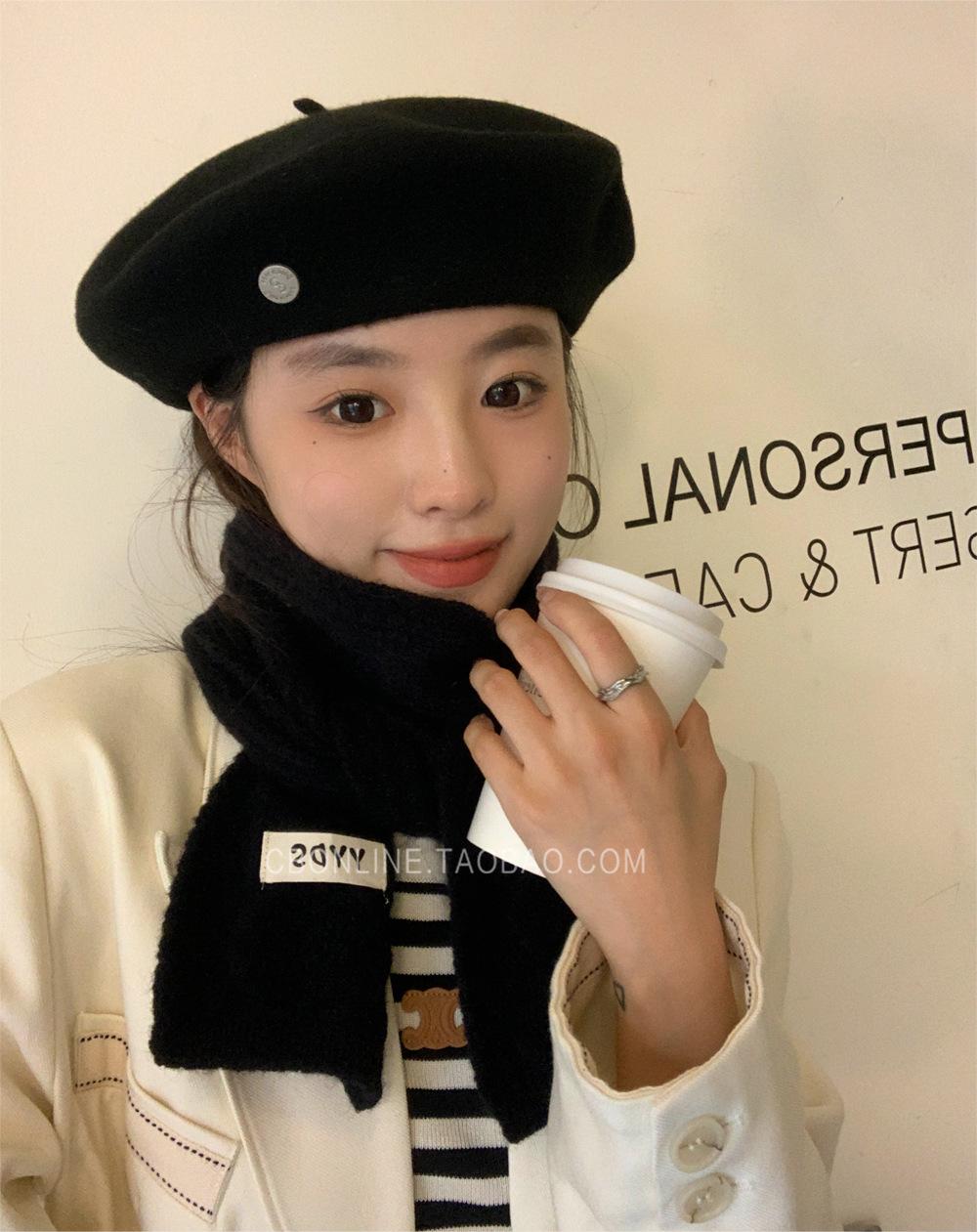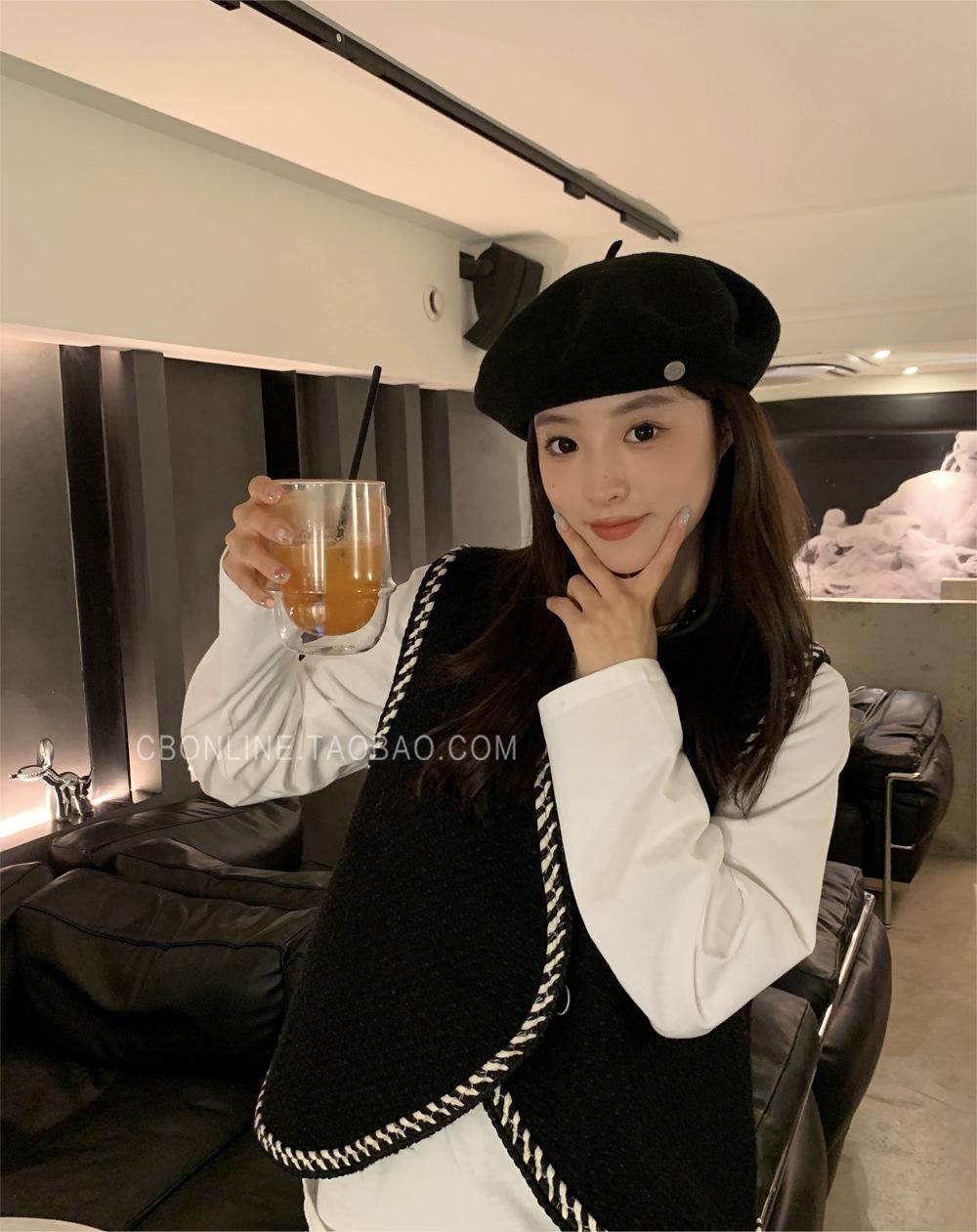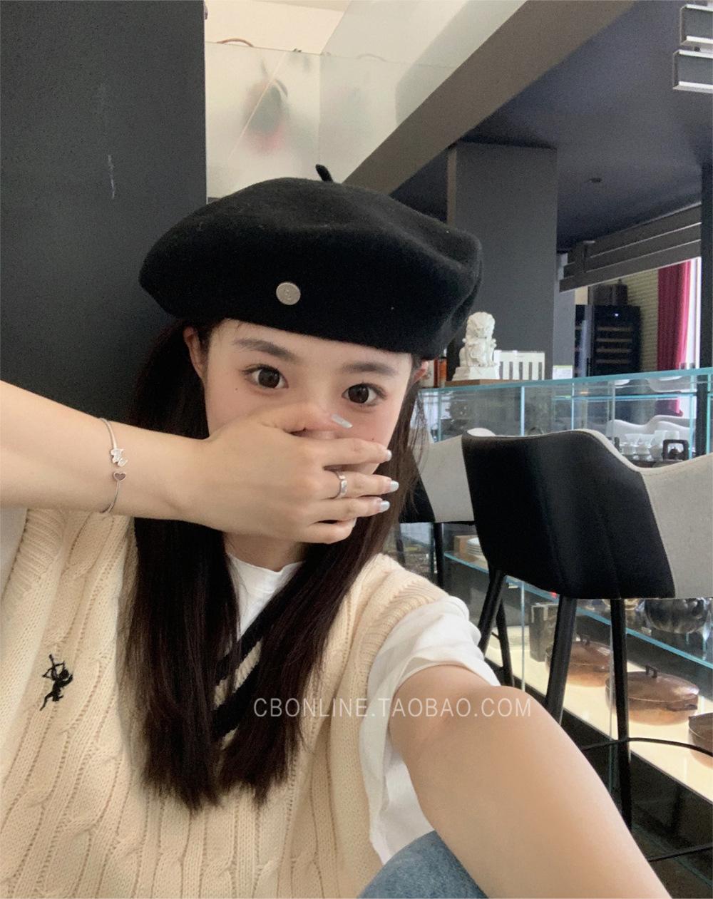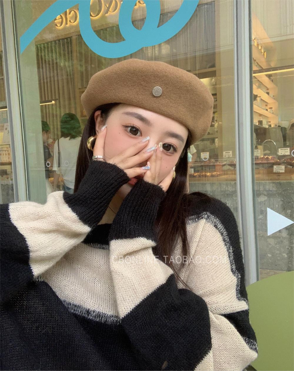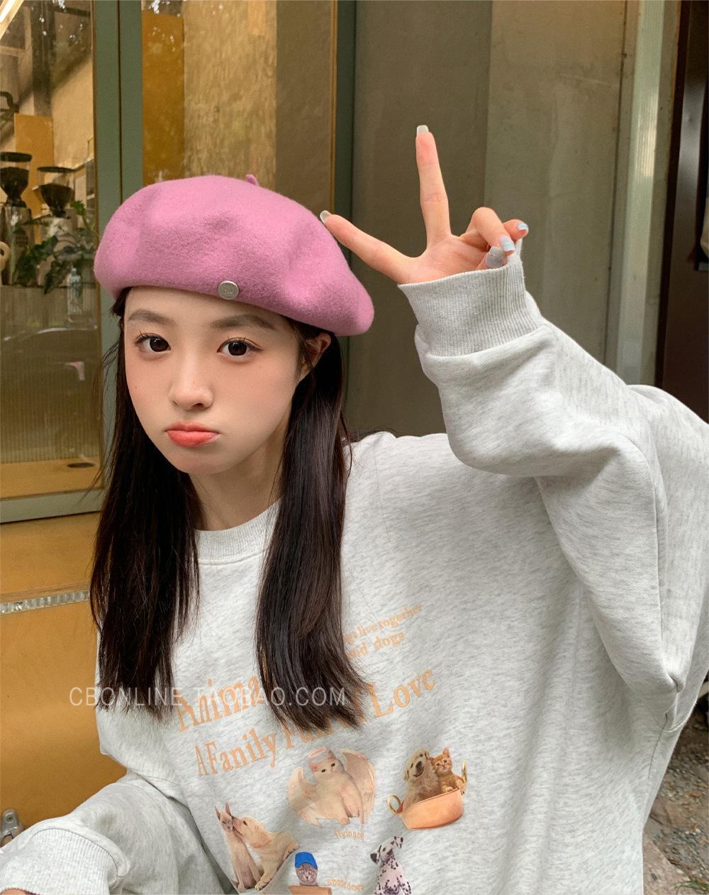 Sombrero Boina de Lana para Mujer Otoño e Invierno Gorra de Pintor Vintage para Mujer Que Afina el Rostro Pequeño Elegante Moda Gorro de Brote Moderno