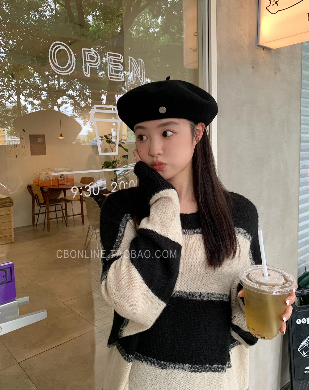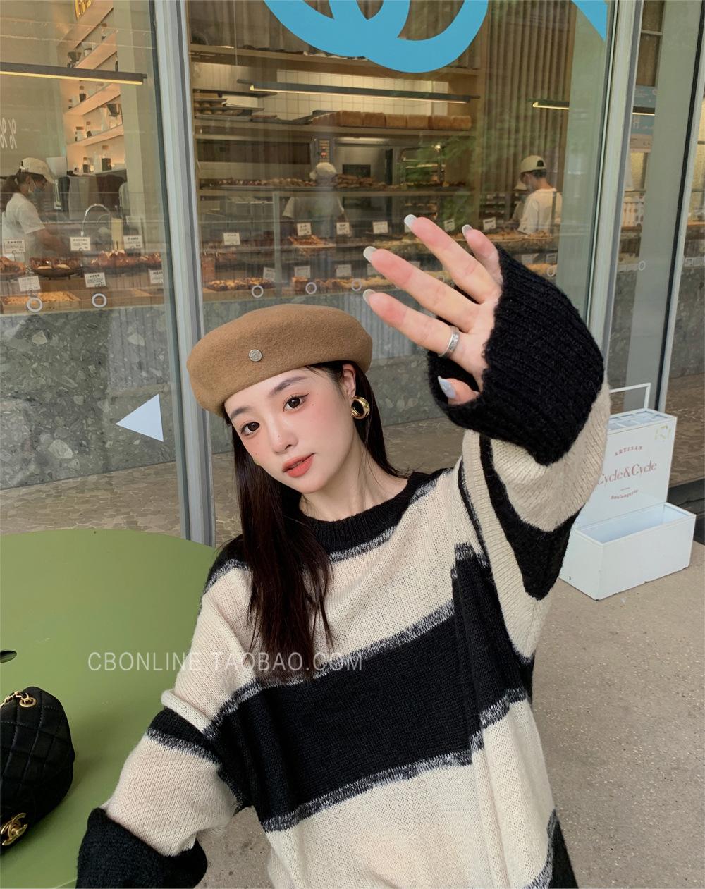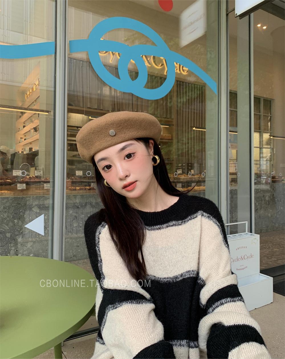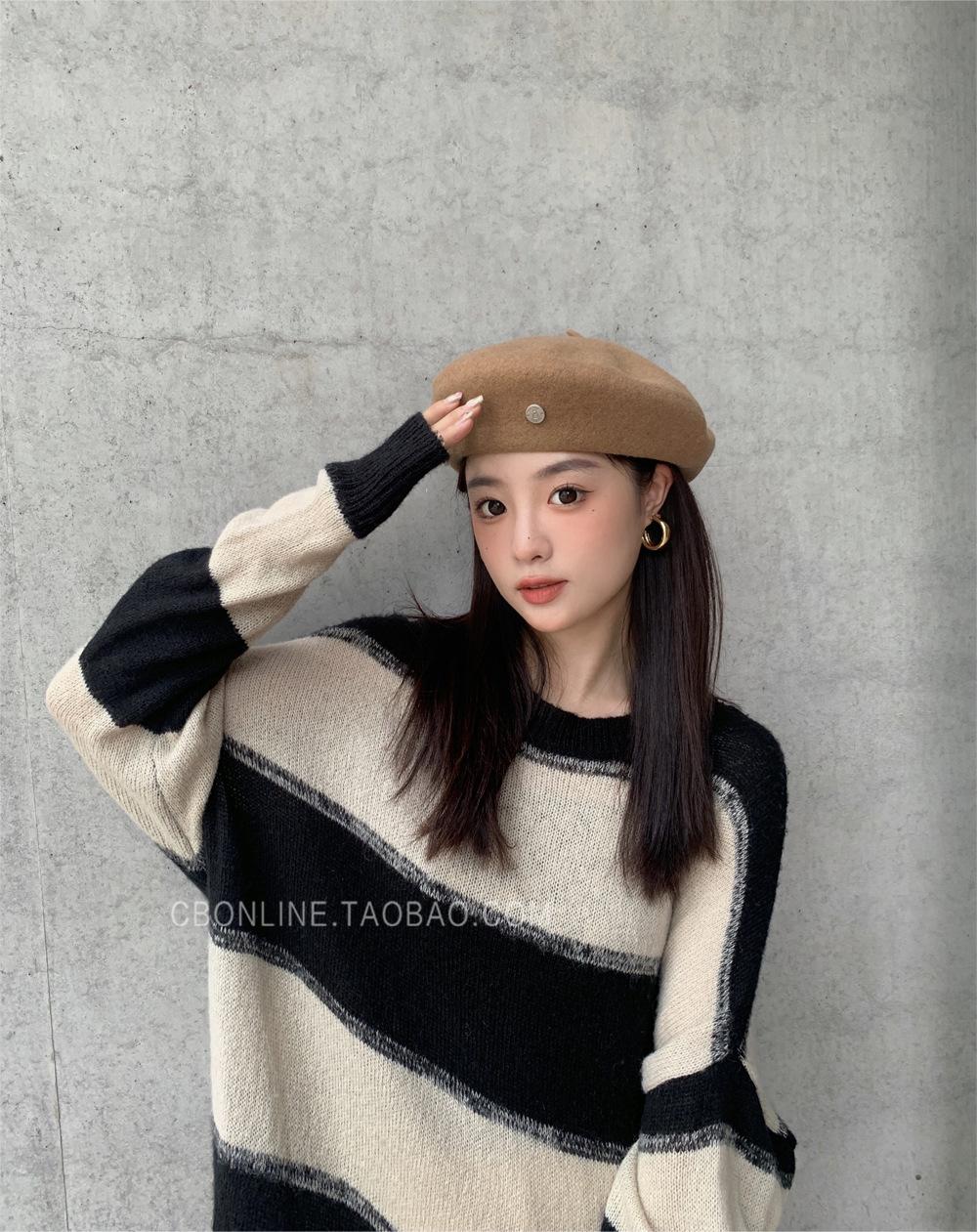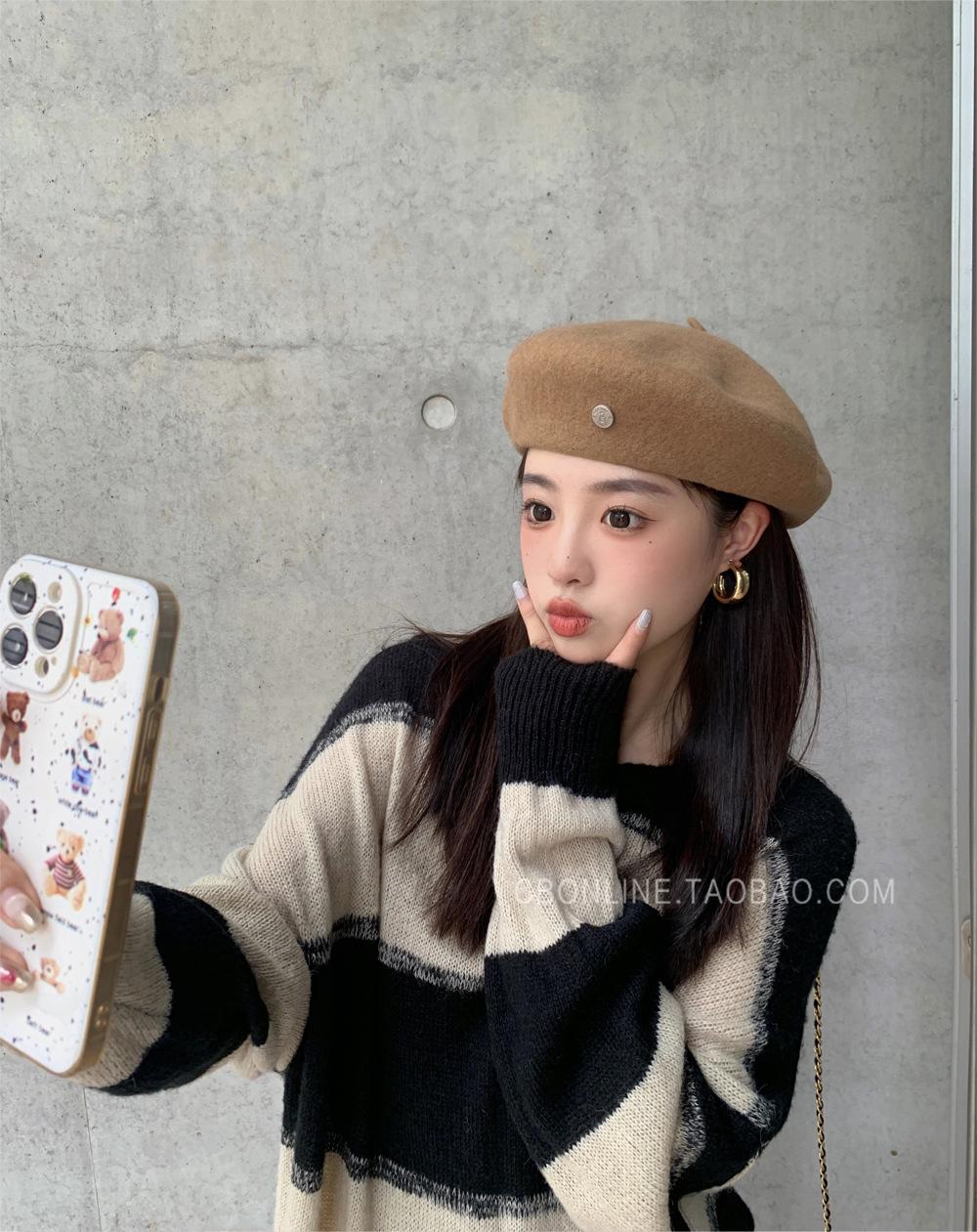 Sombrero Boina de Lana para Mujer Otoño e Invierno Gorra de Pintor Vintage para Mujer Que Afina el Rostro Pequeño Elegante Moda Gorro de Brote Moderno