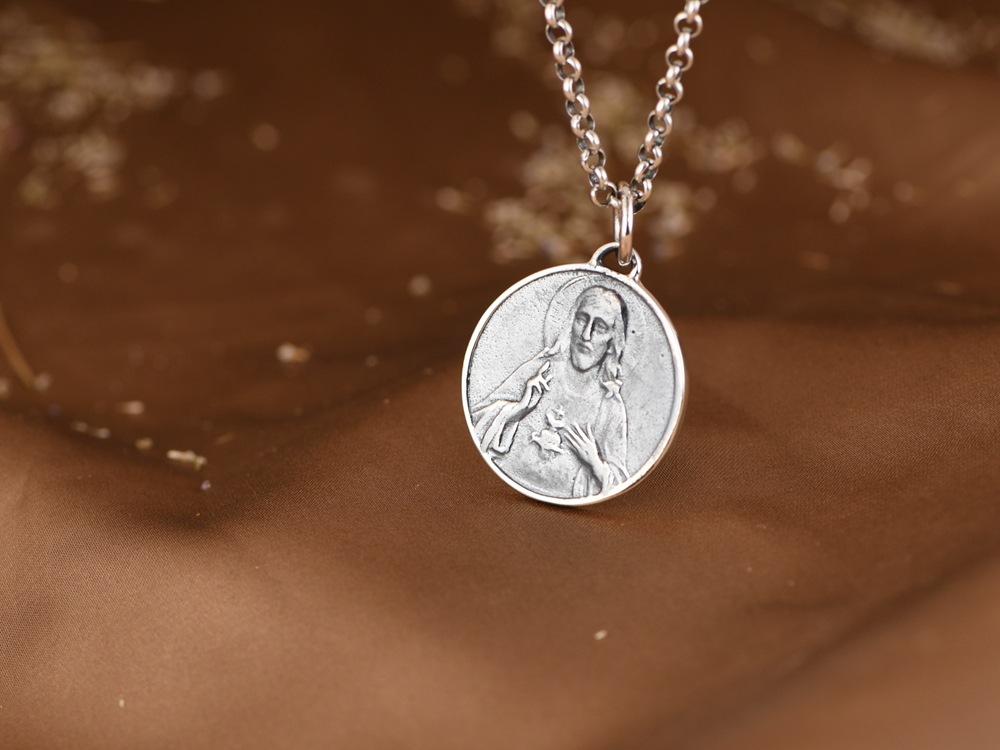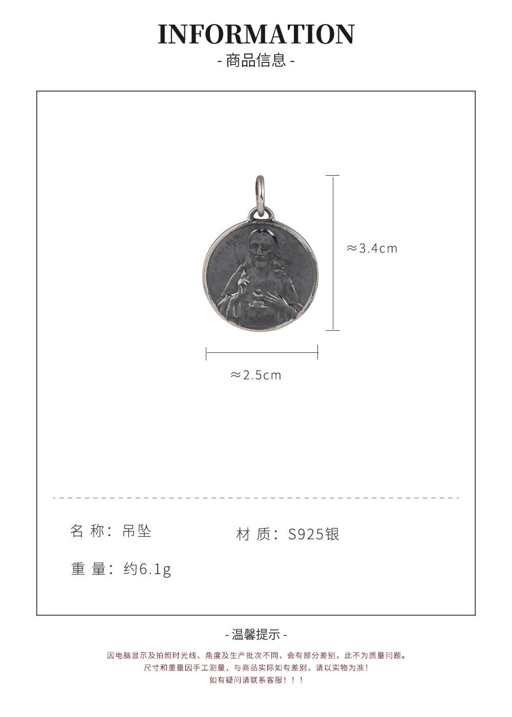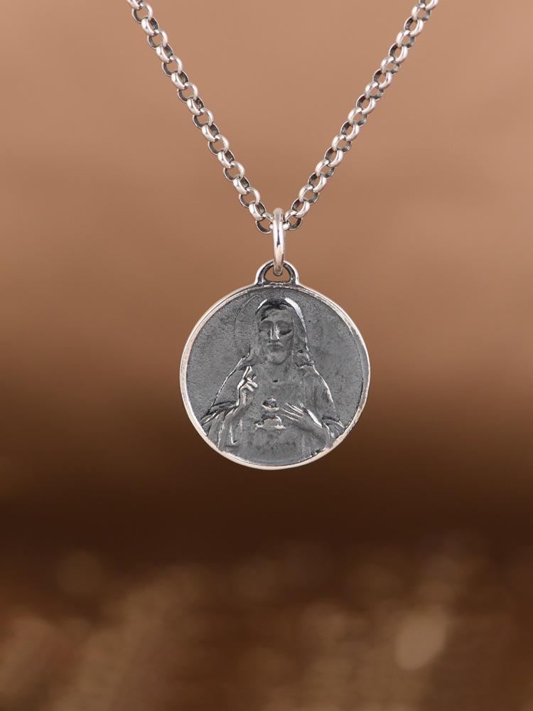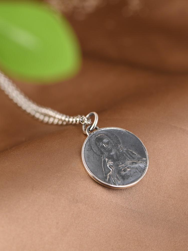 Colgante de plata S925 con diseño simple y retro de estilo antiguo con retratos de marca, accesorio para hombres y mujeres.