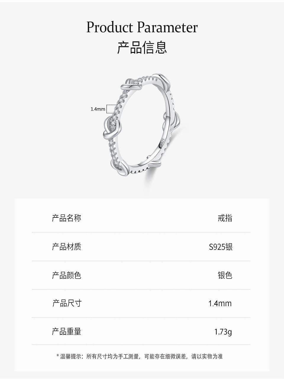 Anillo de diamantes de amor de plata esterlina S925 para mujer, diseño de nicho, con sentido del uso apilado, anillo de comida de viento, joyería de mano de viento frío