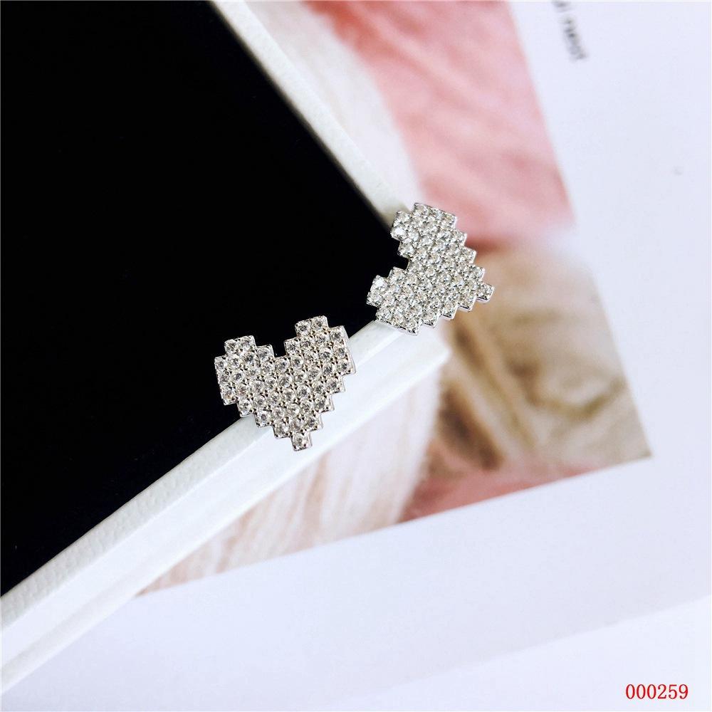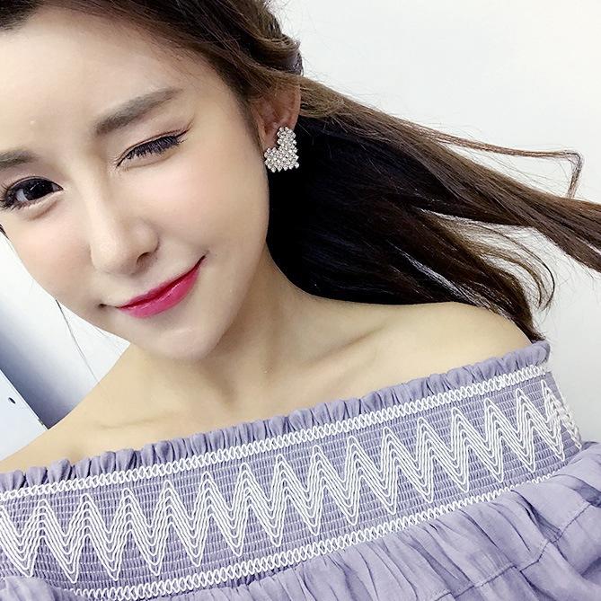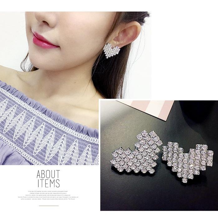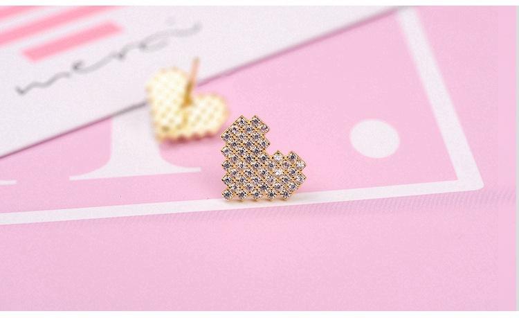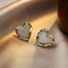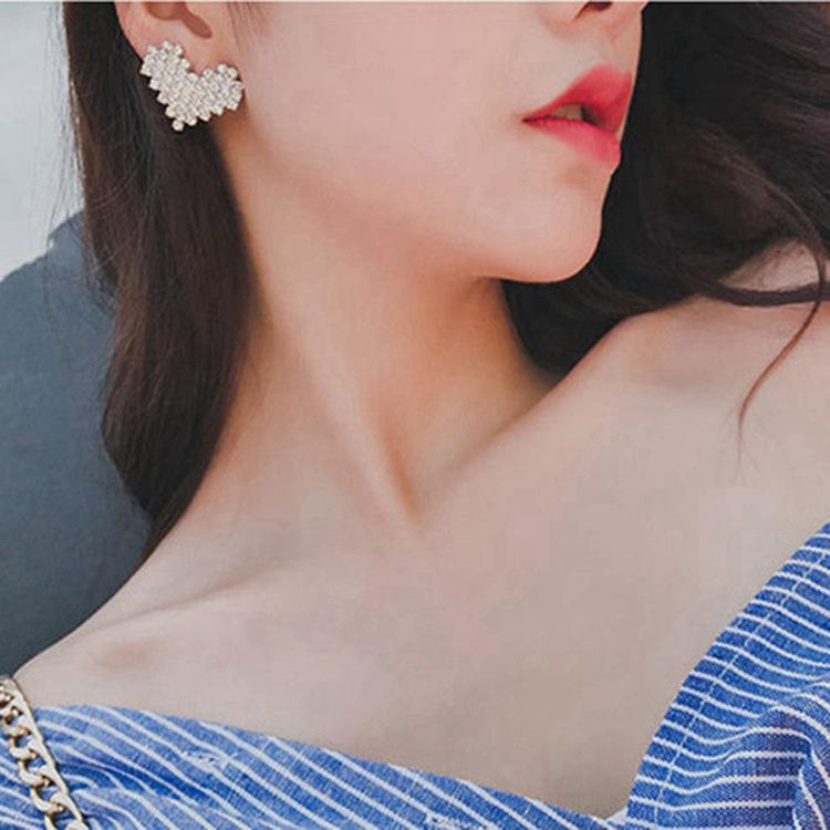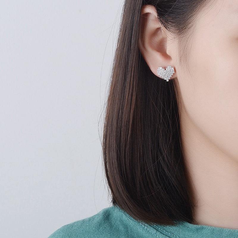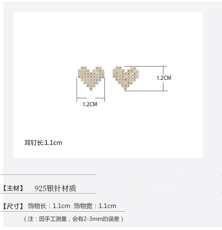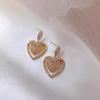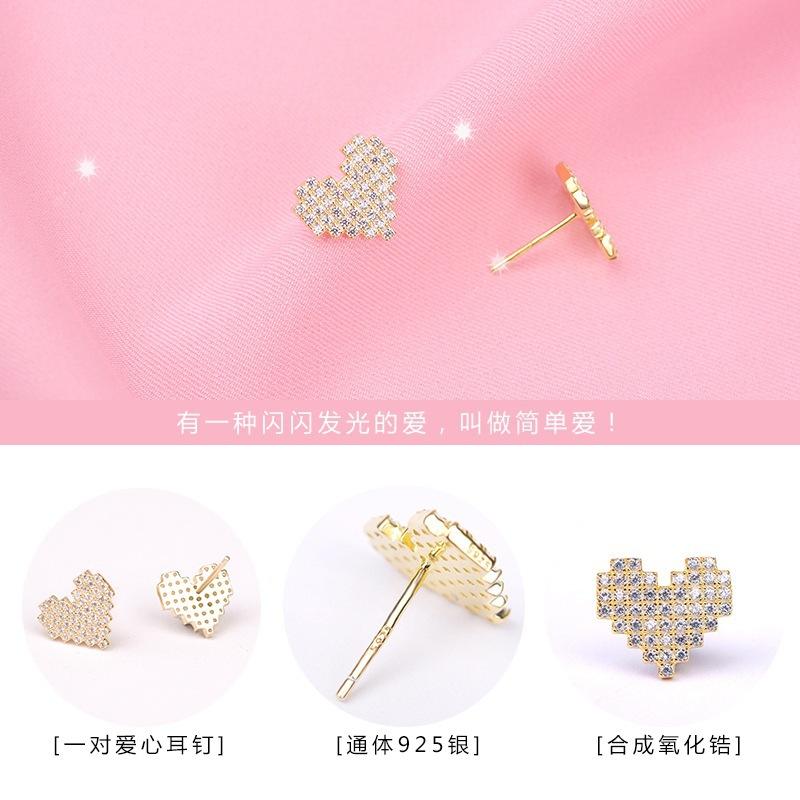 Pendientes de amor chapados en plata S925 estilo coreano, elegantes pendientes con forma de corazón de diamantes de imitación superdeslumbrantes, pendientes sencillos de corazón de melocotón para mujer