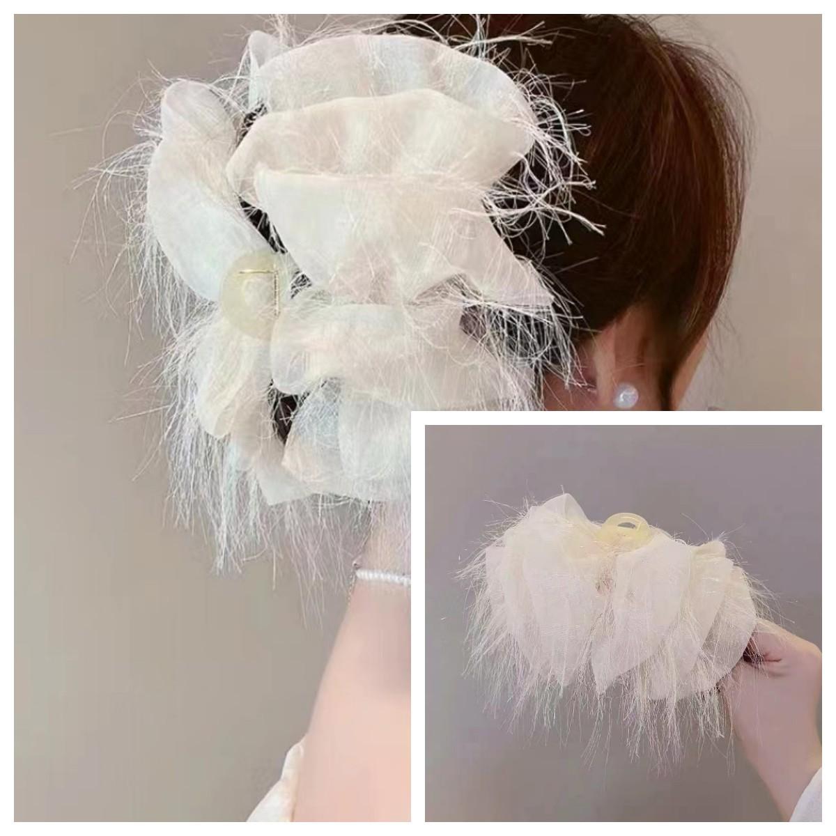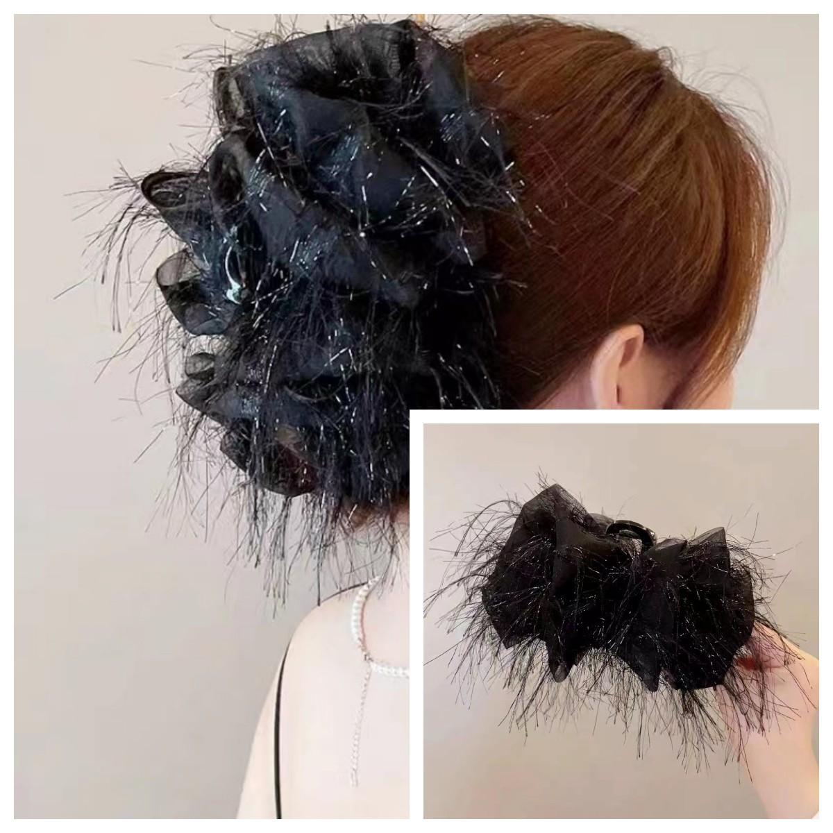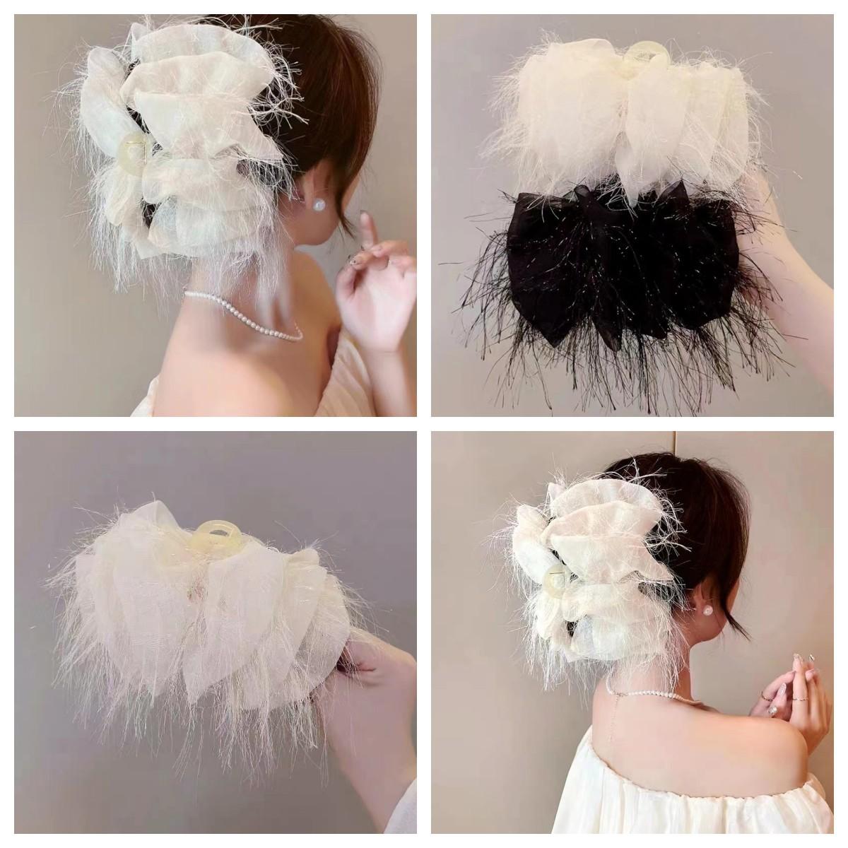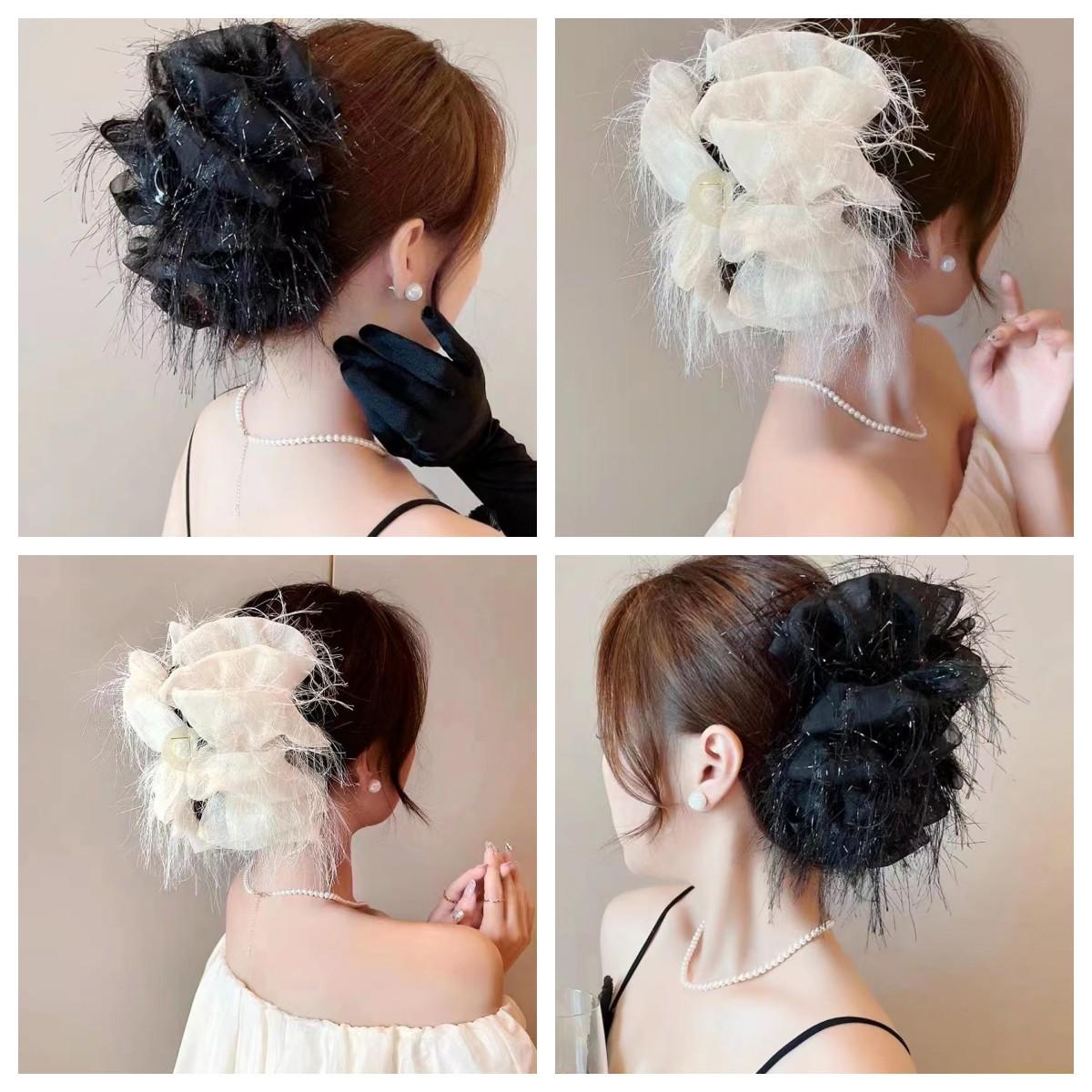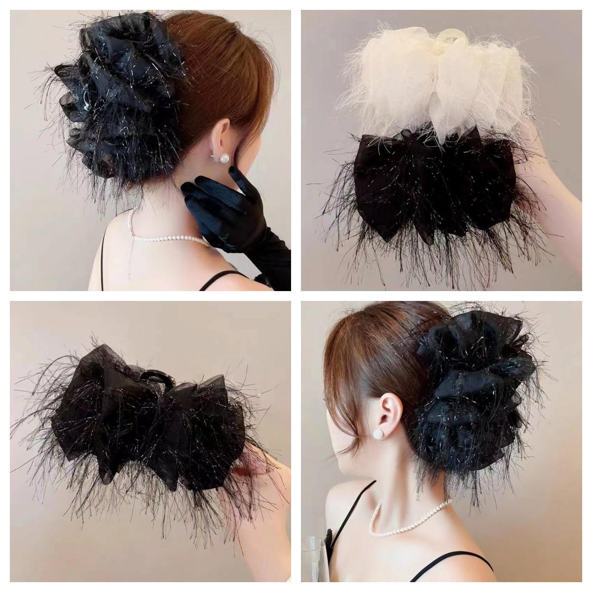 Elegante y elegante horquilla con lazo de malla con borlas de alta calidad para el pelo, horquilla para la parte posterior del pelo, horquilla con forma de tiburón para el tocado.