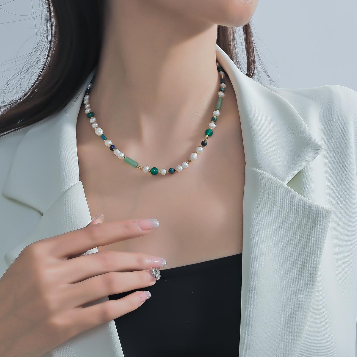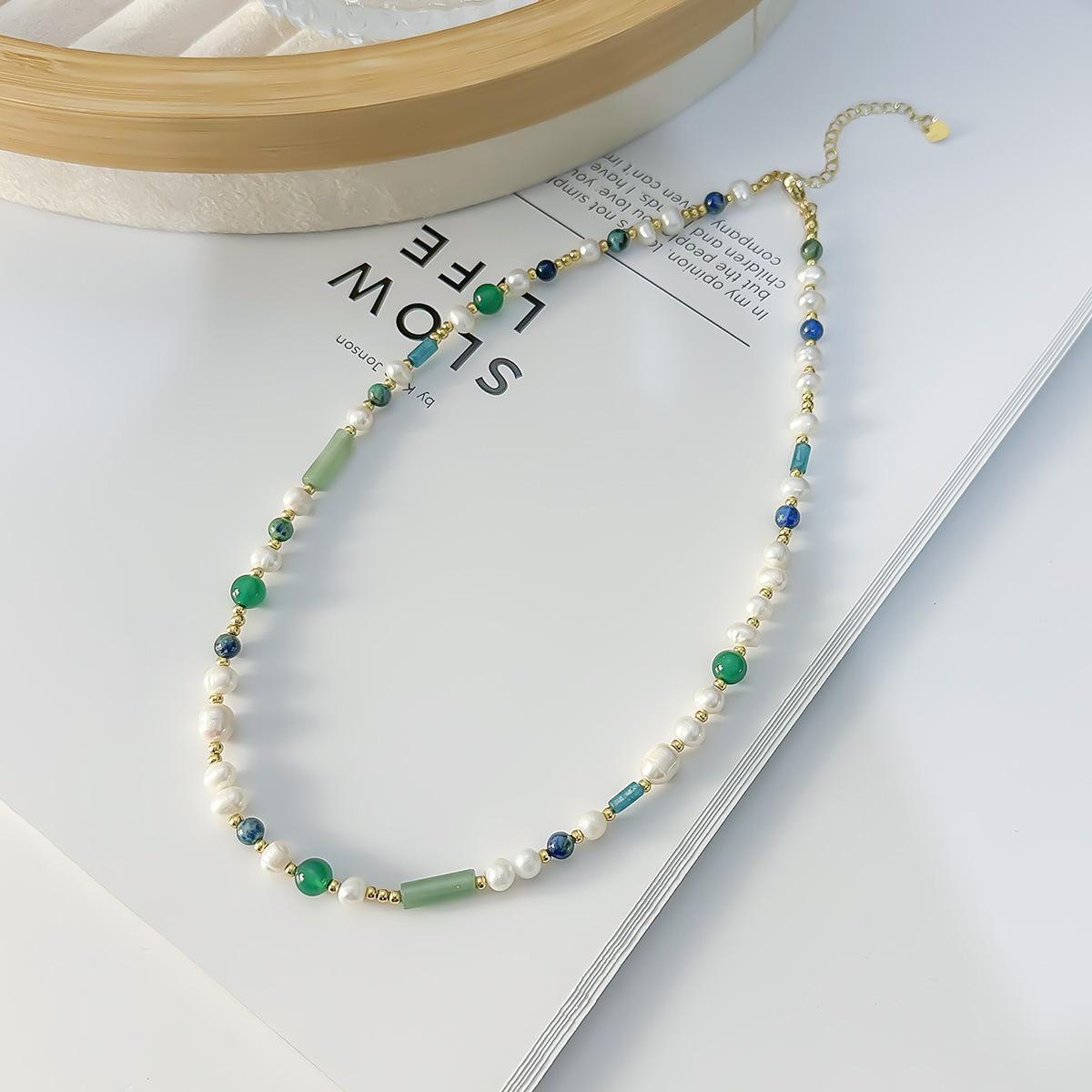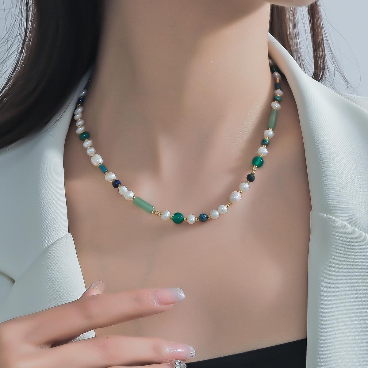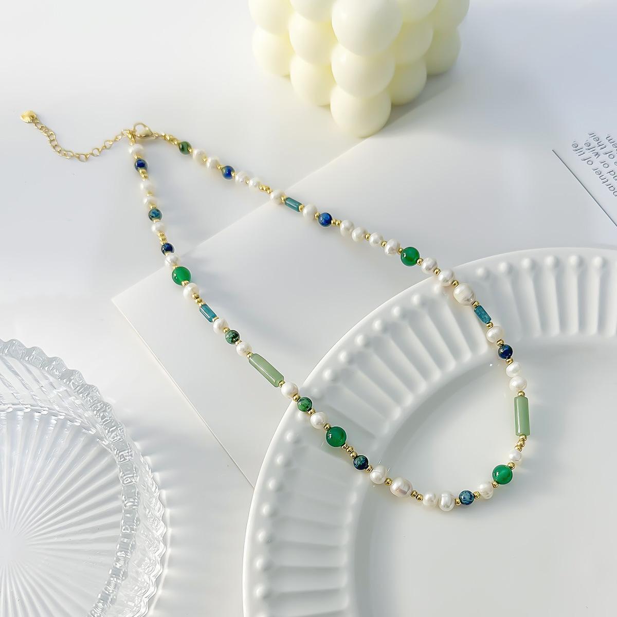 Primavera y verano collar chocker para combinar con todo cadena clavicular collar de cuentas perla de agua dulce ágata verde lapislázuli collar de cuentas
