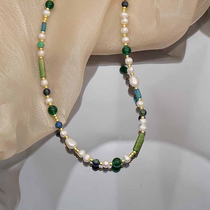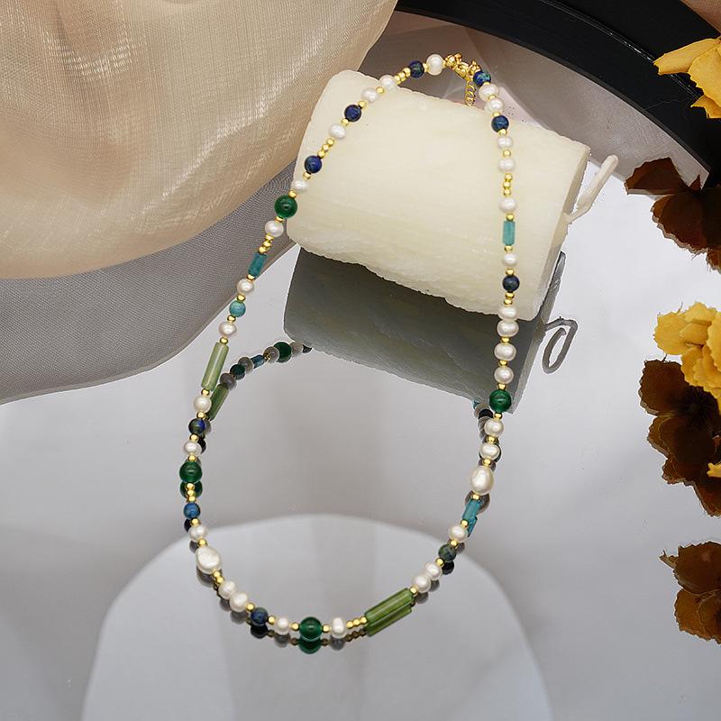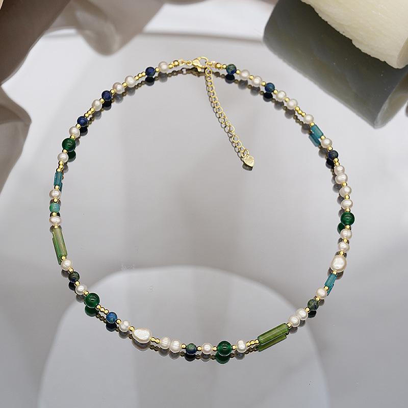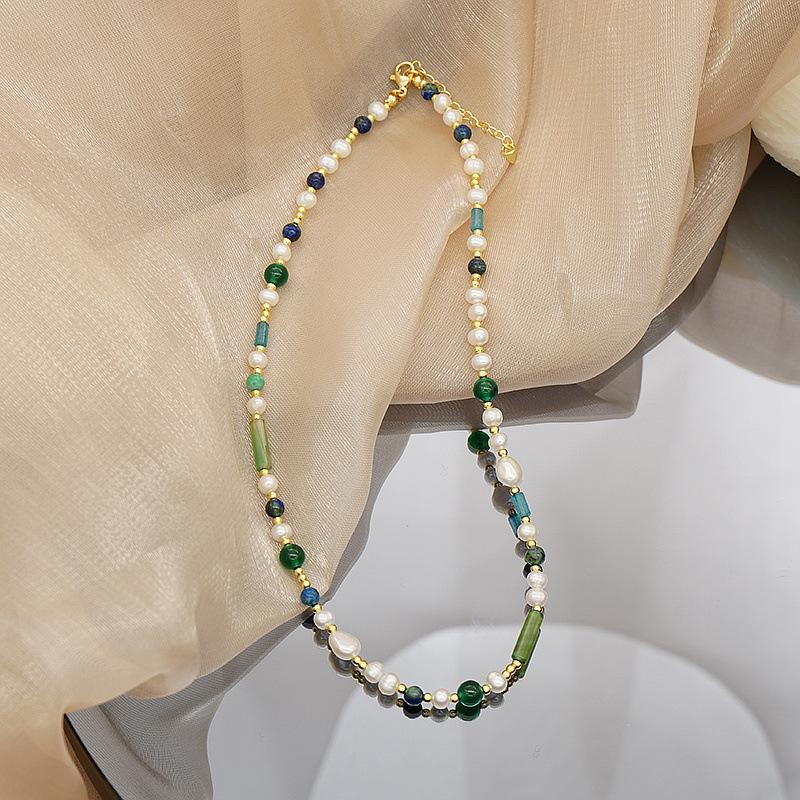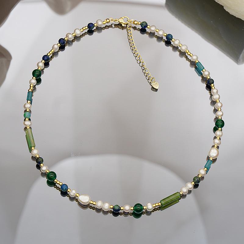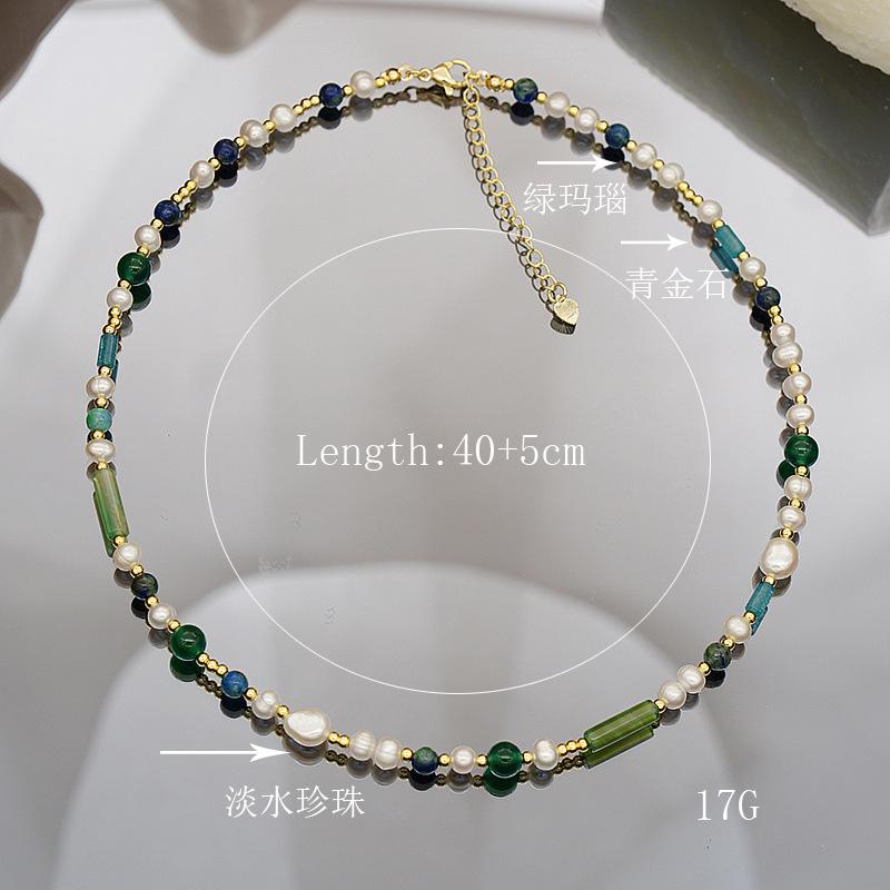 Primavera y verano collar chocker para combinar con todo cadena clavicular collar de cuentas perla de agua dulce ágata verde lapislázuli collar de cuentas