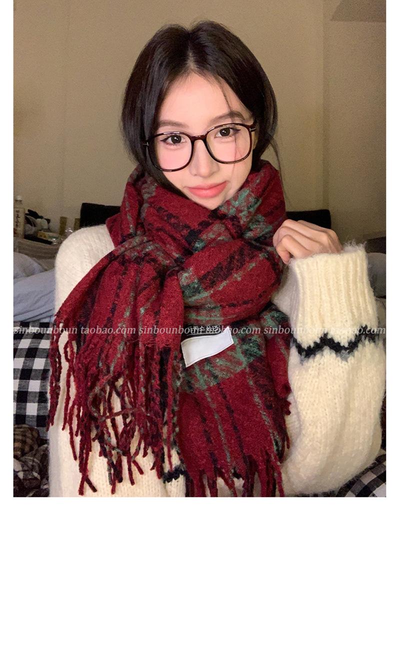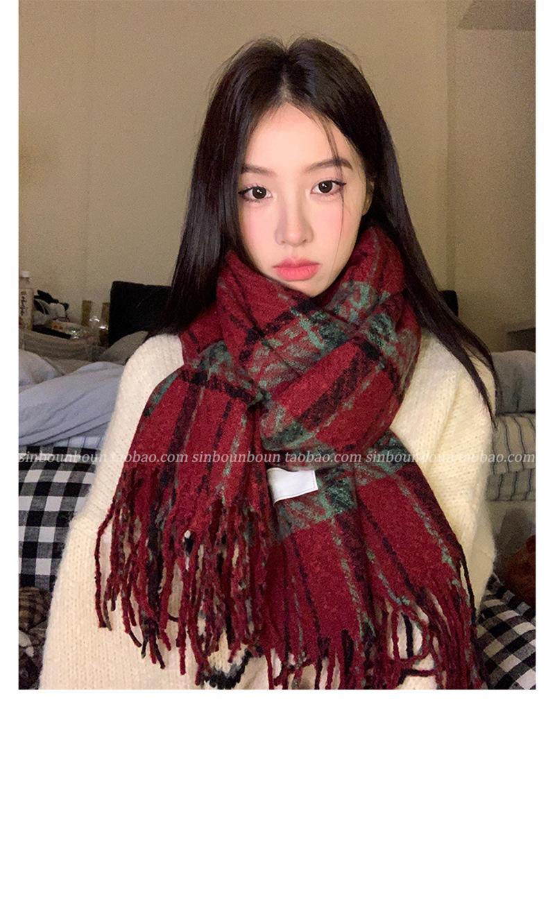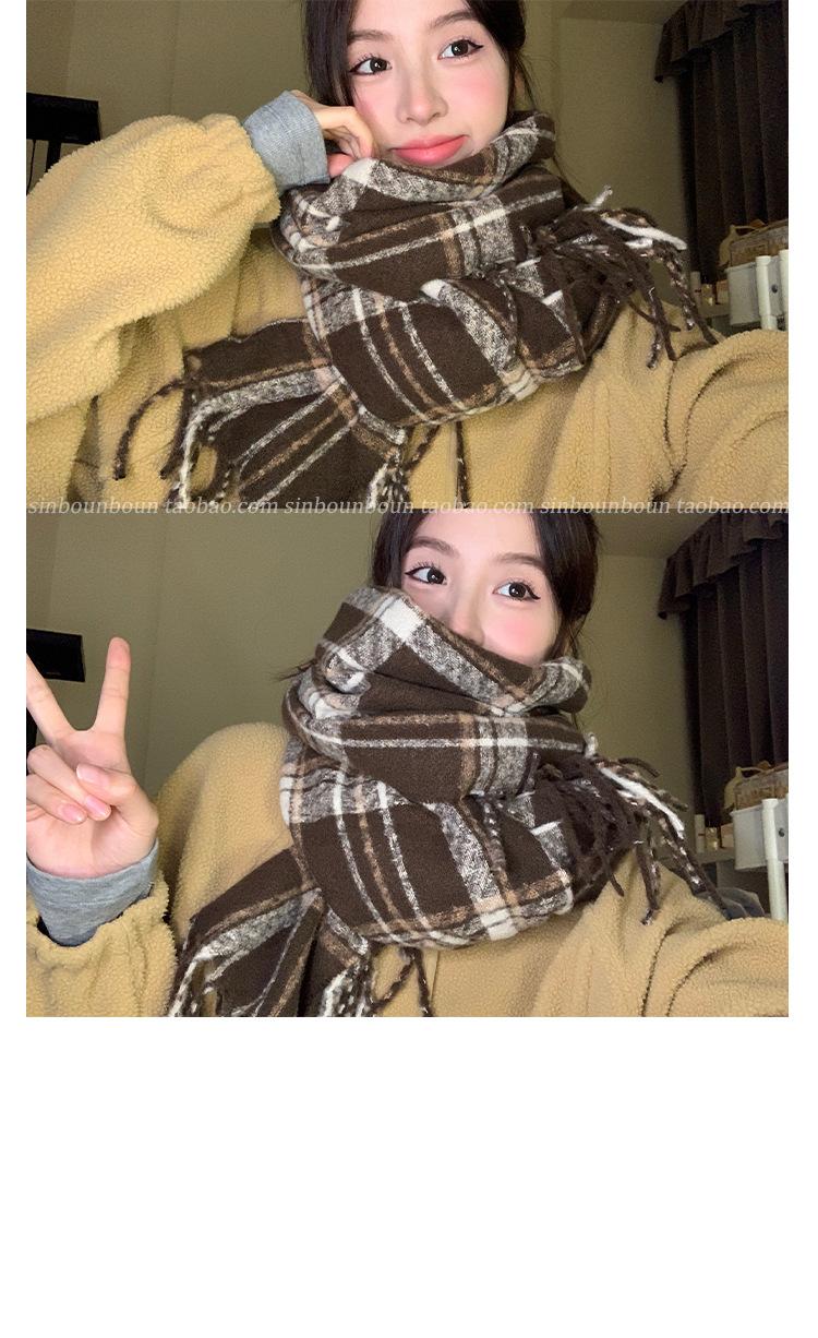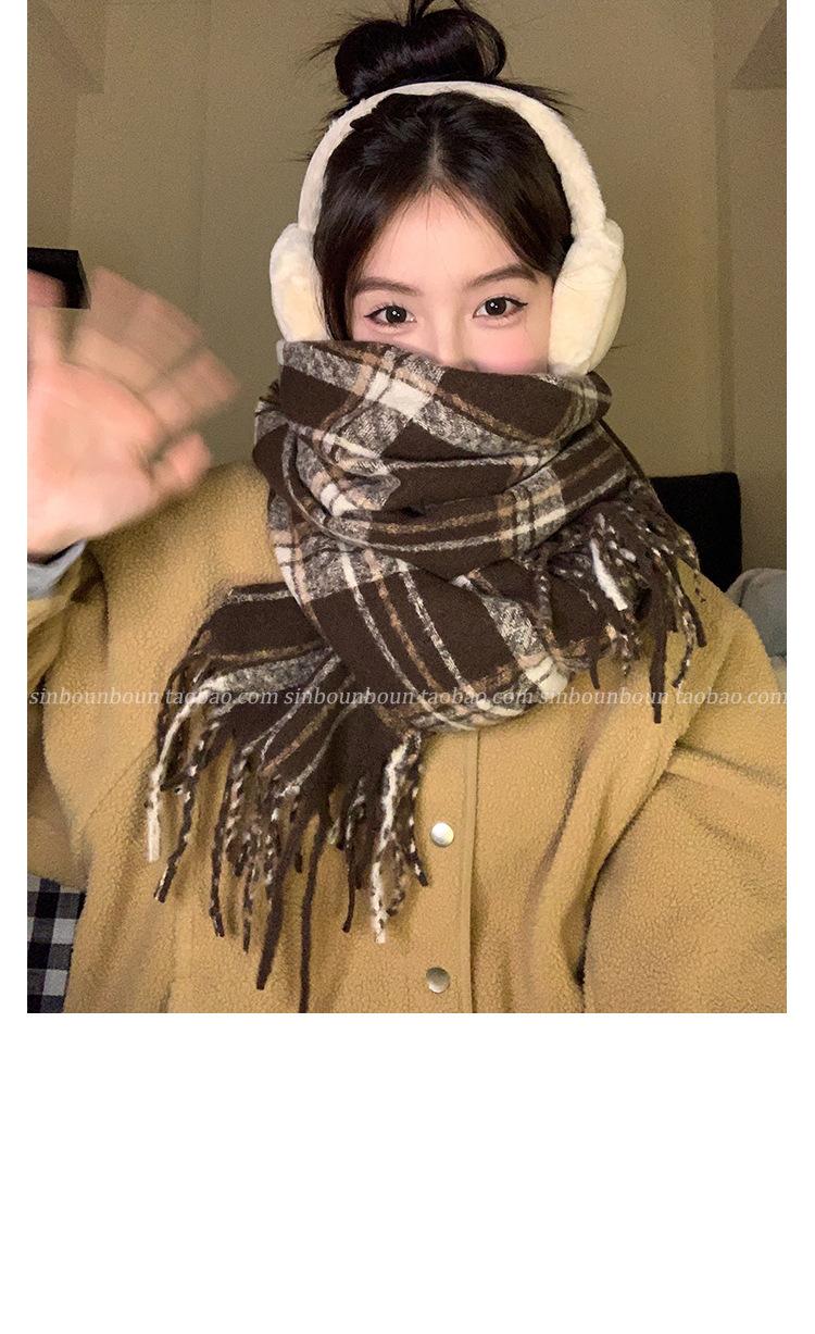 Bufanda cálida a cuadros estilo cachemir para mujer, con borlas de invierno, chal de doble uso que combina con todo, bufanda a cuadros de color contrastante engrosada de estilo retro