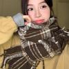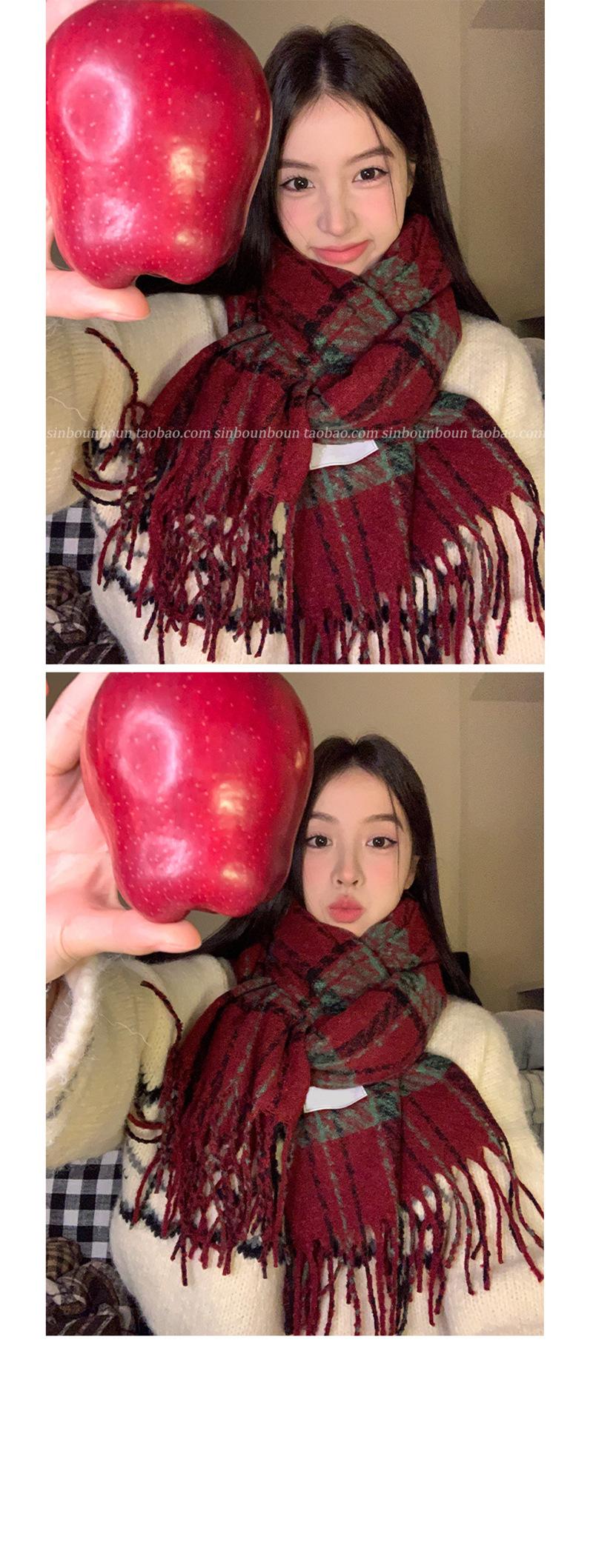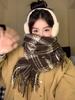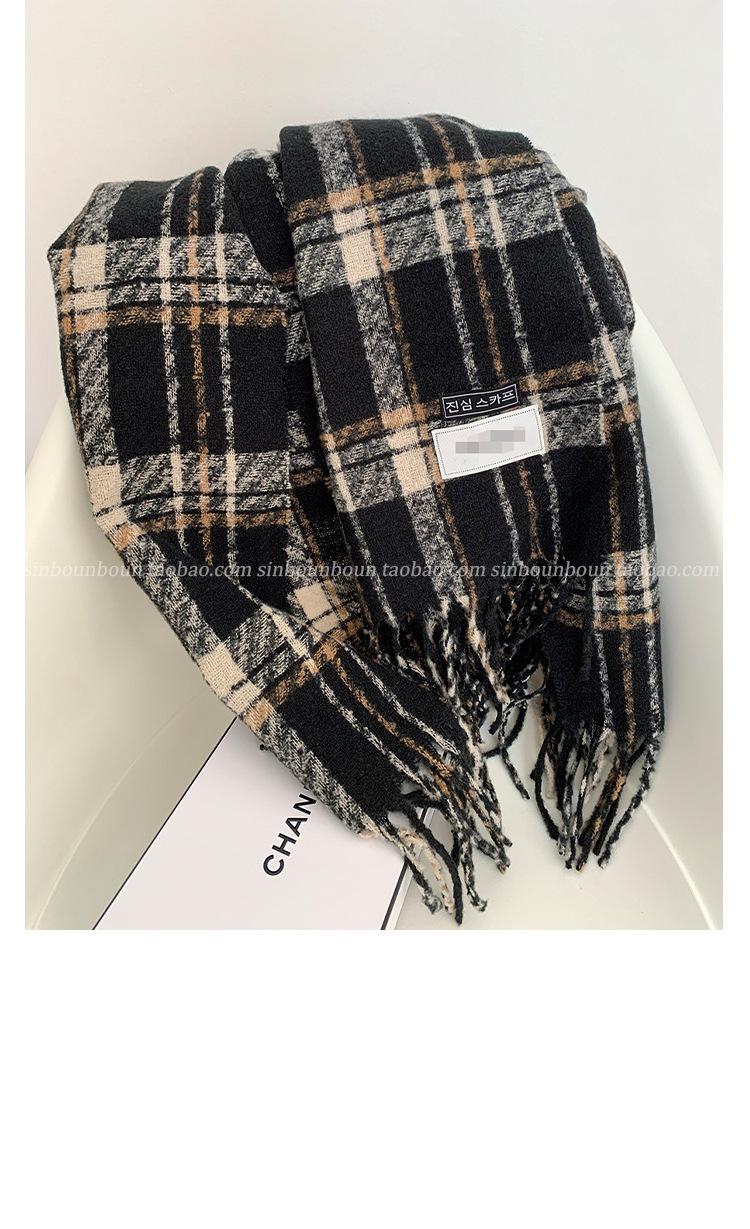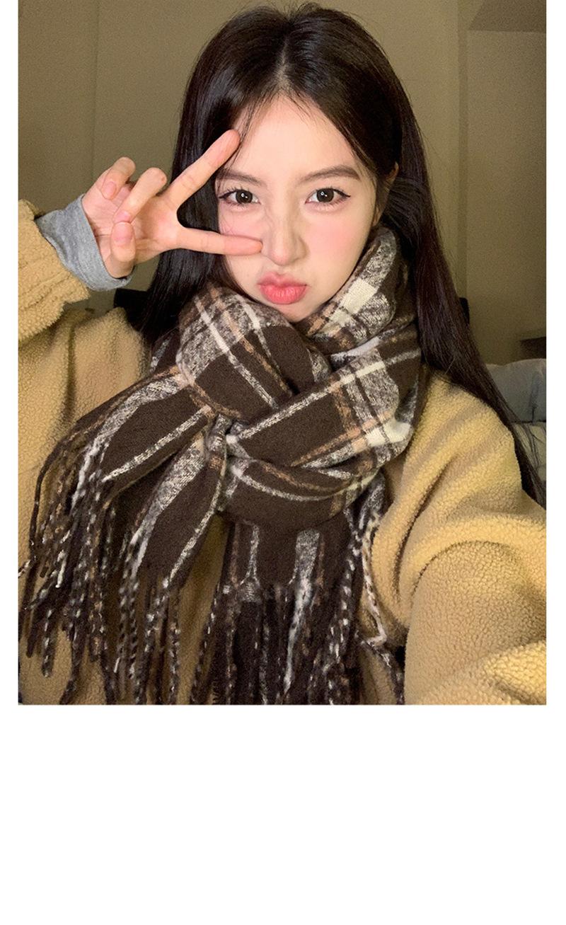 Bufanda cálida a cuadros estilo cachemir para mujer, con borlas de invierno, chal de doble uso que combina con todo, bufanda a cuadros de color contrastante engrosada de estilo retro