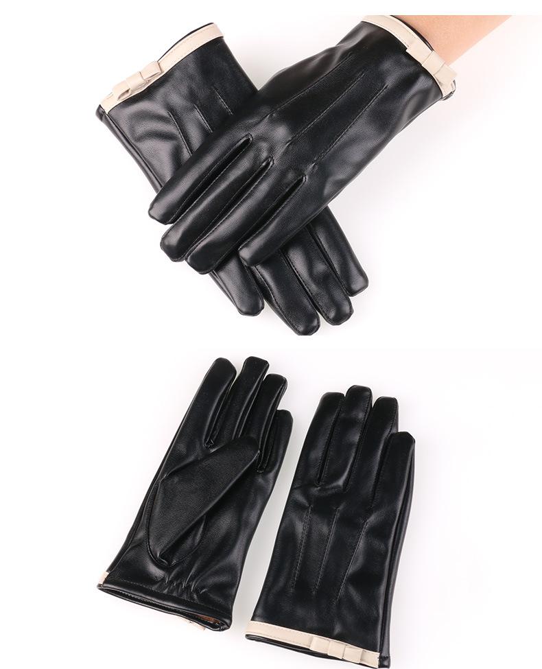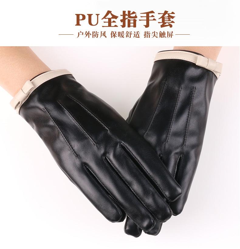 Nuevos guantes de cuero PU para mujer de otoño e invierno con lazo para pantalla táctil, cálidos para ciclismo y guantes de cuero frío a prueba de viento y terciopelo |