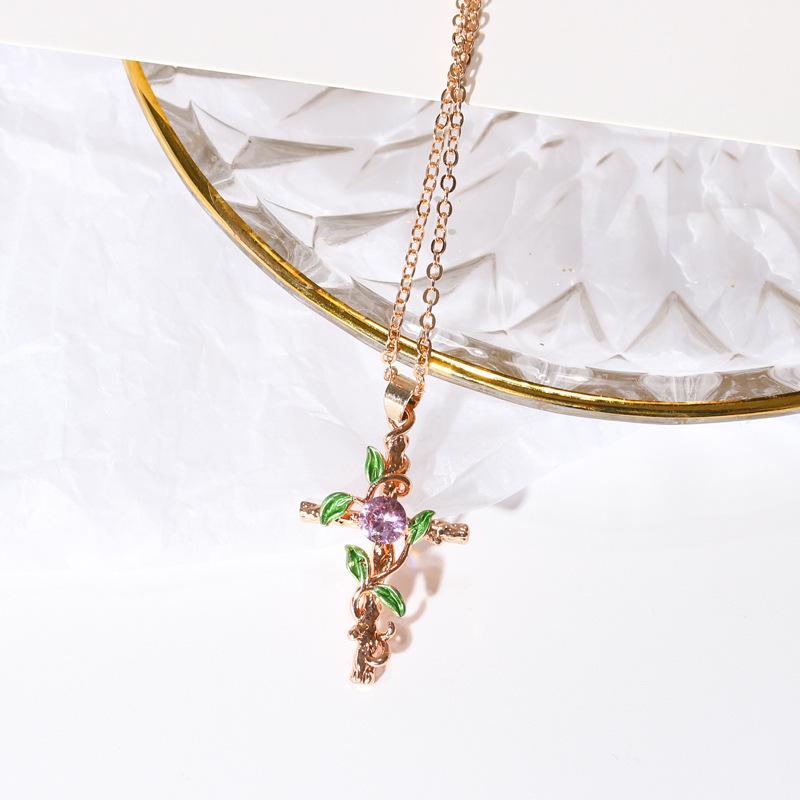 Collar nuevo transfronterizo de Europa y Estados Unidos con colgante de cruz sinuosa con hojas creativas, cadena de clavícula de diamantes para mujer al por mayor