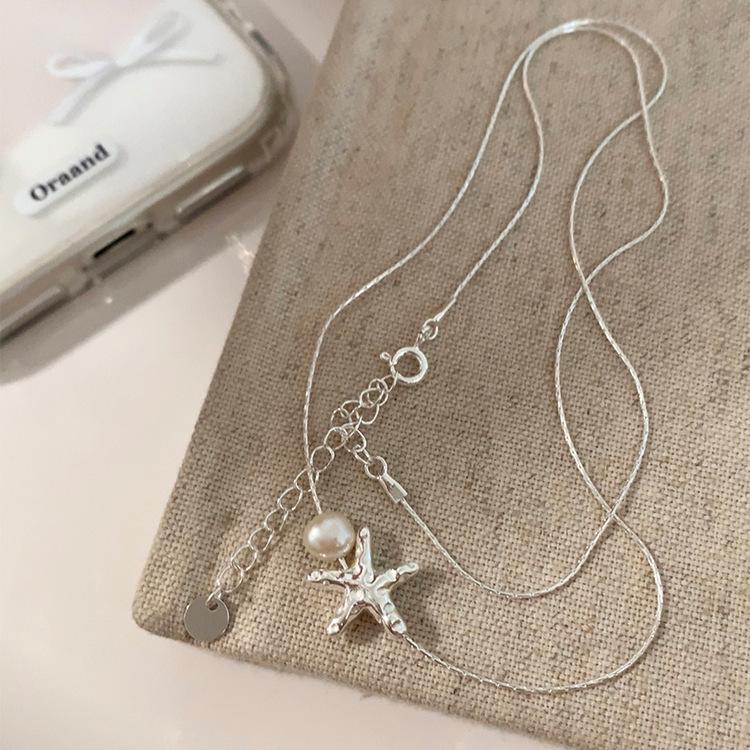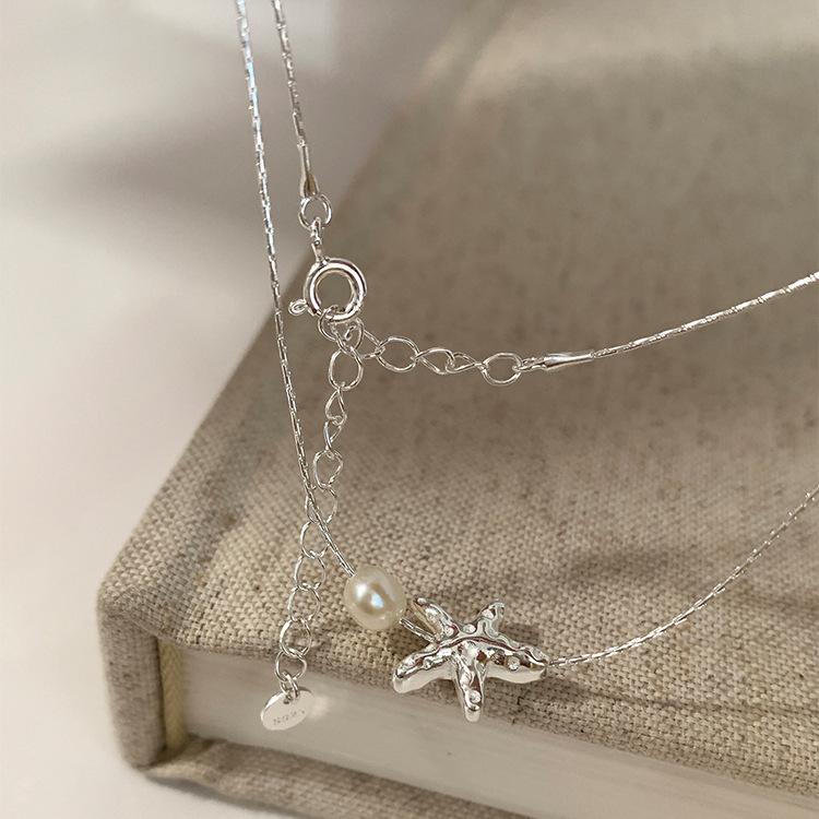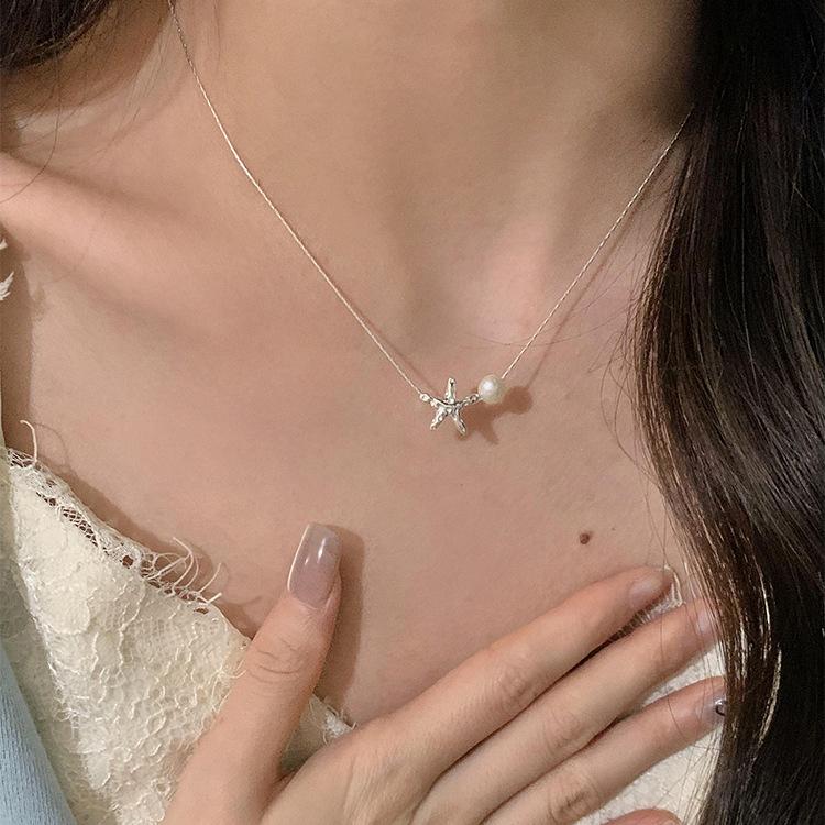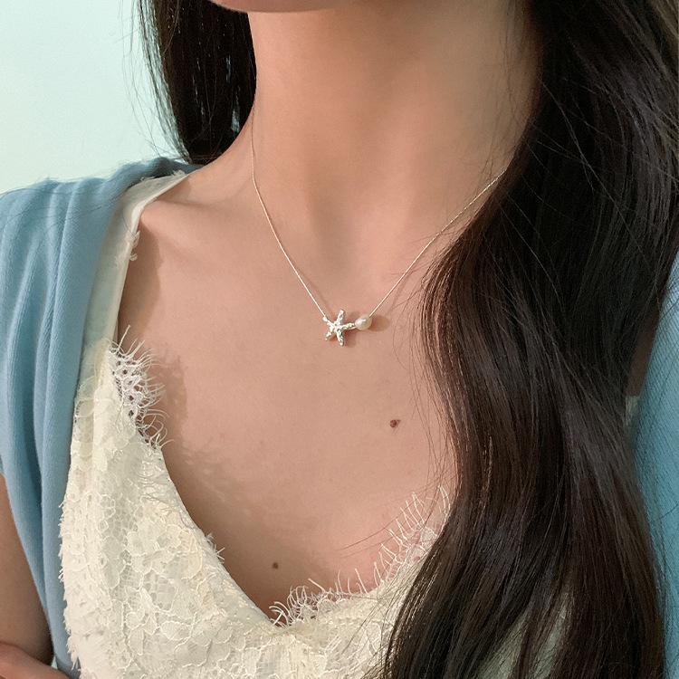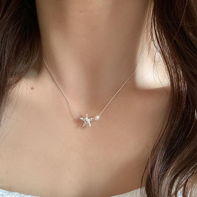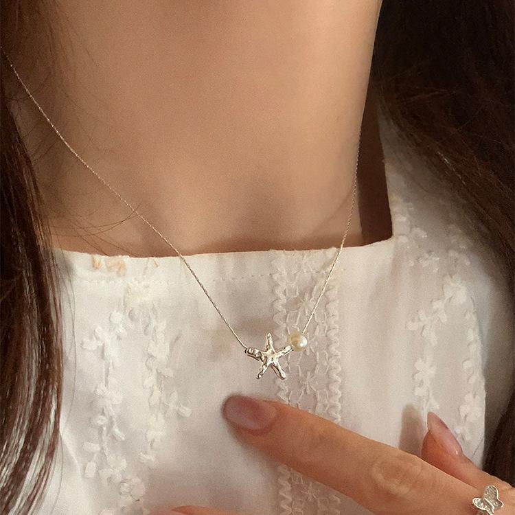 Nuevo collar de perlas de estrella de mar bañado en plata para mujer, diseño de alta calidad, ligero, de lujo, con textura de estrella de mar pequeña, cadena de clavícula de estrella de cinco puntas.