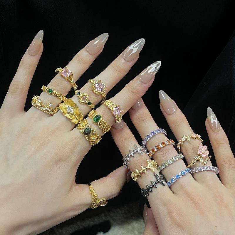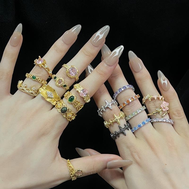 Serie Estilo Antiguo Dorado Medio Ins Estilo Frío Anillo Abierto Simple Francés de Alto Nivel Anillo de Diseño Nicho para Mujer