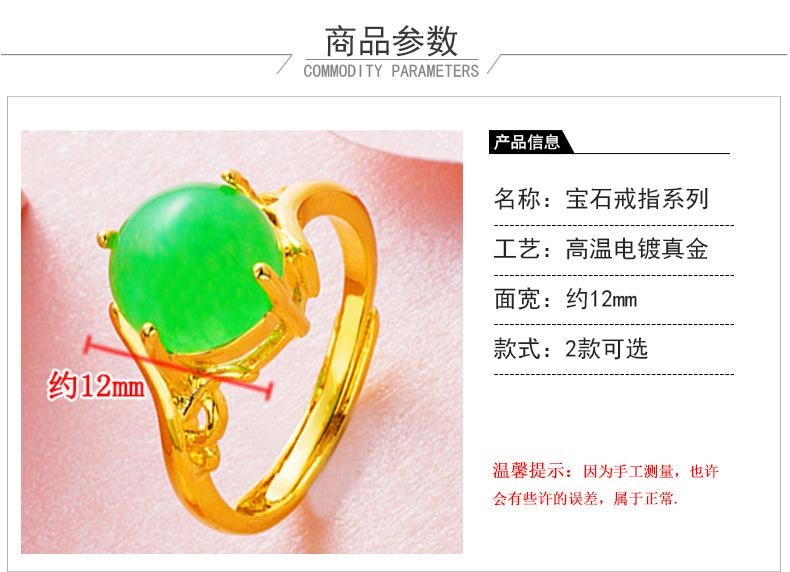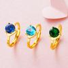 Anillo abierto de imitación de esmeralda para mujer, de latón, dorado y arena de Vietnam, con baño de oro y diamantes de imitación de piedra natural.