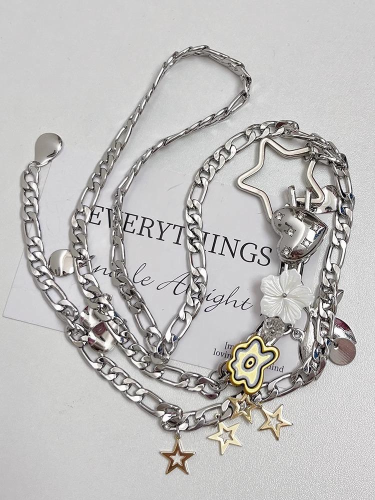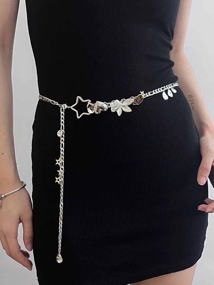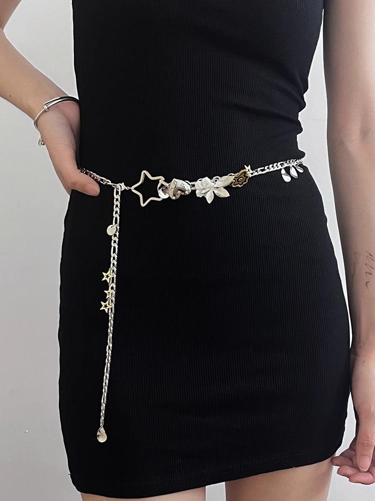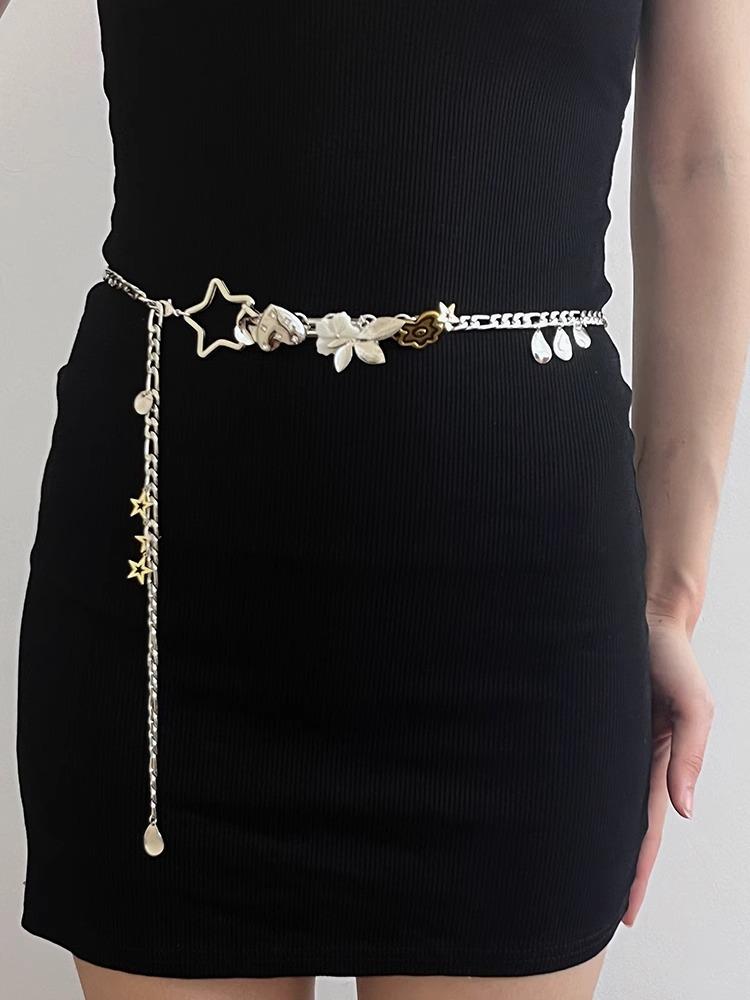 Cadena de cintura de metal ajustable con múltiples elementos y flores de amor para mujer, con falda y pantalones, cinturón estilo Y2K para chica sexy, novedad de 2023
