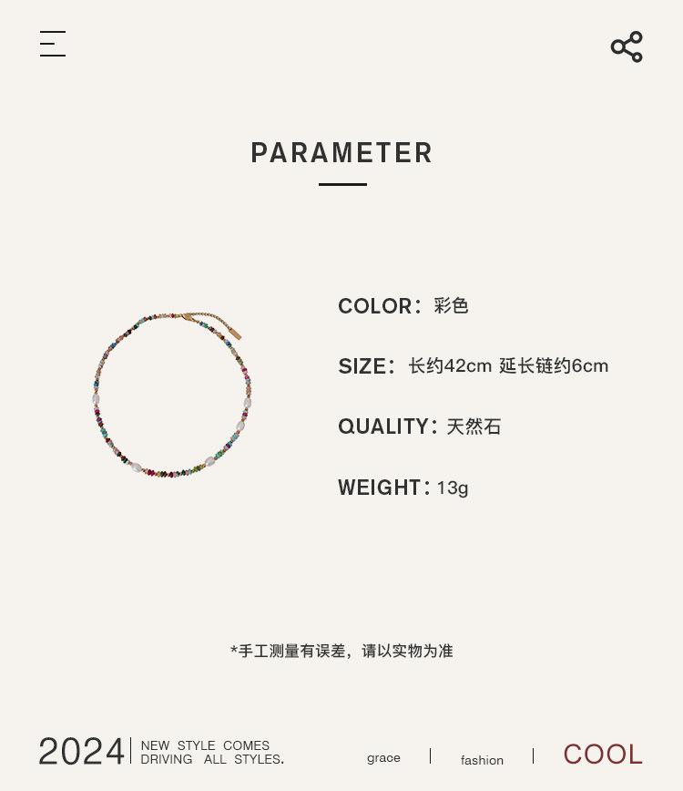 Mixed color necklace about 42cm 6cm