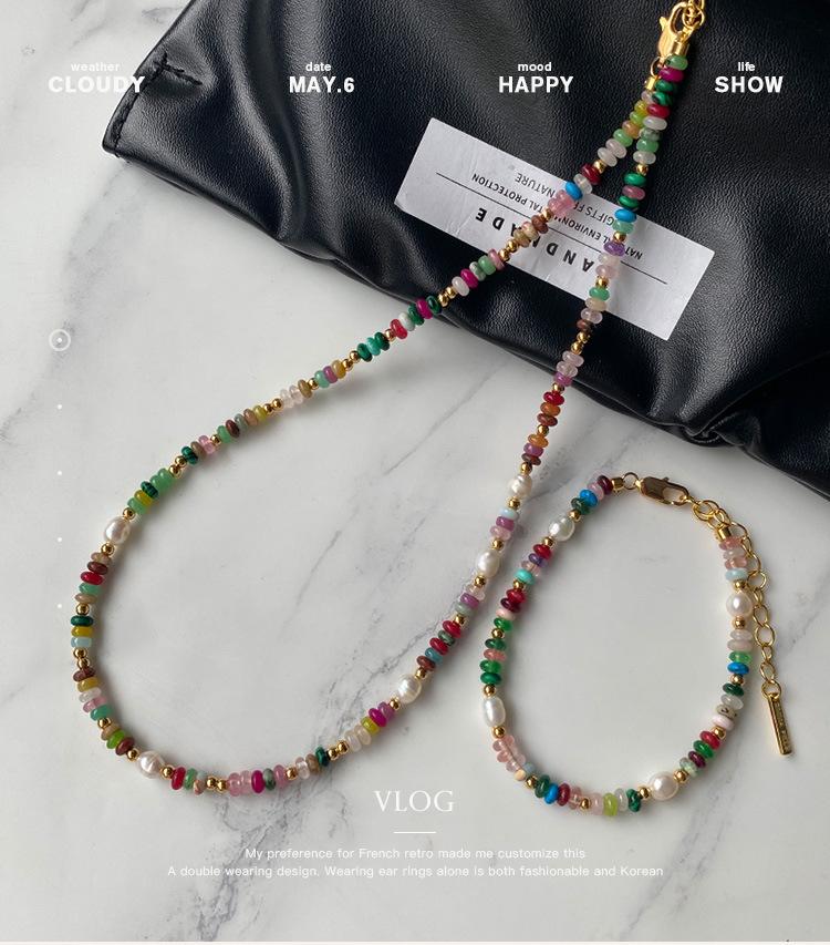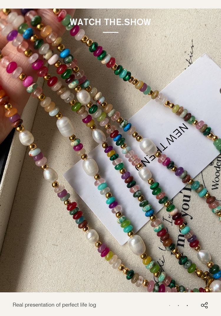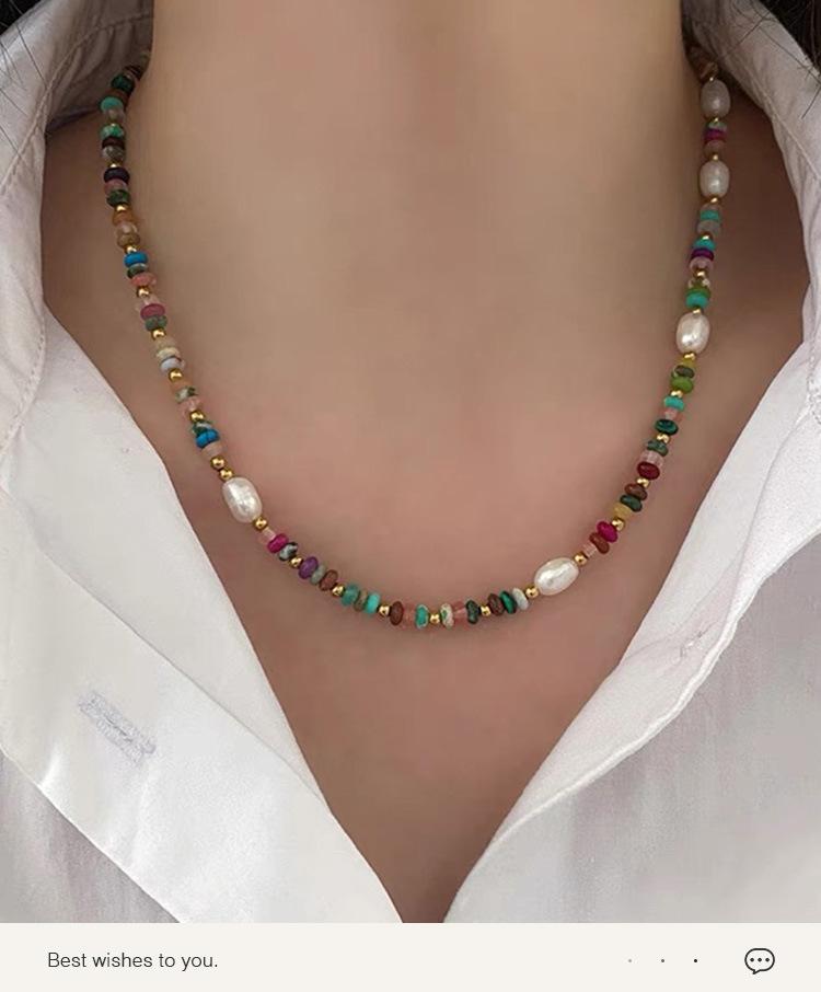 Collar de esmalte de colores con cuentas de dopamina, cadena de clavícula de alta calidad con nicho de lujo, accesorios de piedra natural y perlas.