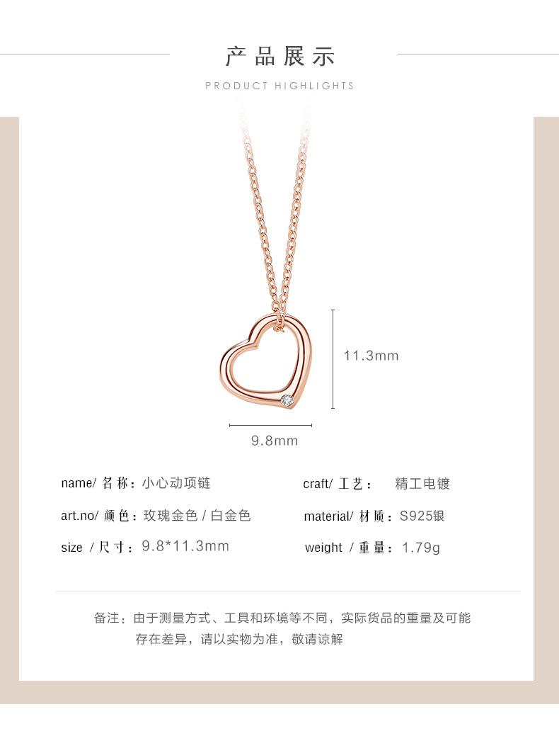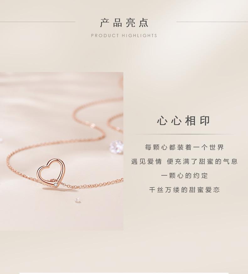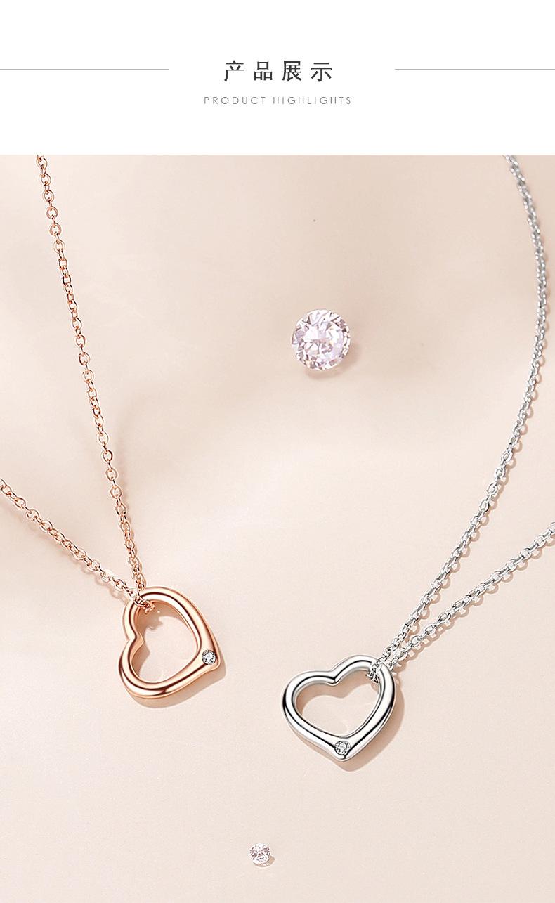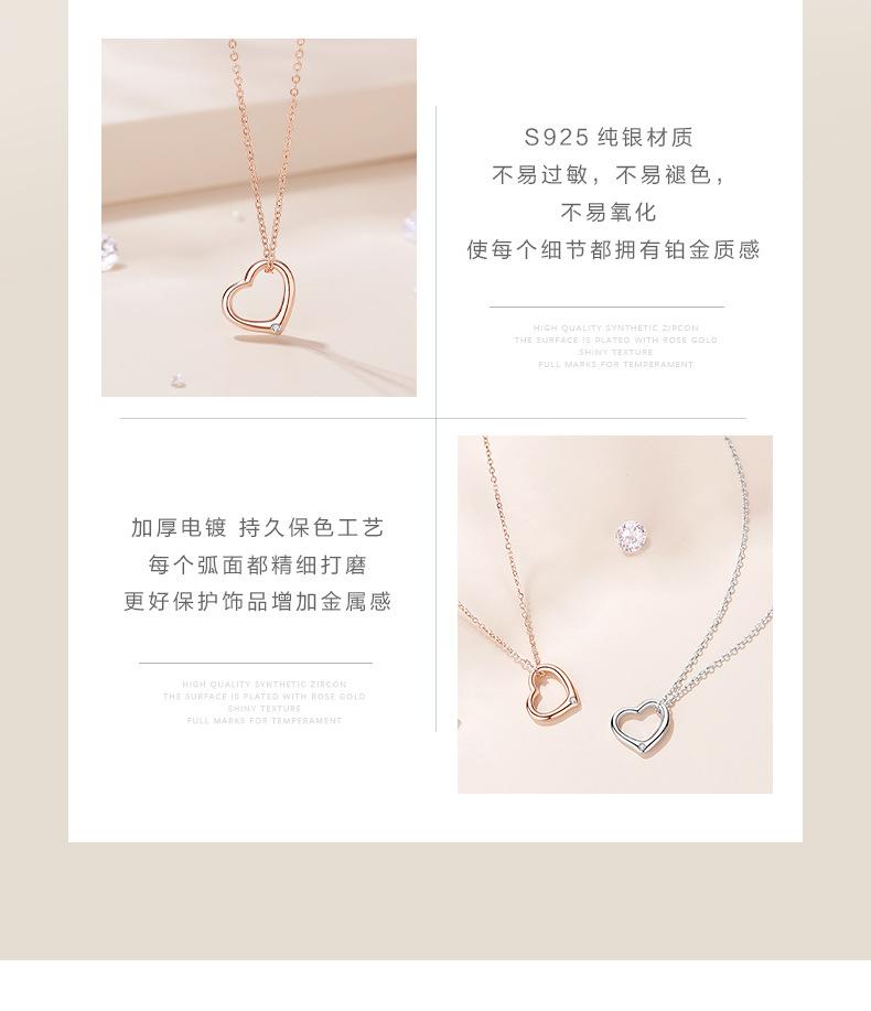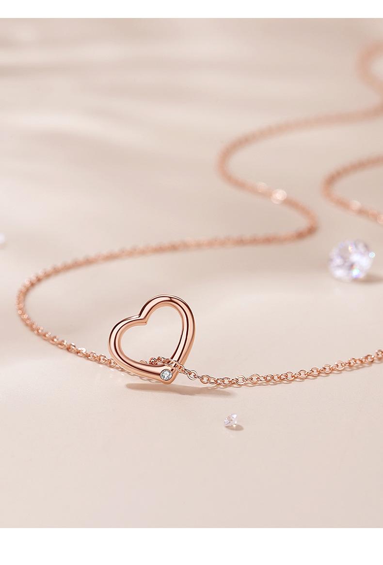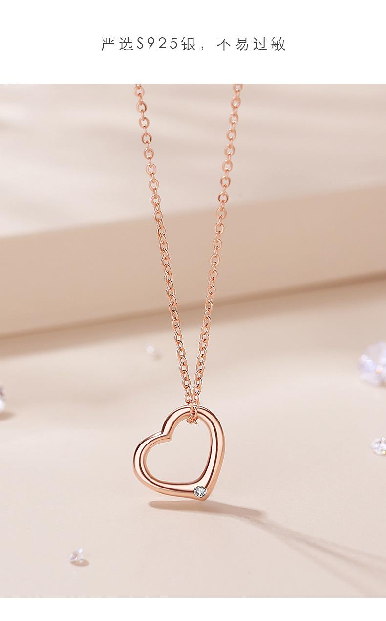 Collar de diamantes con forma de corazón hueco para mujer, plata de ley 925, oro rosa, cadena de clavícula en forma de corazón rojo, colgante geométrico a juego.
