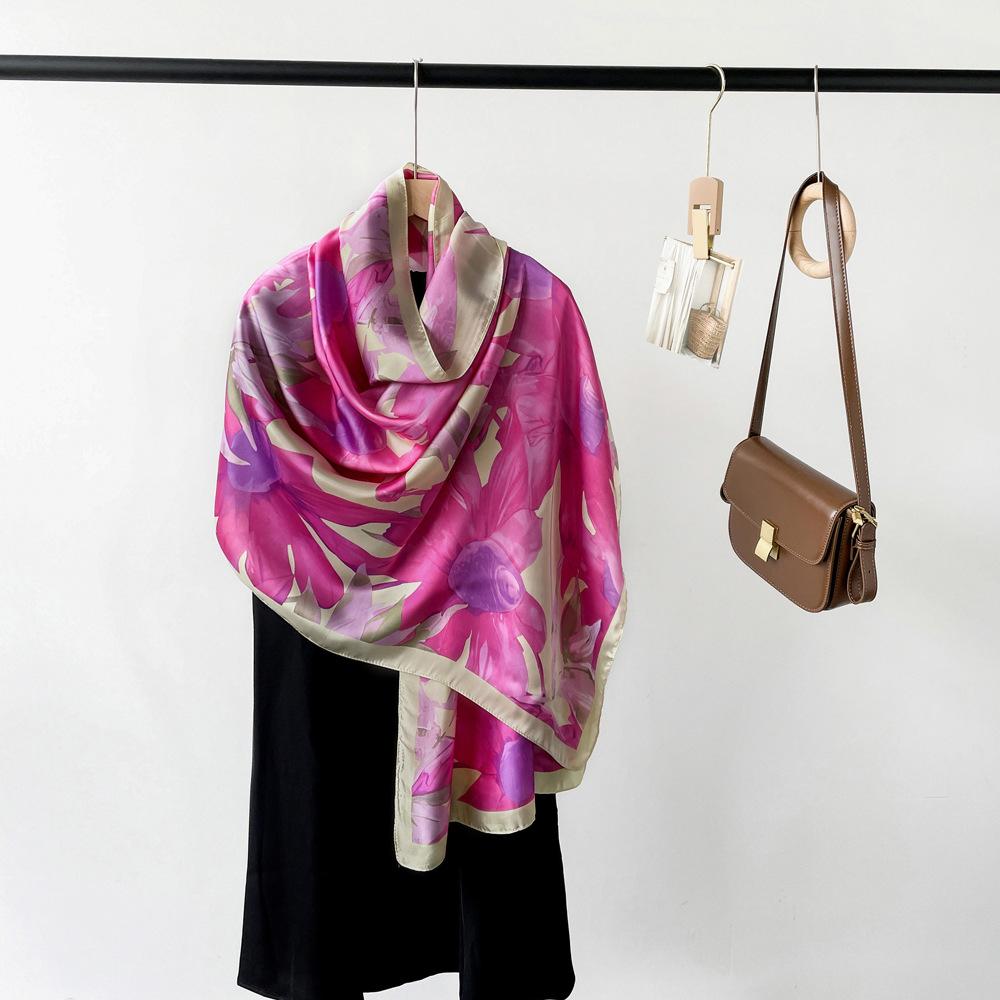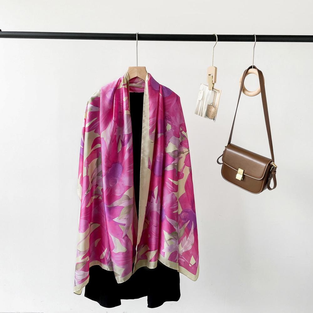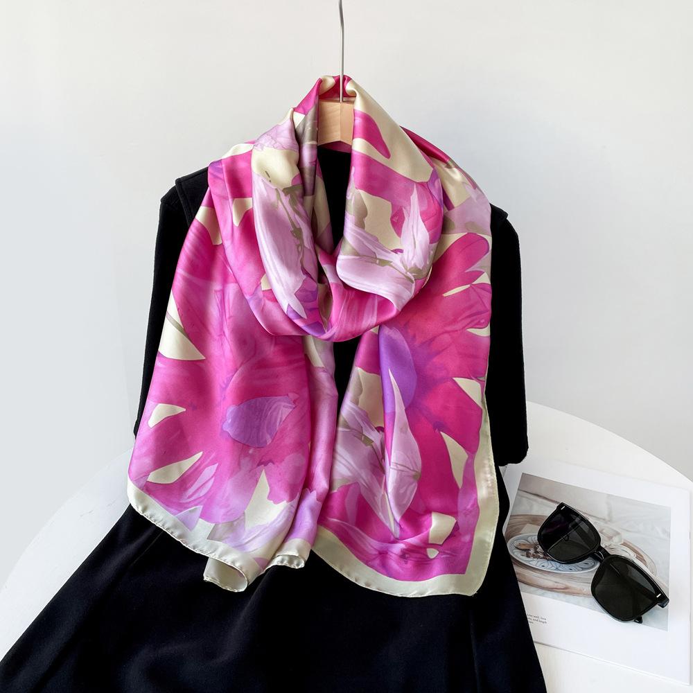 Bufanda chal para combinar con todo, larga, de imitación seda, hermoso paisaje, satén, textura de alta gama, regalo para la madre, bufanda para protección solar al por mayor