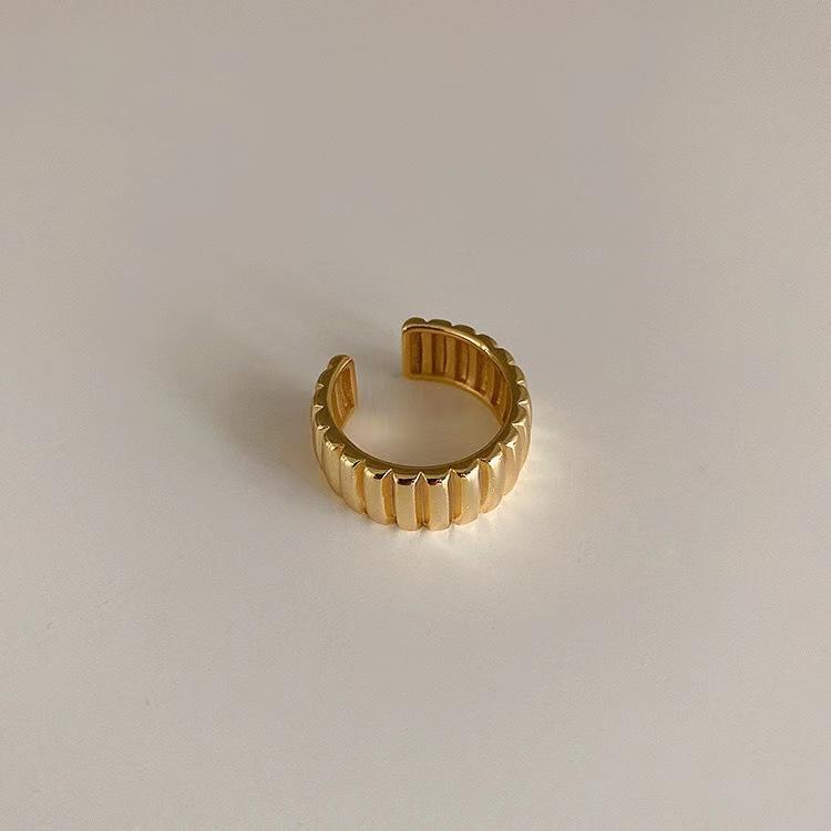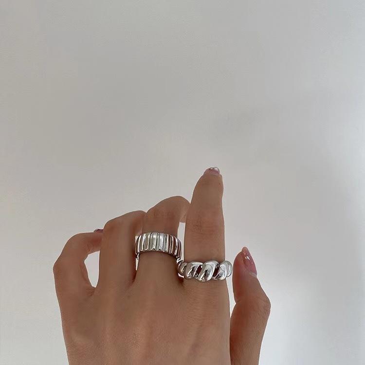 Anillo Cuerno Estilo Francés para Mujer Moda Retro Geométrico Patrón Vertical Anillo Abierto Hip Hop Plata S925 Anillo de Dedo Distintivo