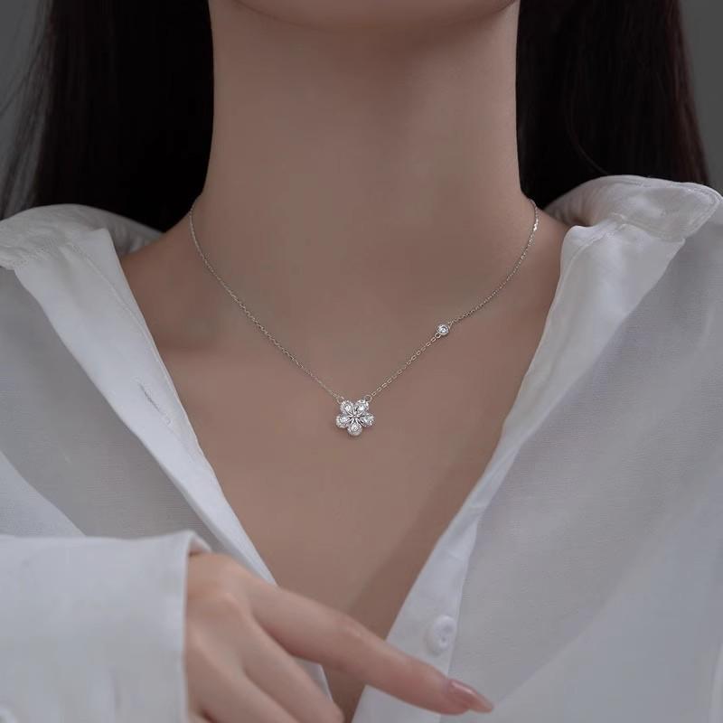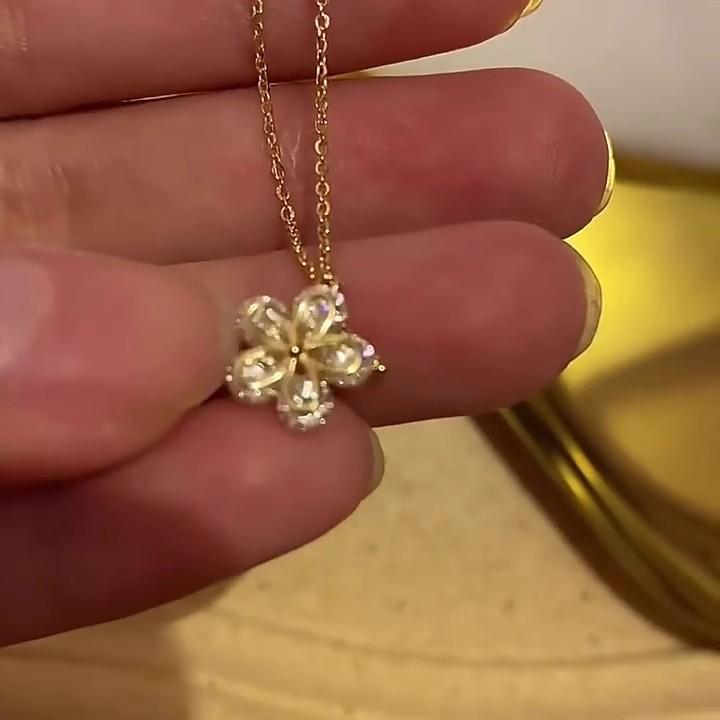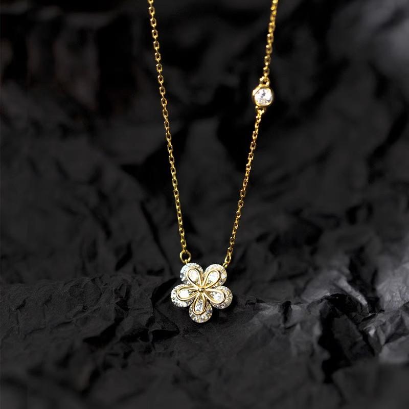 Xl456 sparkling diamond flower necklace (white gold), Xl456 diamond flower necklace (gold)