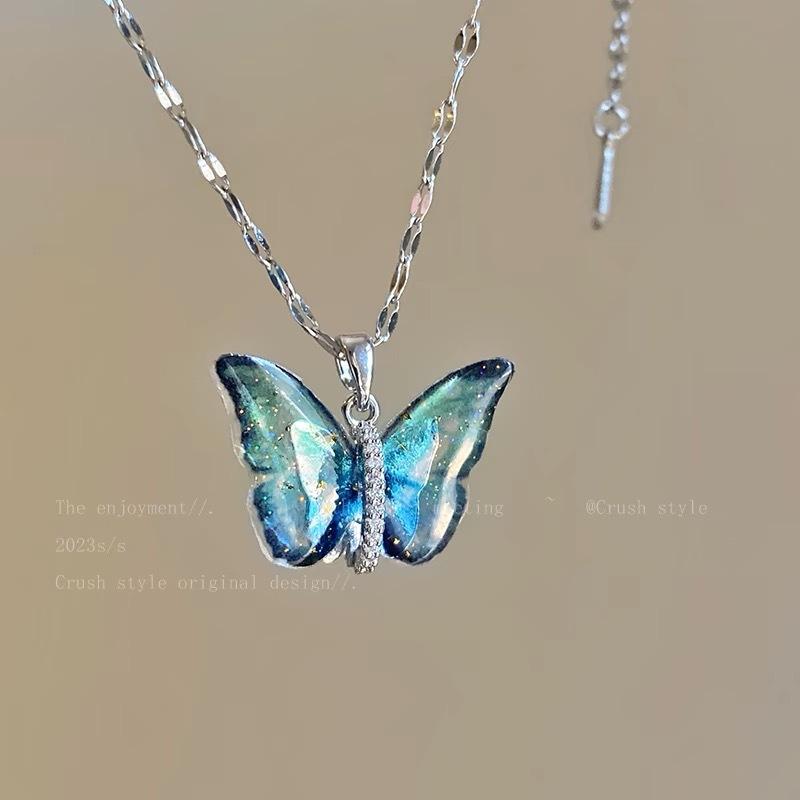 Collar con colgante de mariposa de color para mujer, cadena de clavícula, accesorios personalizados de moda, ligero, de lujo, de alta gama, 2024